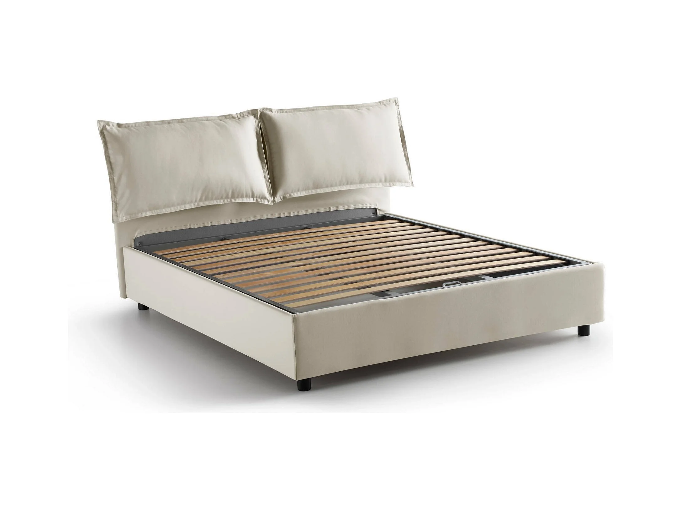 Lit double Teresa, Lit coffre avec revêtement en tissu, 100% Made in Italy, Ouverture frontale, avec matelas 140x200 cm inclus, Beige