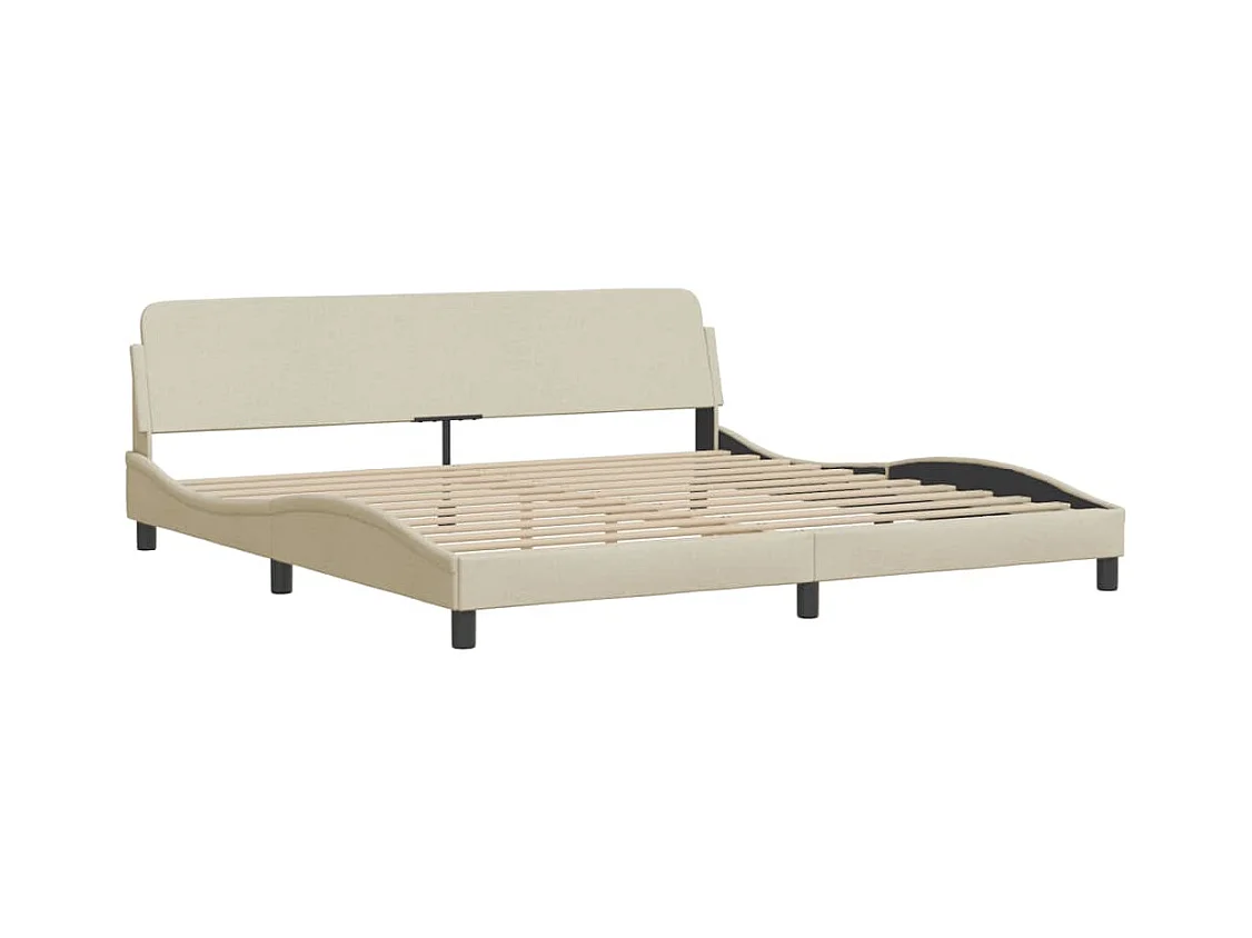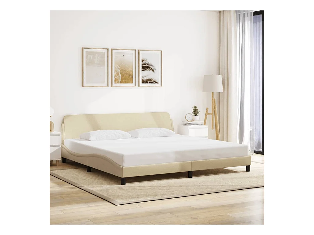 Lit double + tête de lit Crème 200 x 200 cm Tissu FR22043