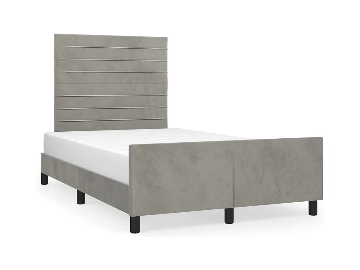 Lit double + tête de lit gris clair 120x190 cm velours FR25374