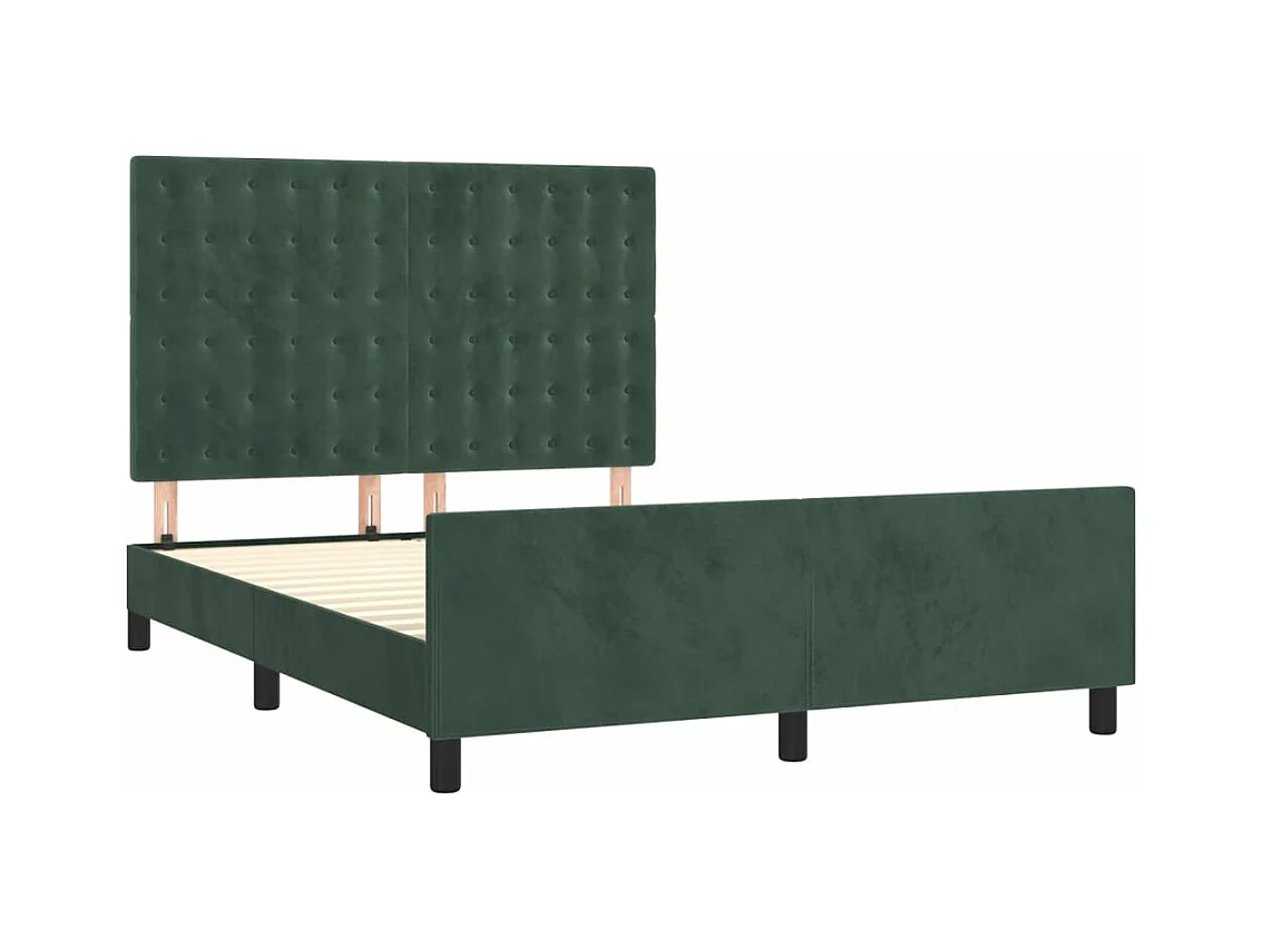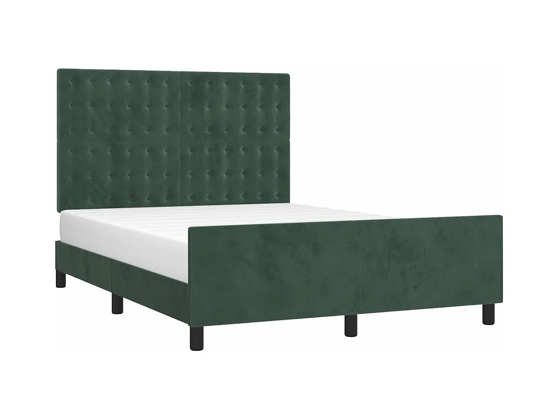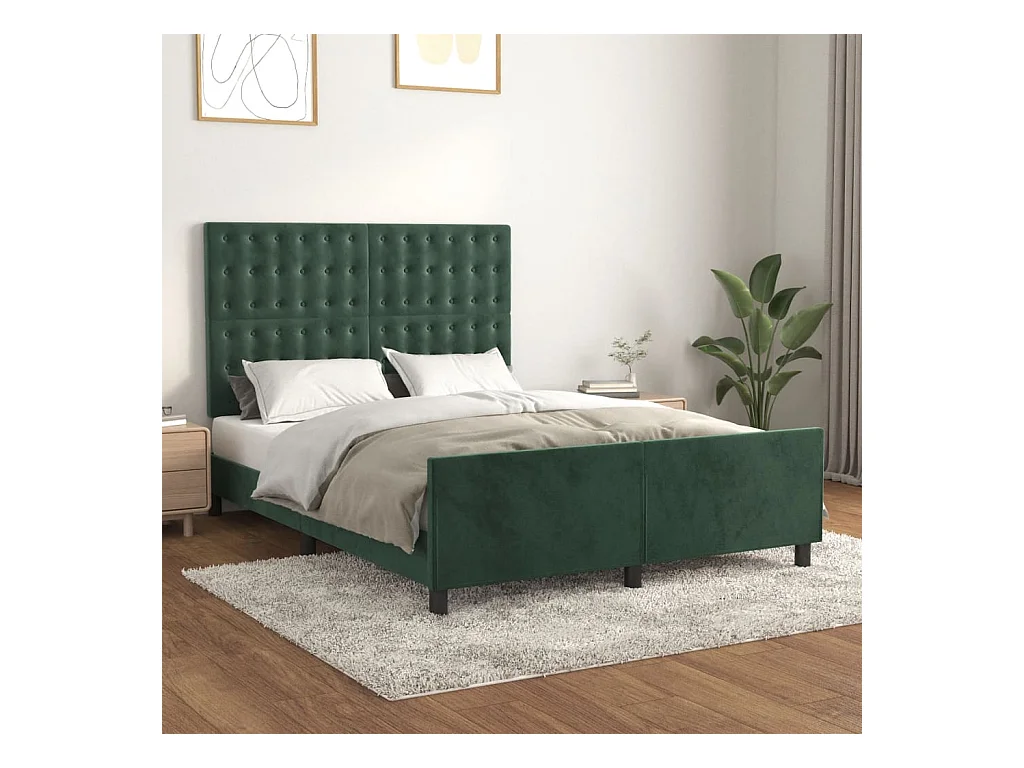 Lit double + tête de lit Vert foncé 140x190 cm Velours FR43073