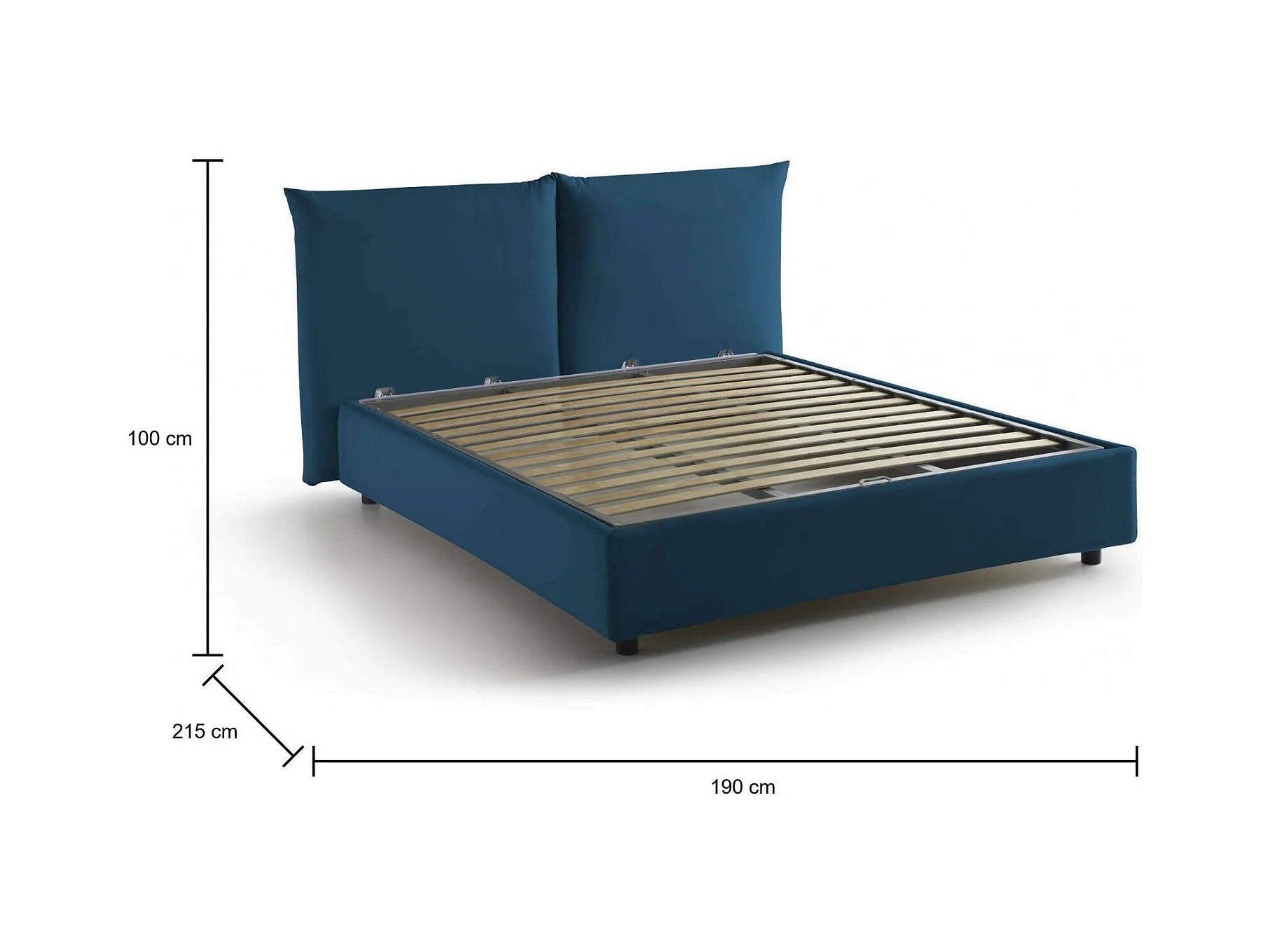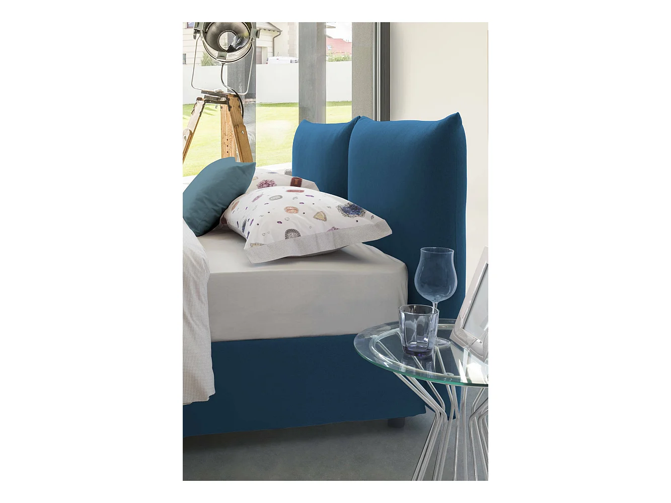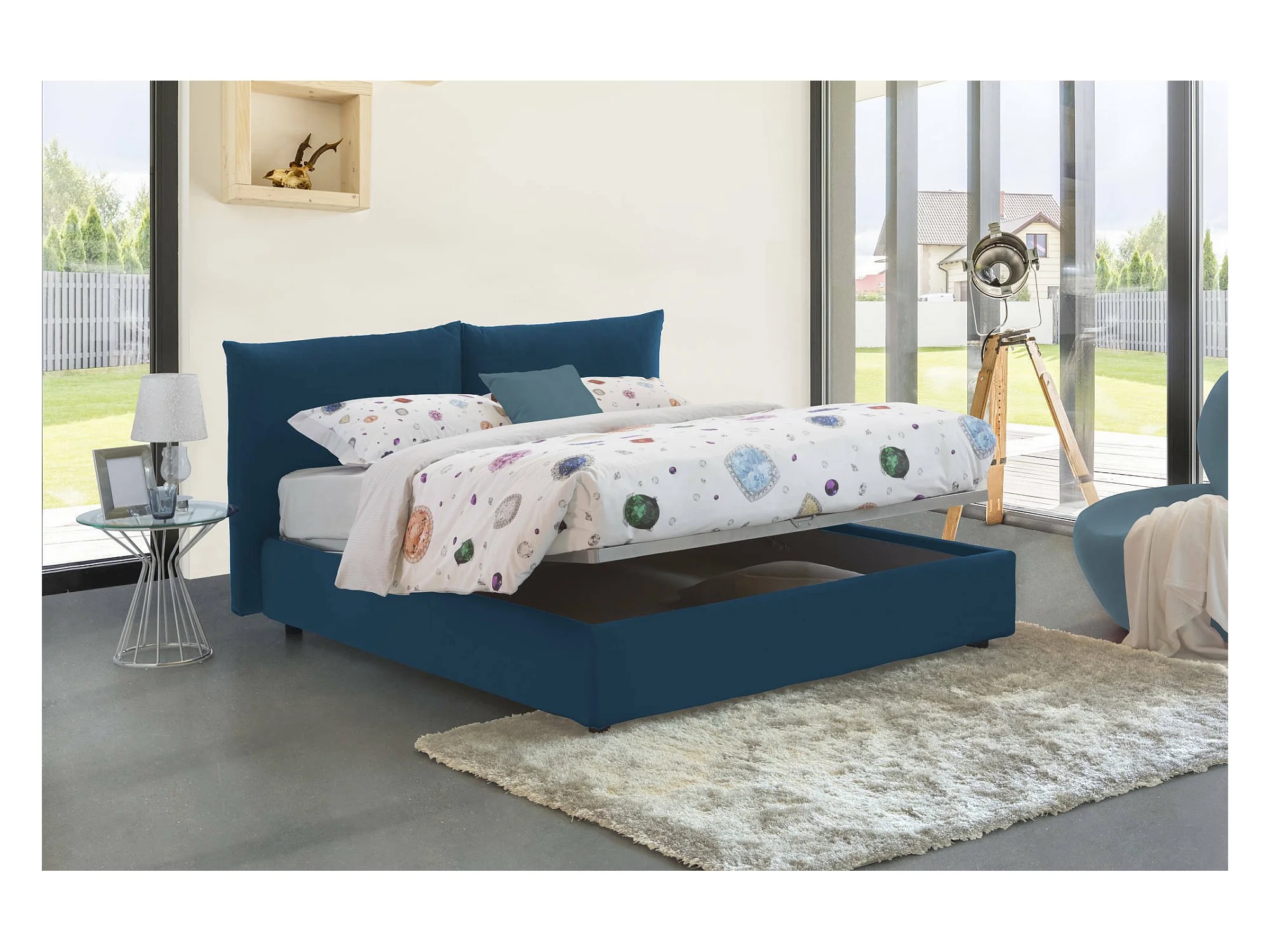 Lit double Tiziana, Lit coffre avec revêtement en tissu, 100% Made in Italy, Ouverture frontale, adapté pour matelas 160x190 cm, Bleu