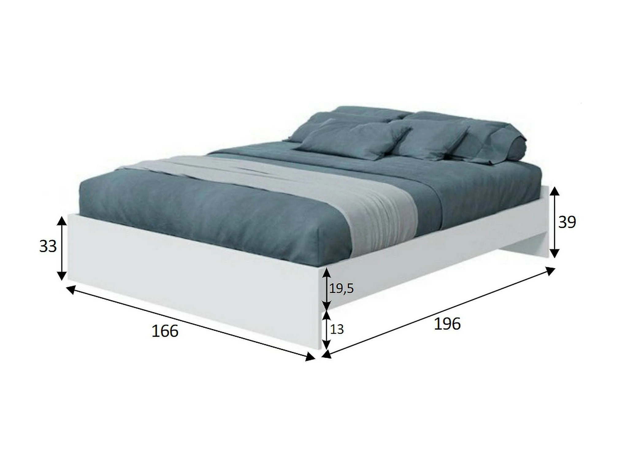 Lit double Yakima, Cadre de lit double, Structure de chambre adaptée au matelas 190x160, 166x196h40 cm, Blanc