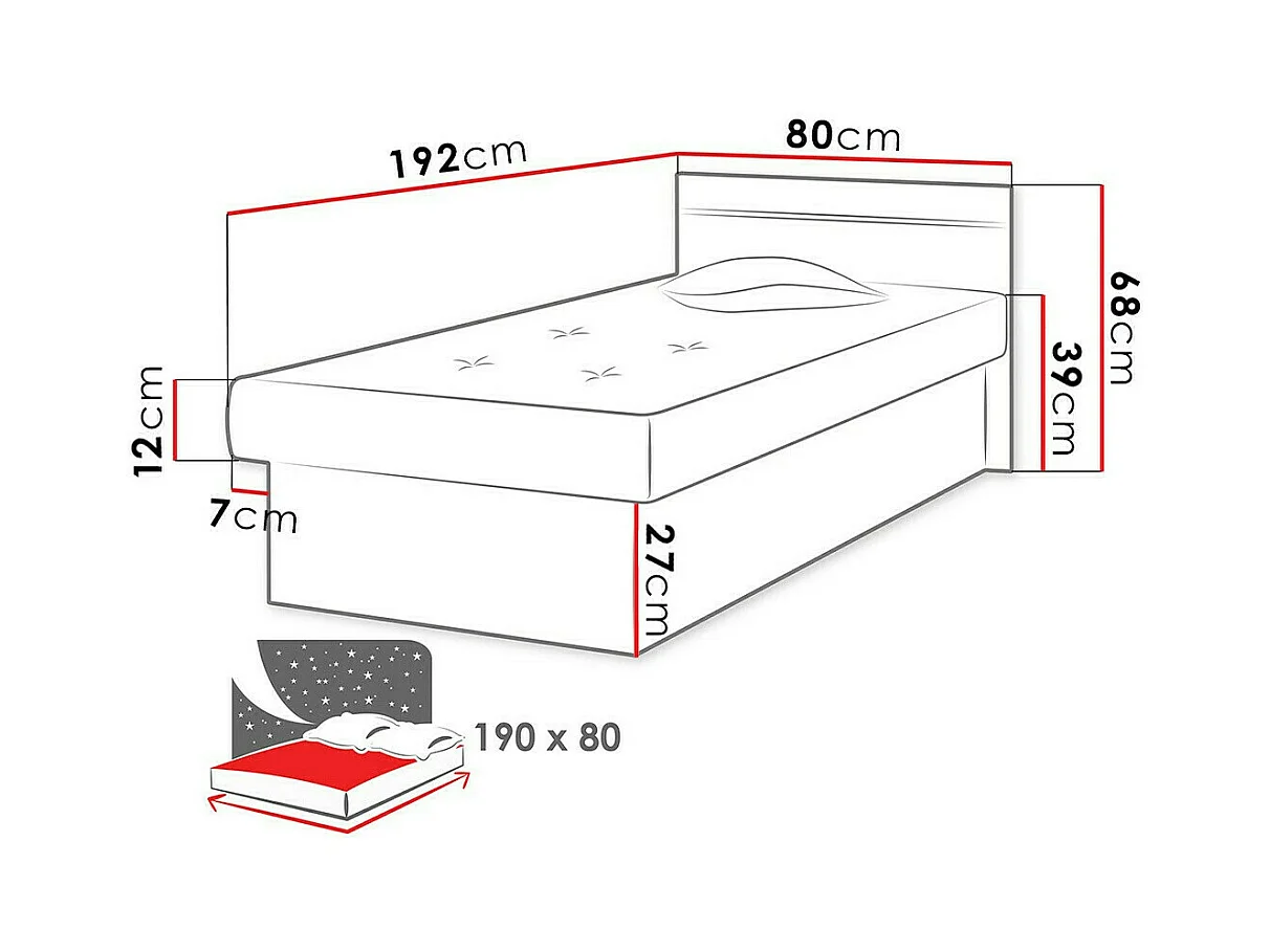 Lit Dover 101, Unique, Noir, 80x190, 80x192x68cm