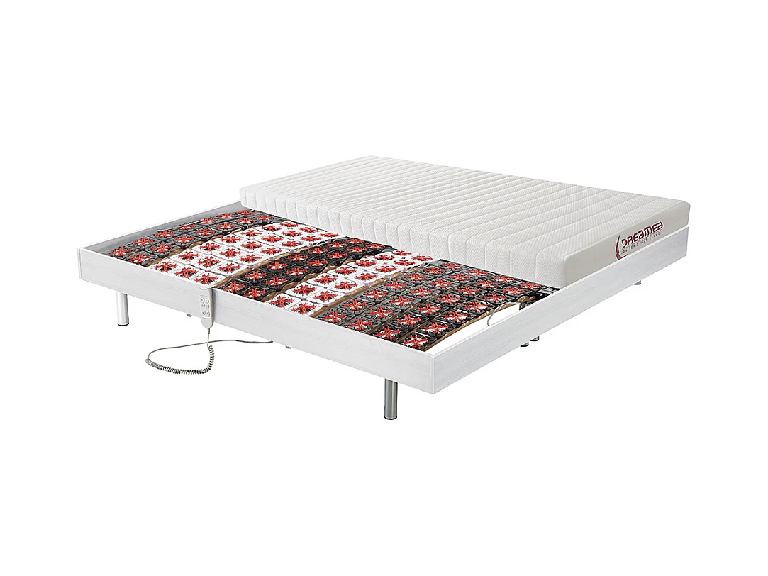 Lit électrique de relaxation tout plots + matelas accueil latex - 2 x 90 x 200 cm - Blanc - ETHER de DREAMEA