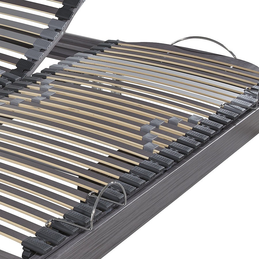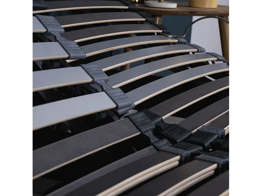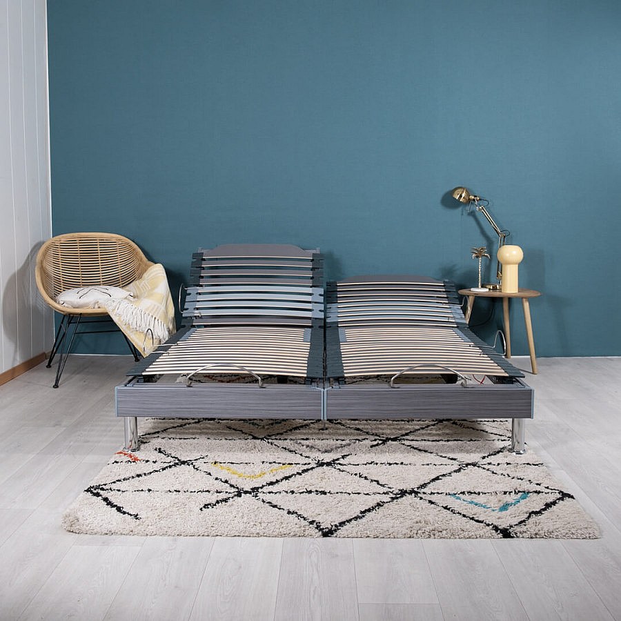 Sommier électrique S62+Lattes bois - Réglage fermeté zone lombaires - 2x90x200 - Gris
