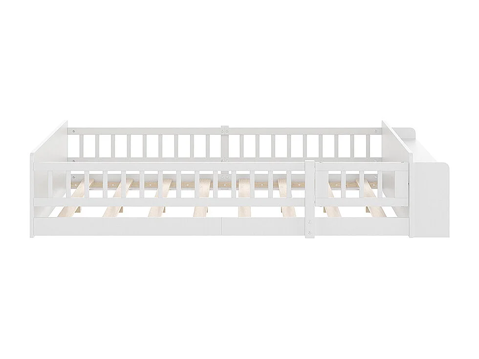 Lit en bois, lit d'enfant 140x190cm, avec rangement ouvert, étagères, armoire ouvrante, pin+mdf, blanc, sans matelas