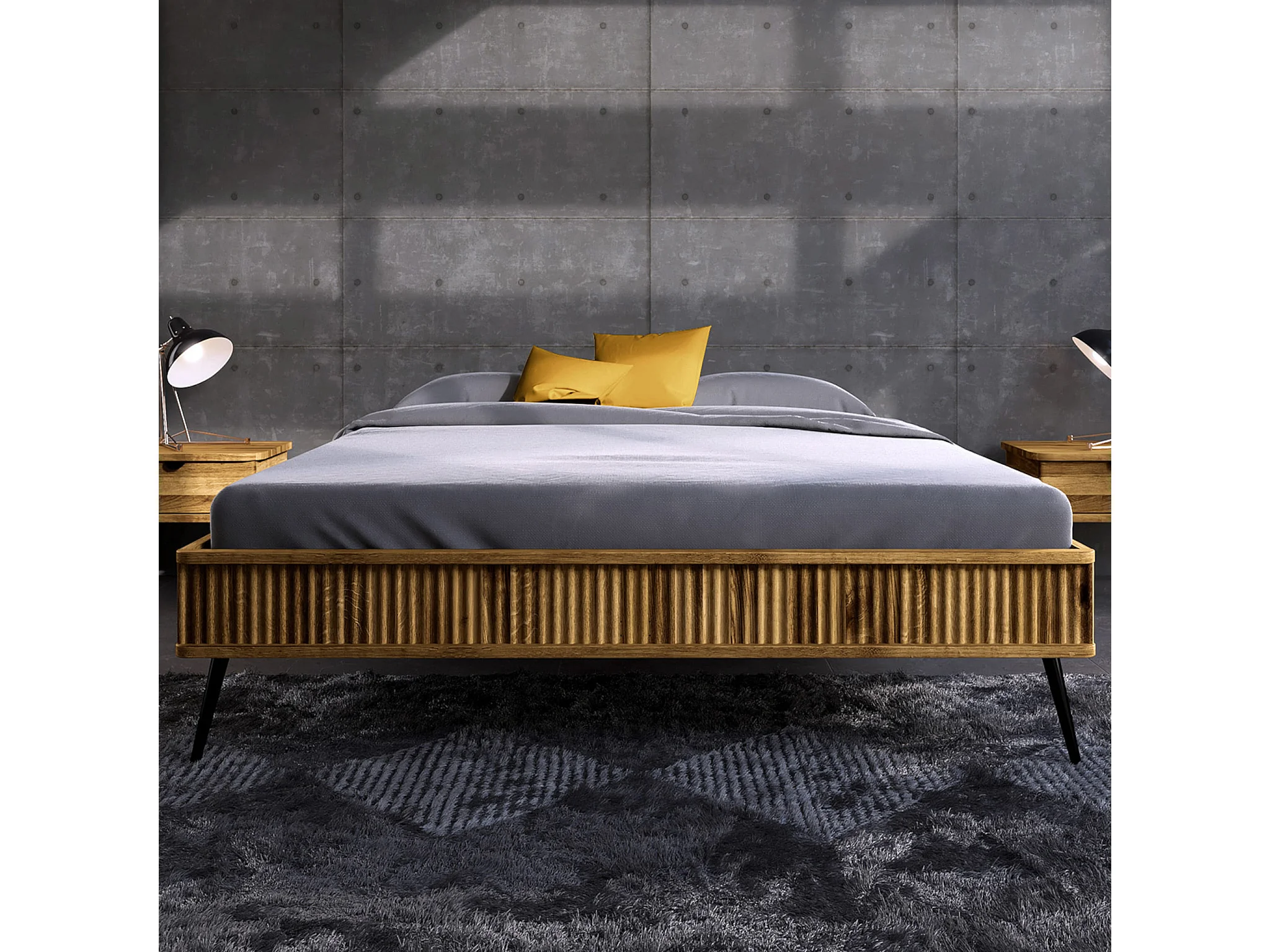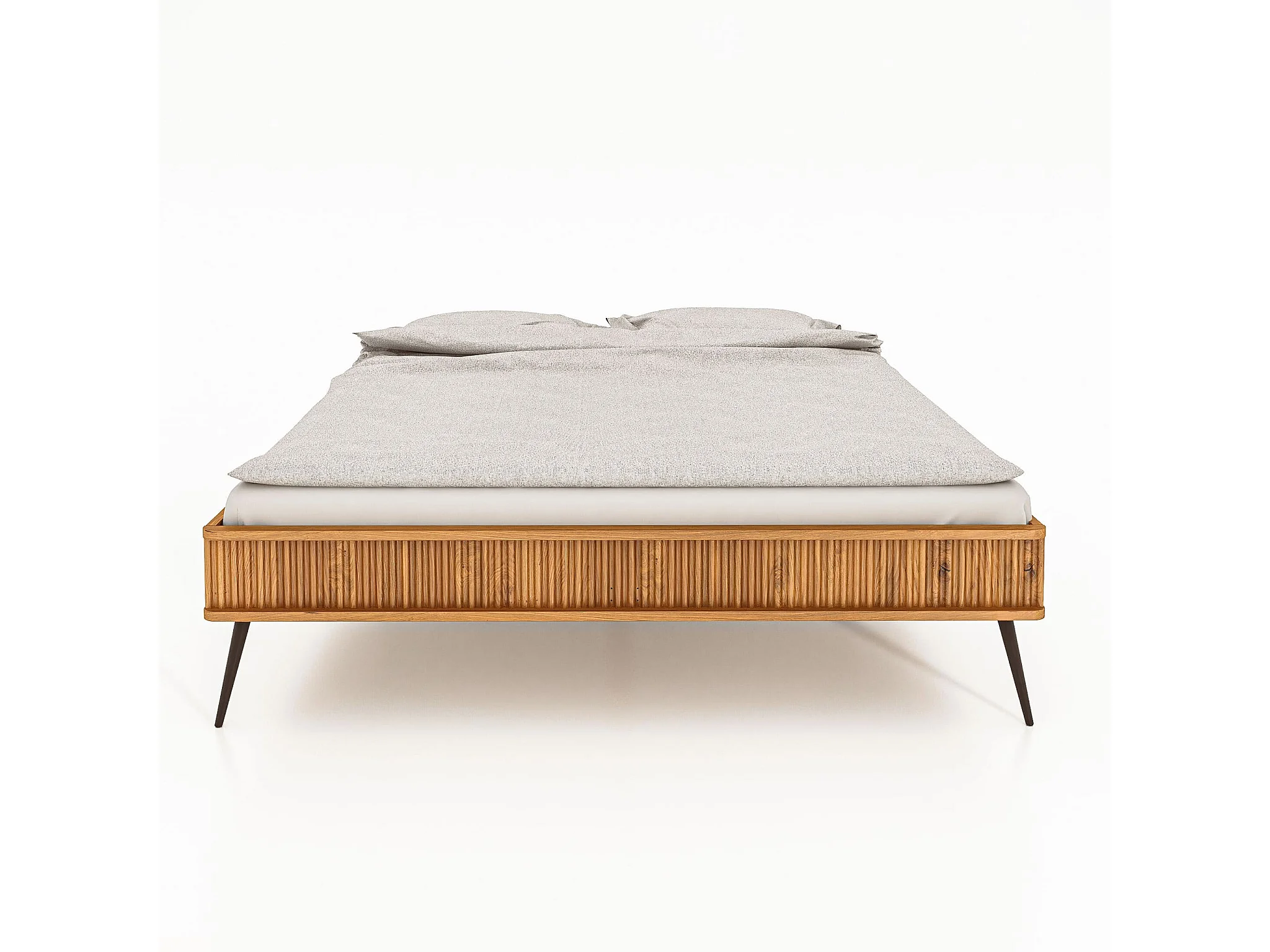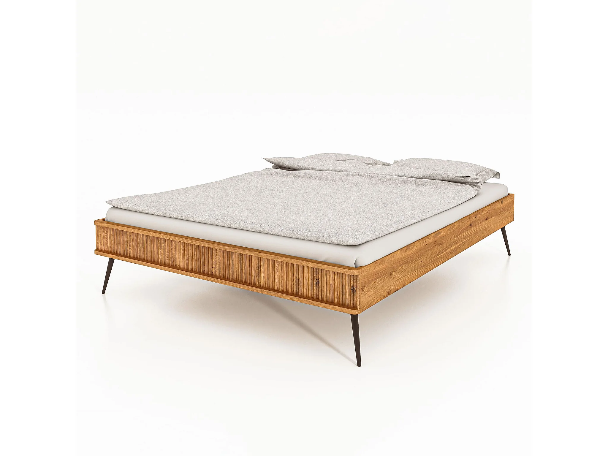 Lit en chêne massif clair 160x200 avec pieds inclinés en métal - LT36002