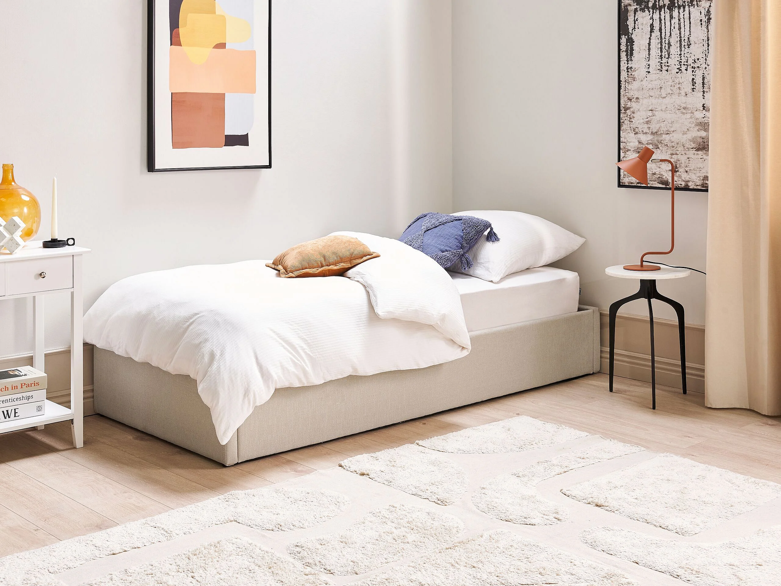 Lit ottoman sans tête de lit Tissu DINAN 90 x 200 cm Marron clair