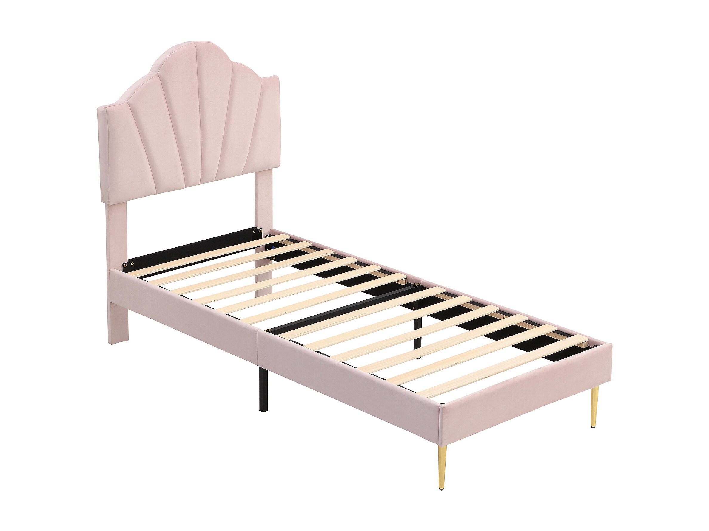 Lit en velours, 90×200 cm, rose, tête de lit réglable, structure en bois massif et métal