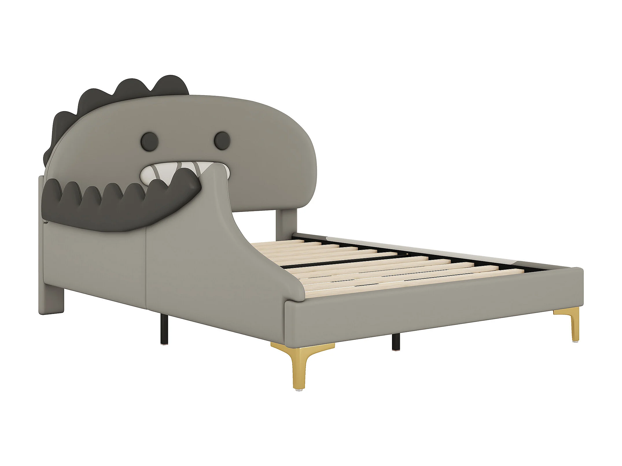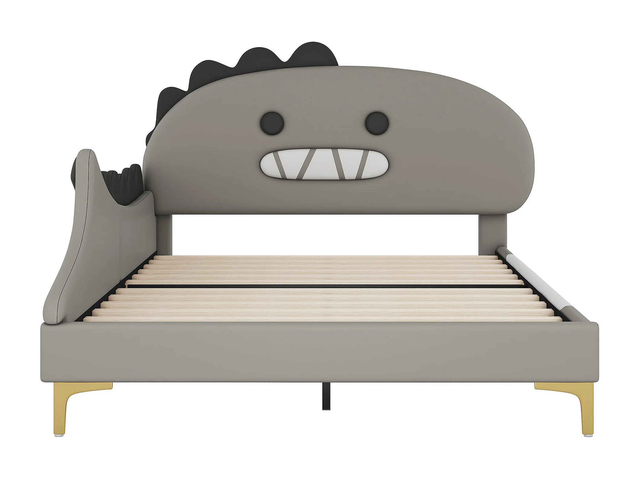 Lit enfant 140X200 cm forme de dinosaure cartoon lit plat matériau en PU - gris