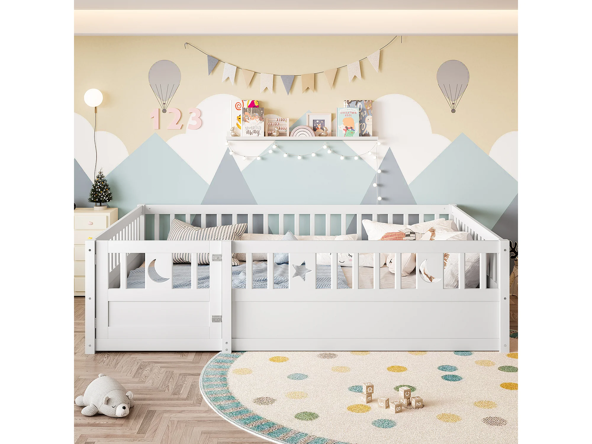 Lit enfant 140 x 190 cm - Lit adulte avec barrières de sécurité et porte - blanc - matelas non inclus