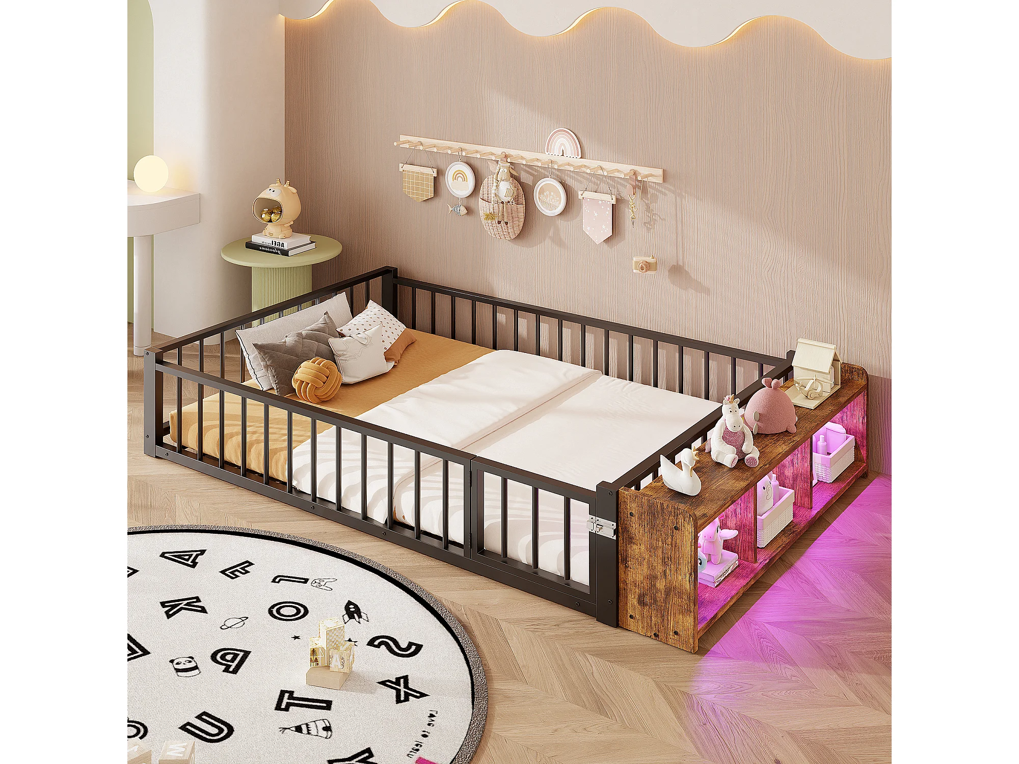 Lit enfant 140 x 200 cm - Cadre en métal - Avec barrières de sécurité - Noir (matelas non inclus)