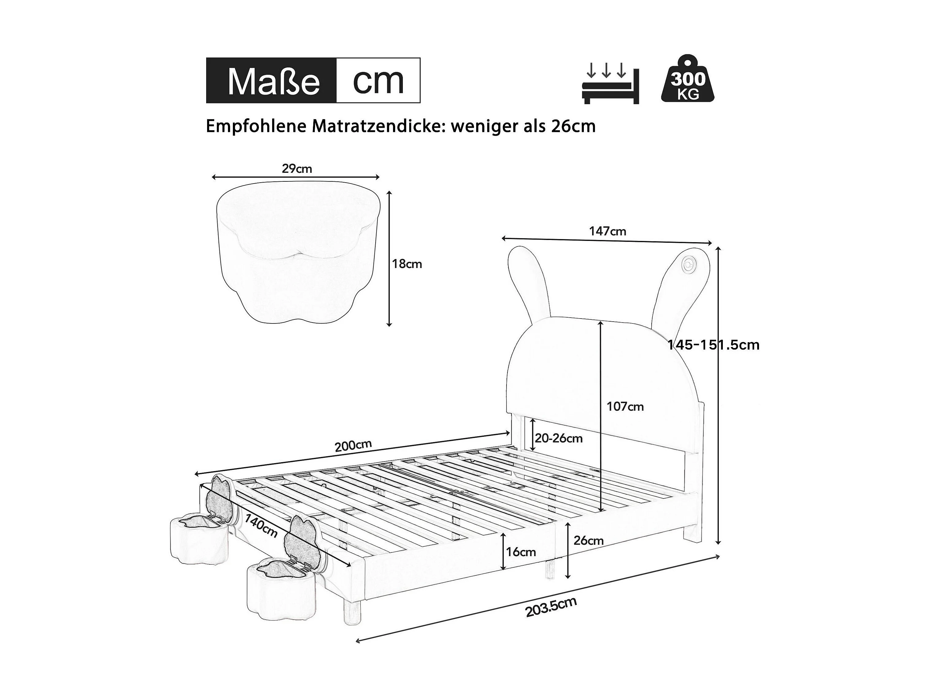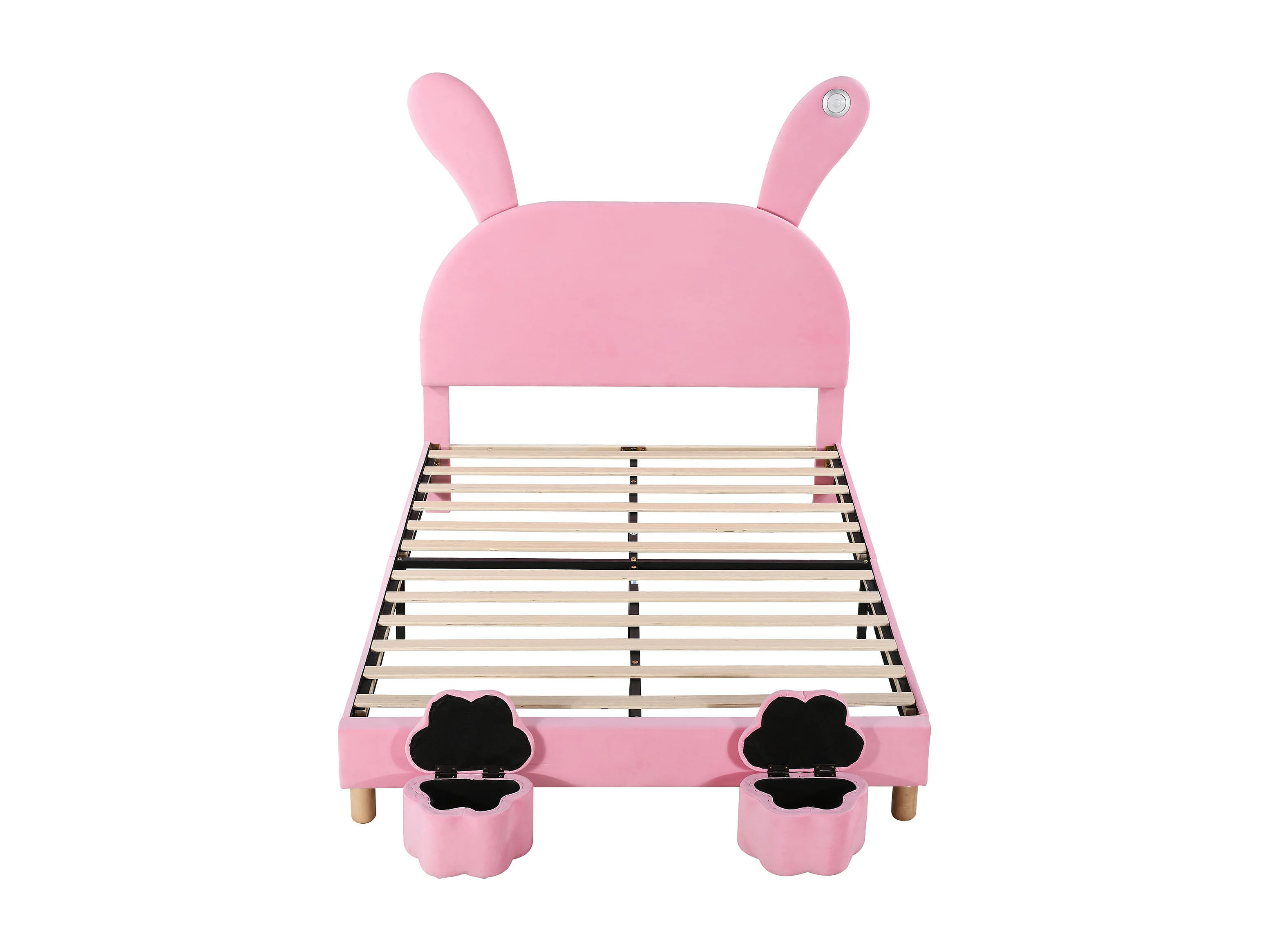 Lit enfant 140x200 - avec LED, sommier à lattes - en velours - rose - sans matelas