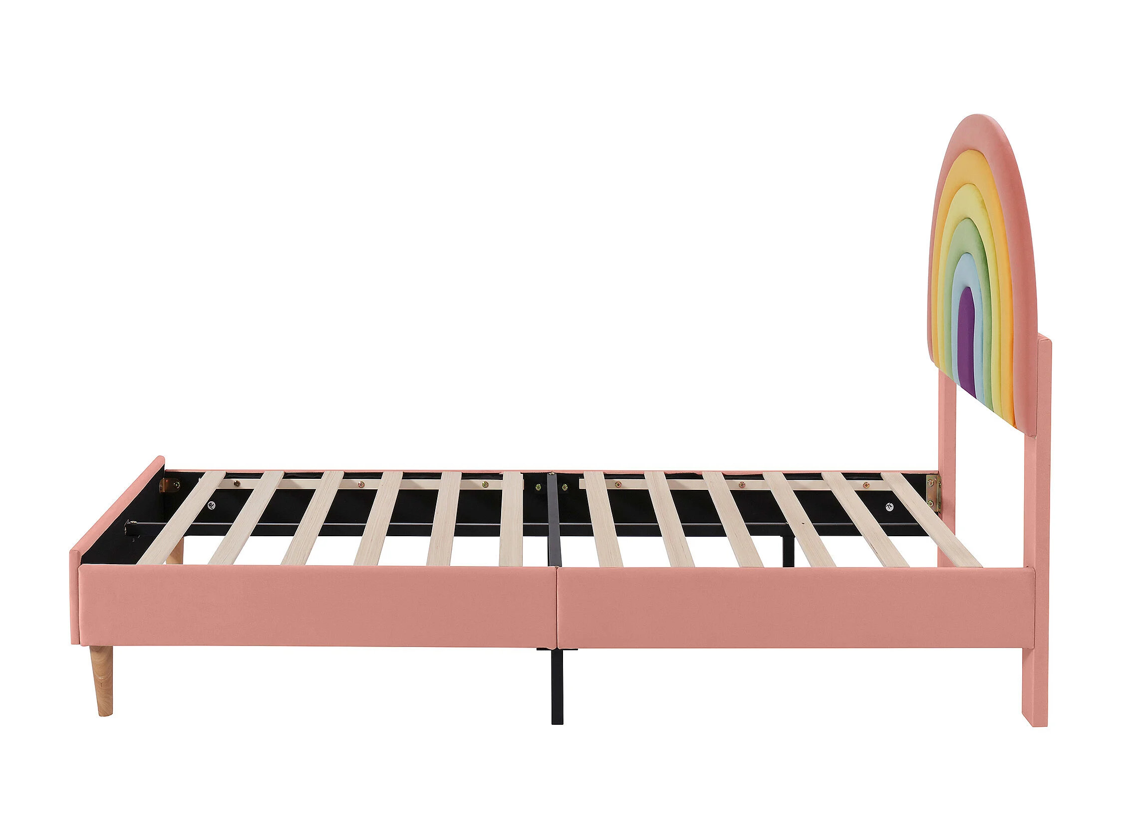 Lit enfant 140x200 cm - Lit simple avec sommier à lattes - Tête de lit réglable - velours rose
