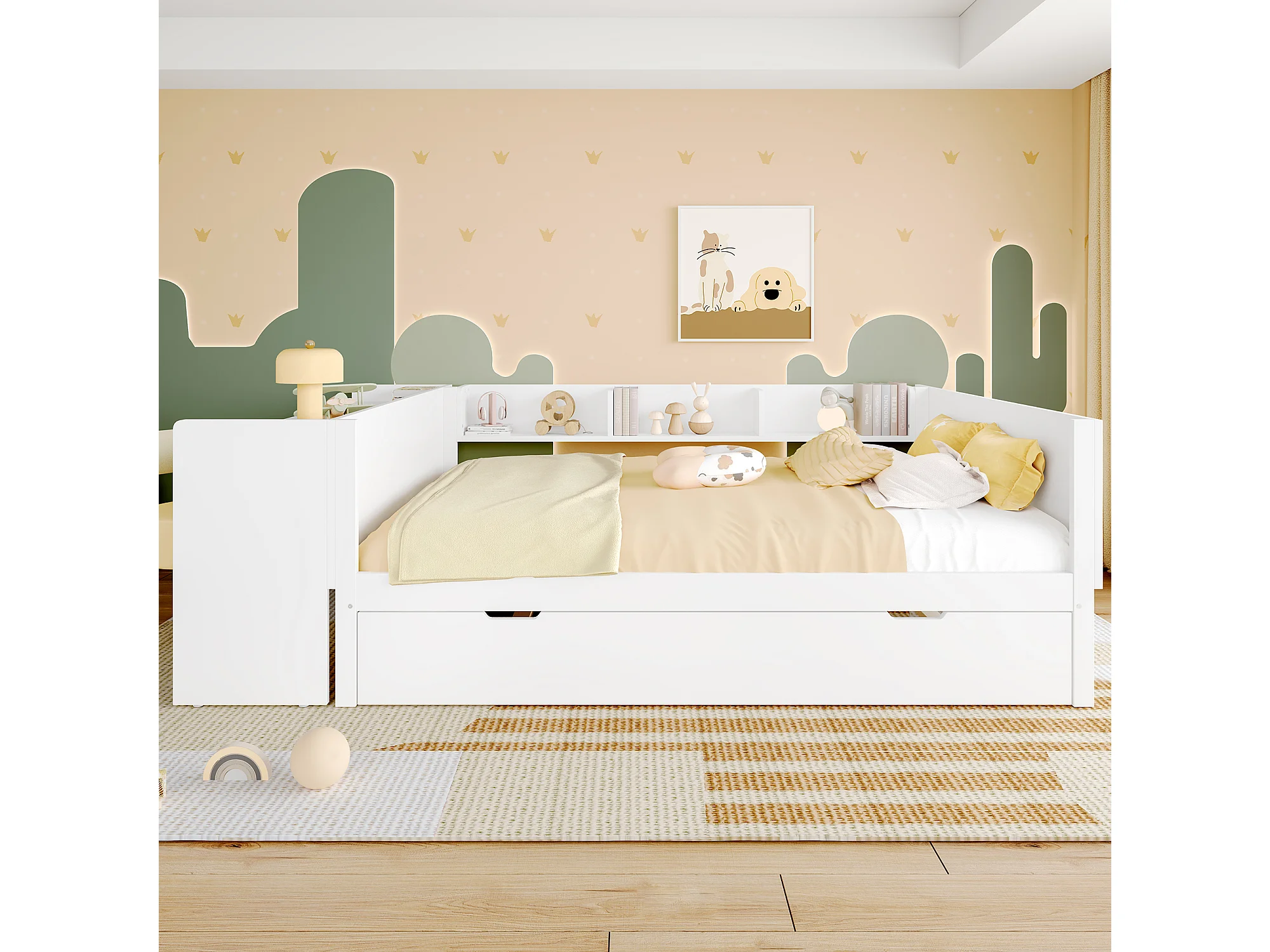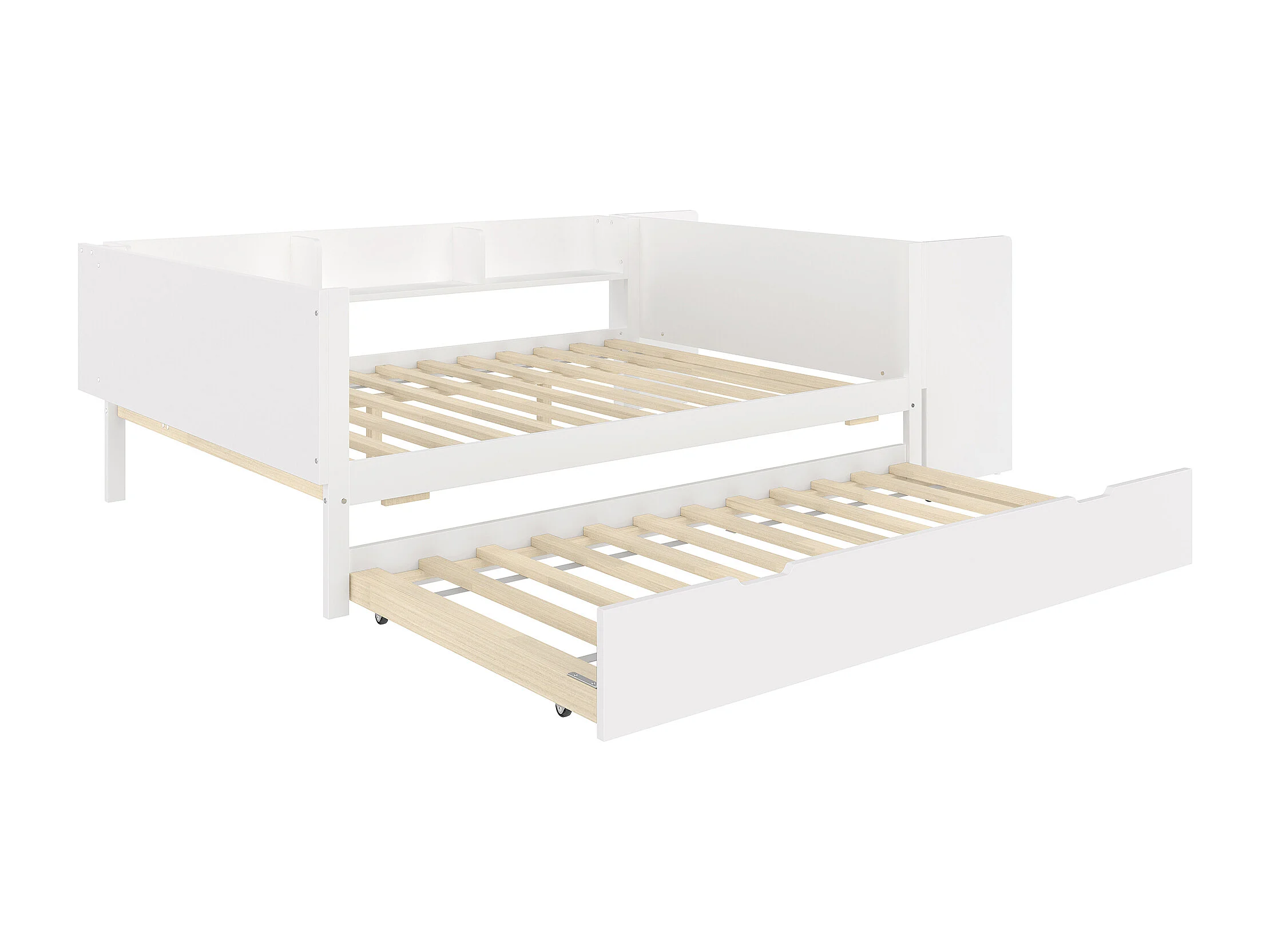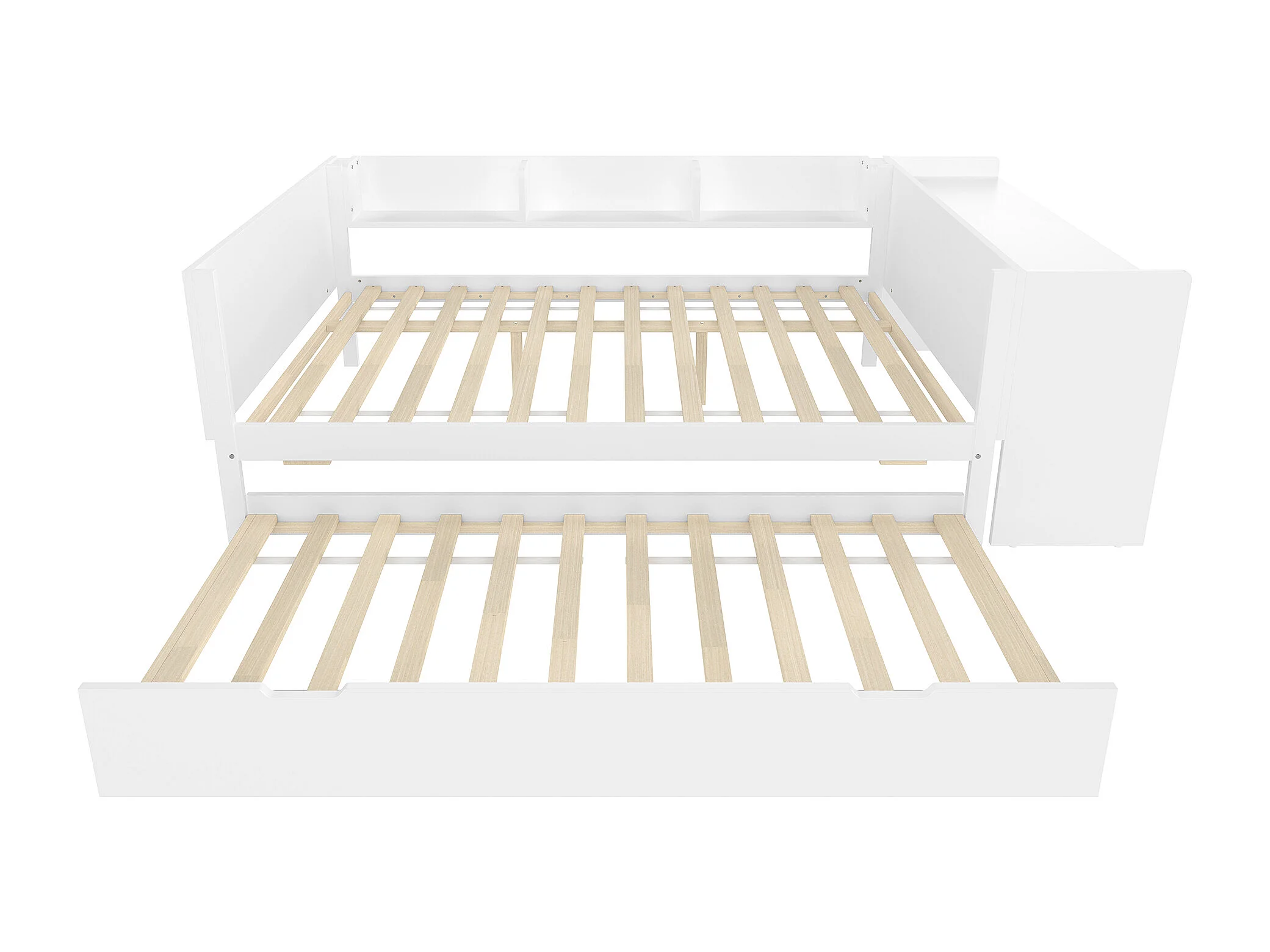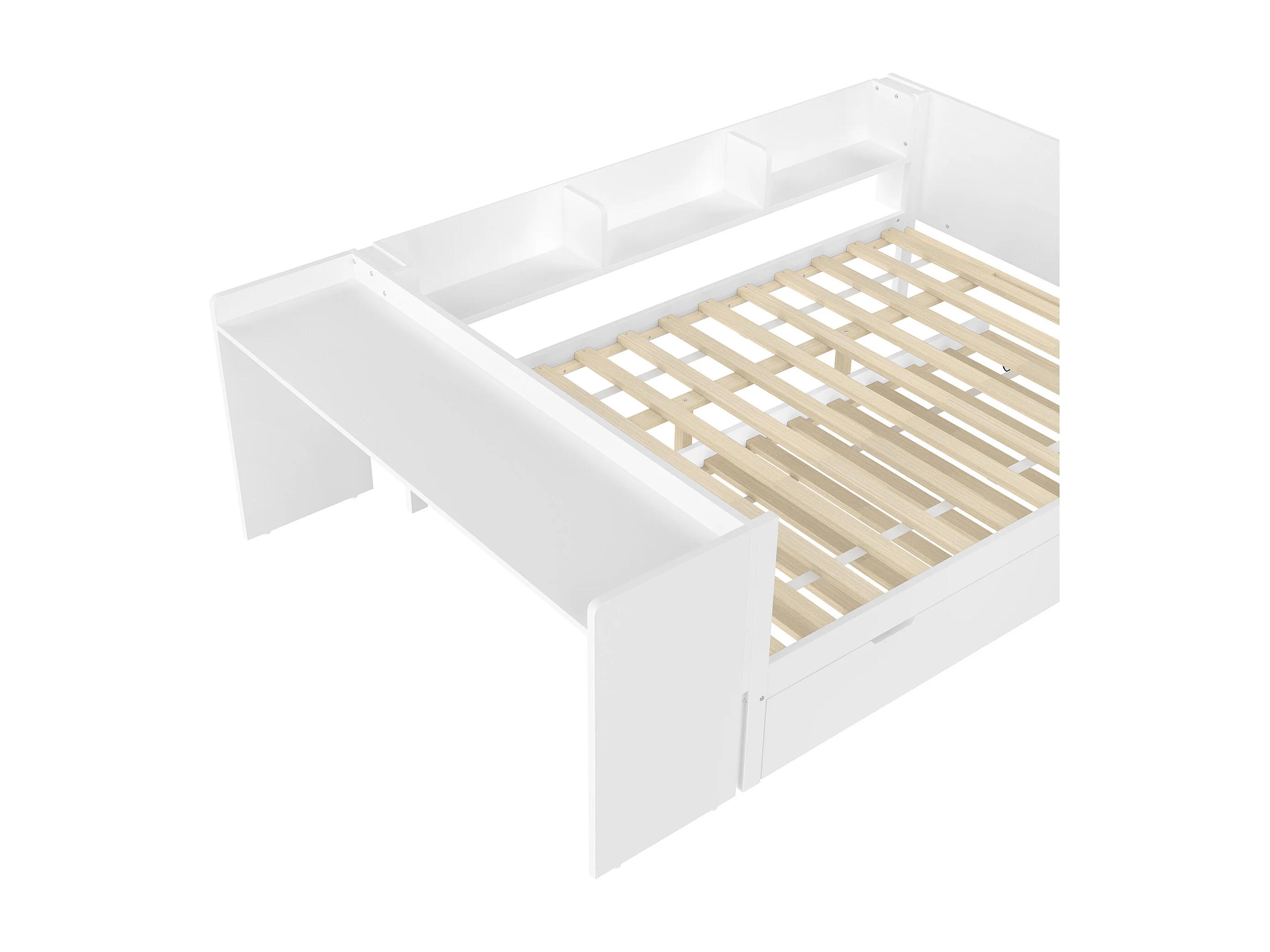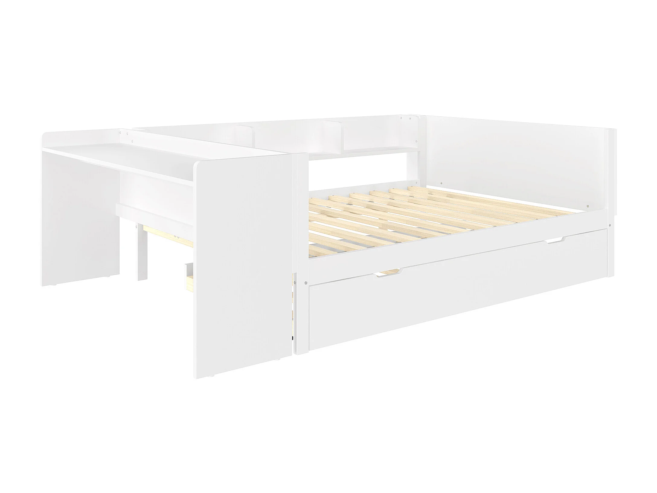 Lit enfant 140x200cm avec lit gigogne 90x200cm -bureau et rangement- Bois blanc