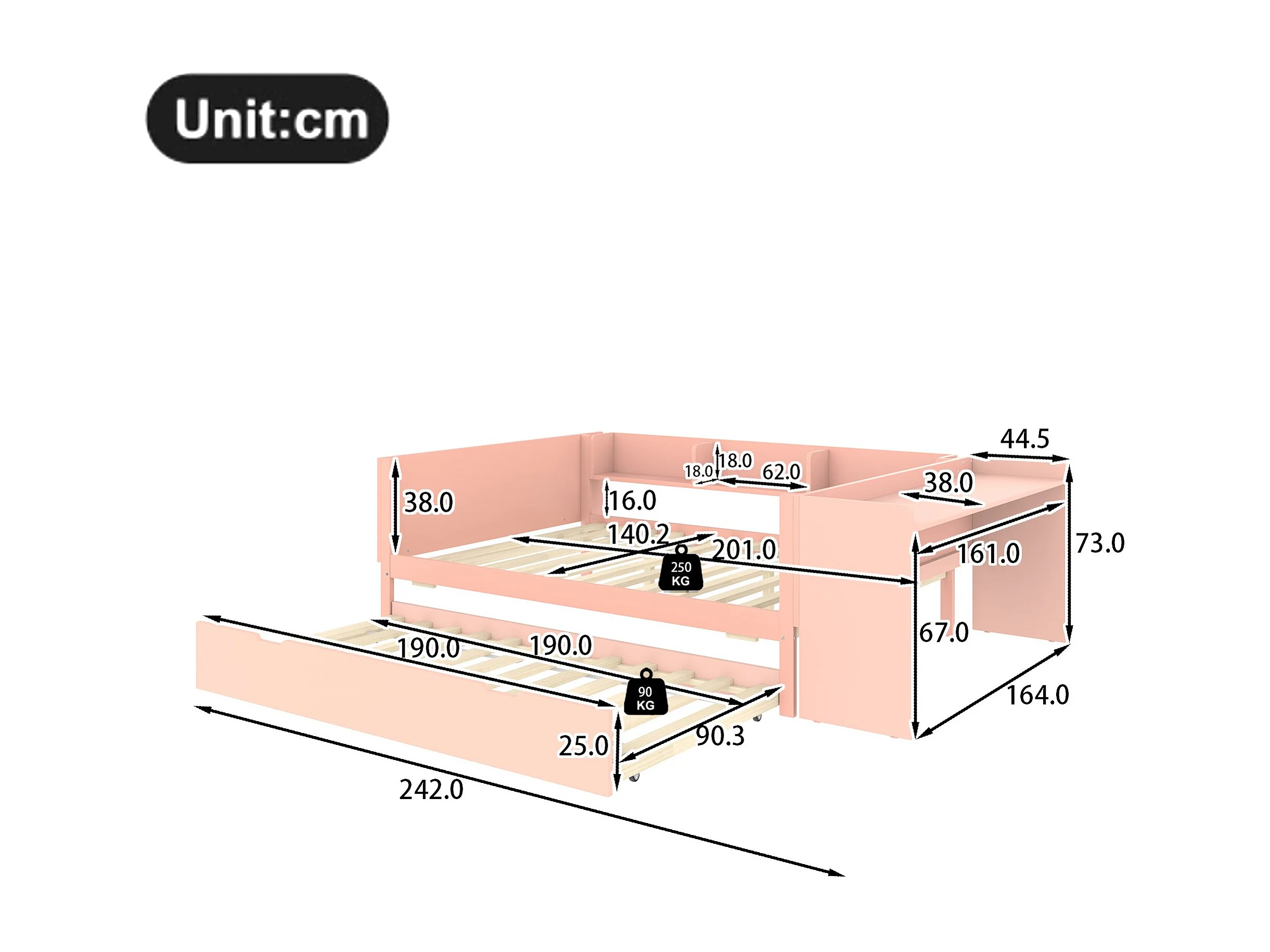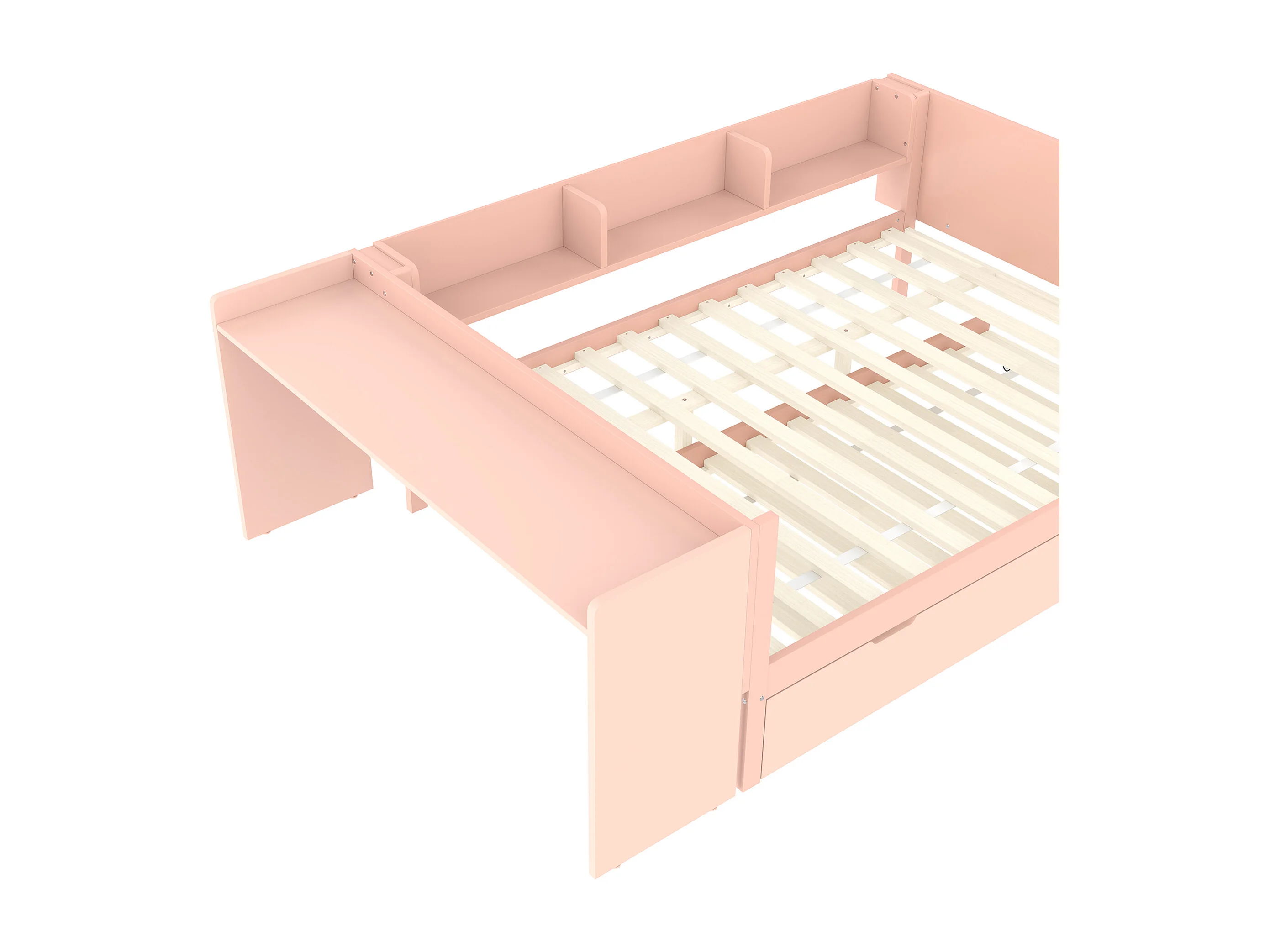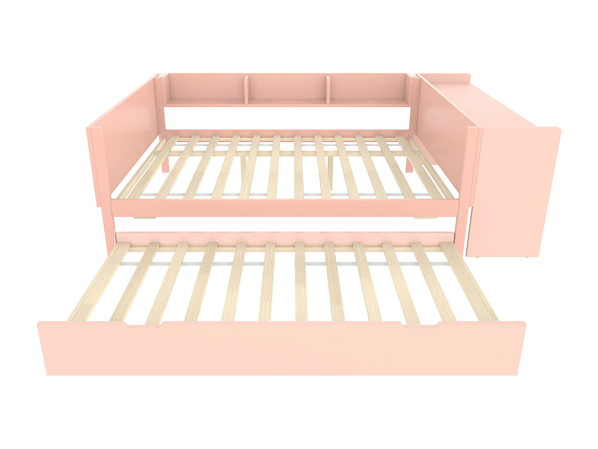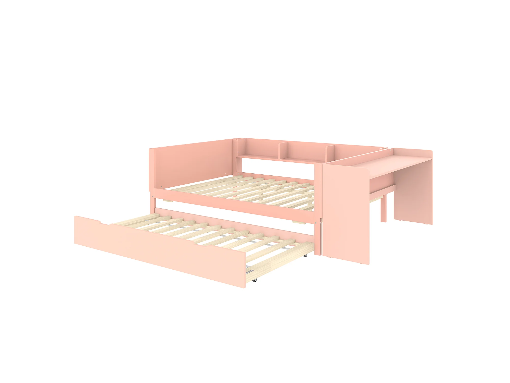 Lit enfant 140x200cm avec lit gigogne 90x200cm -bureau et rangement- Bois rose