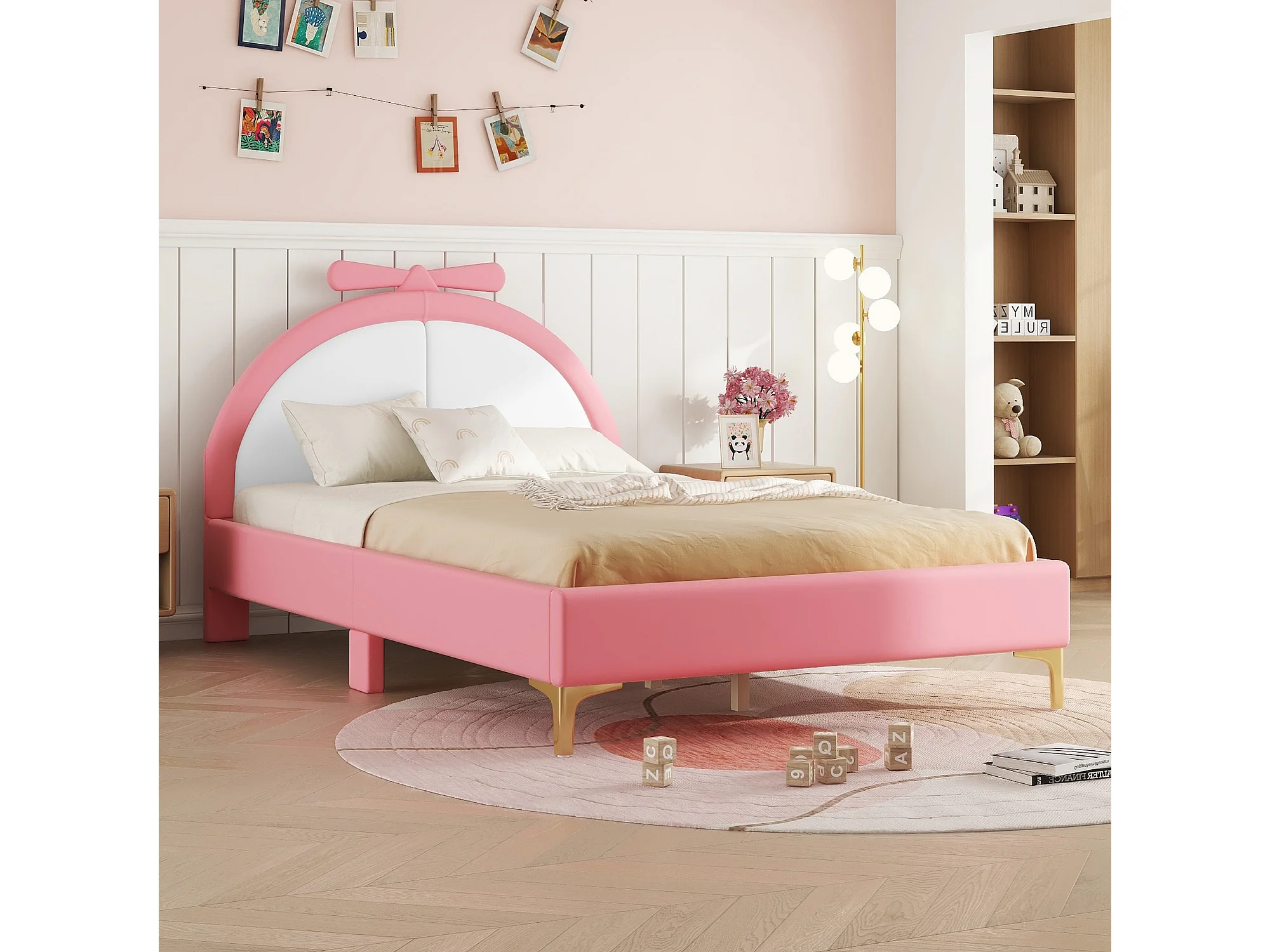 Lit enfant 140x200cm, Lit adulte, PU, rose, sans matelas