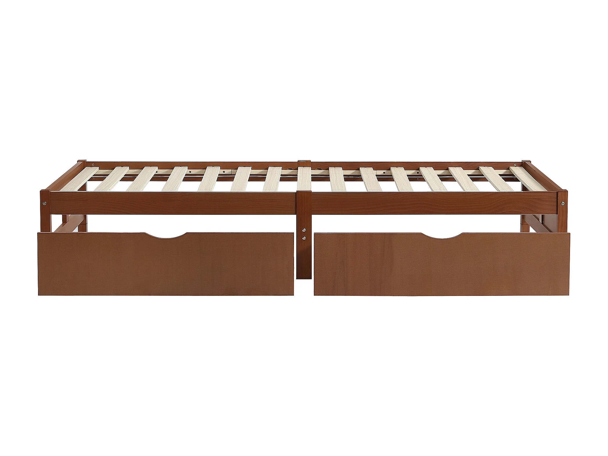 Lit enfant 206x96x35 cm avec deux tiroirs à roulettes Matériau MDF en Brun rougeâtre pour enfants et adolescents