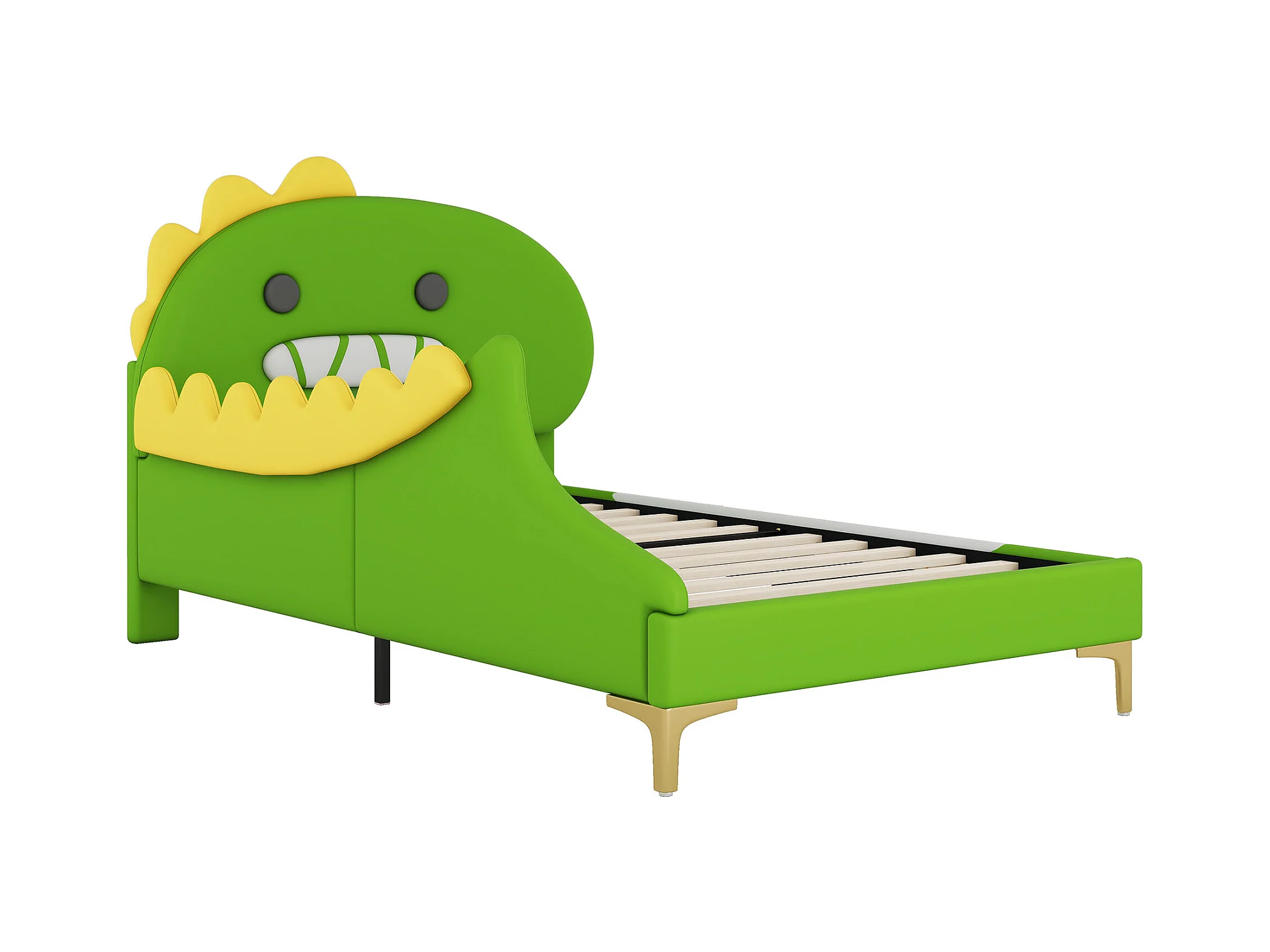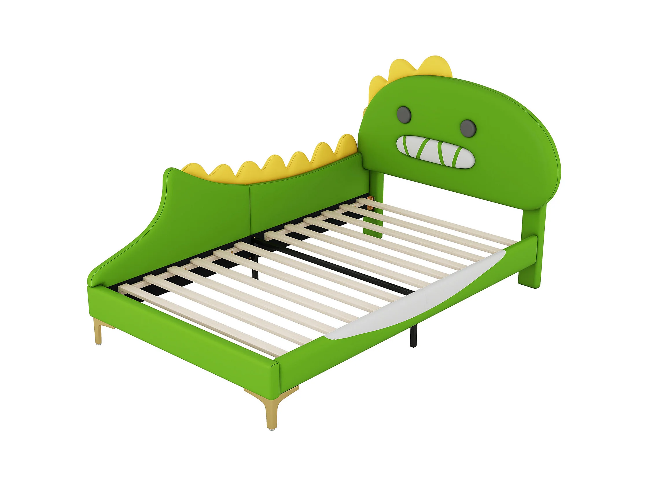 Lit enfant 90X200 cm forme de dinosaure cartoon lit plat matériau en PU - vert