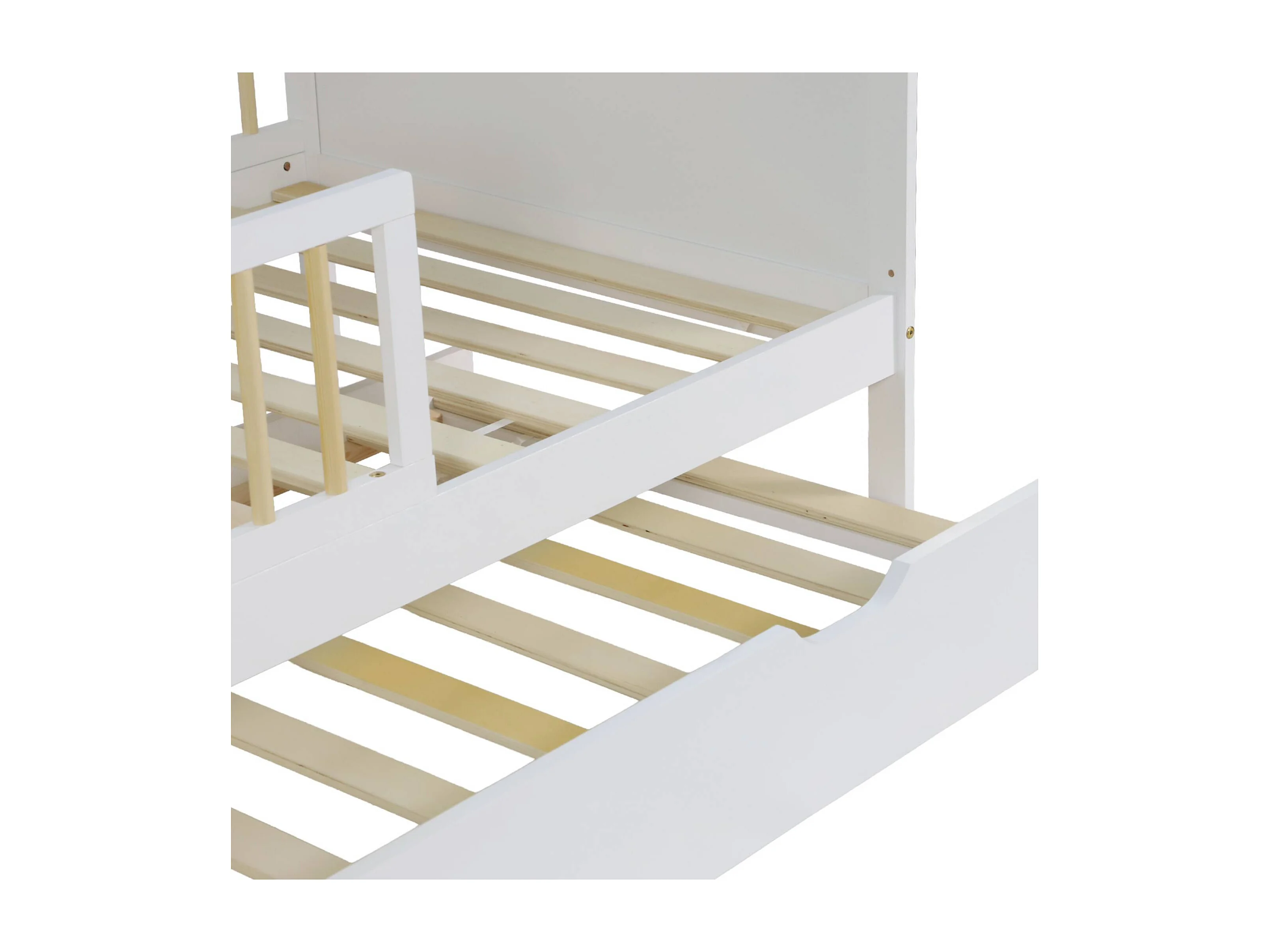 Lit gigogne enfant 90 x 190 cm pin naturel avec sommier à lattes et tiroir blanc - Elio