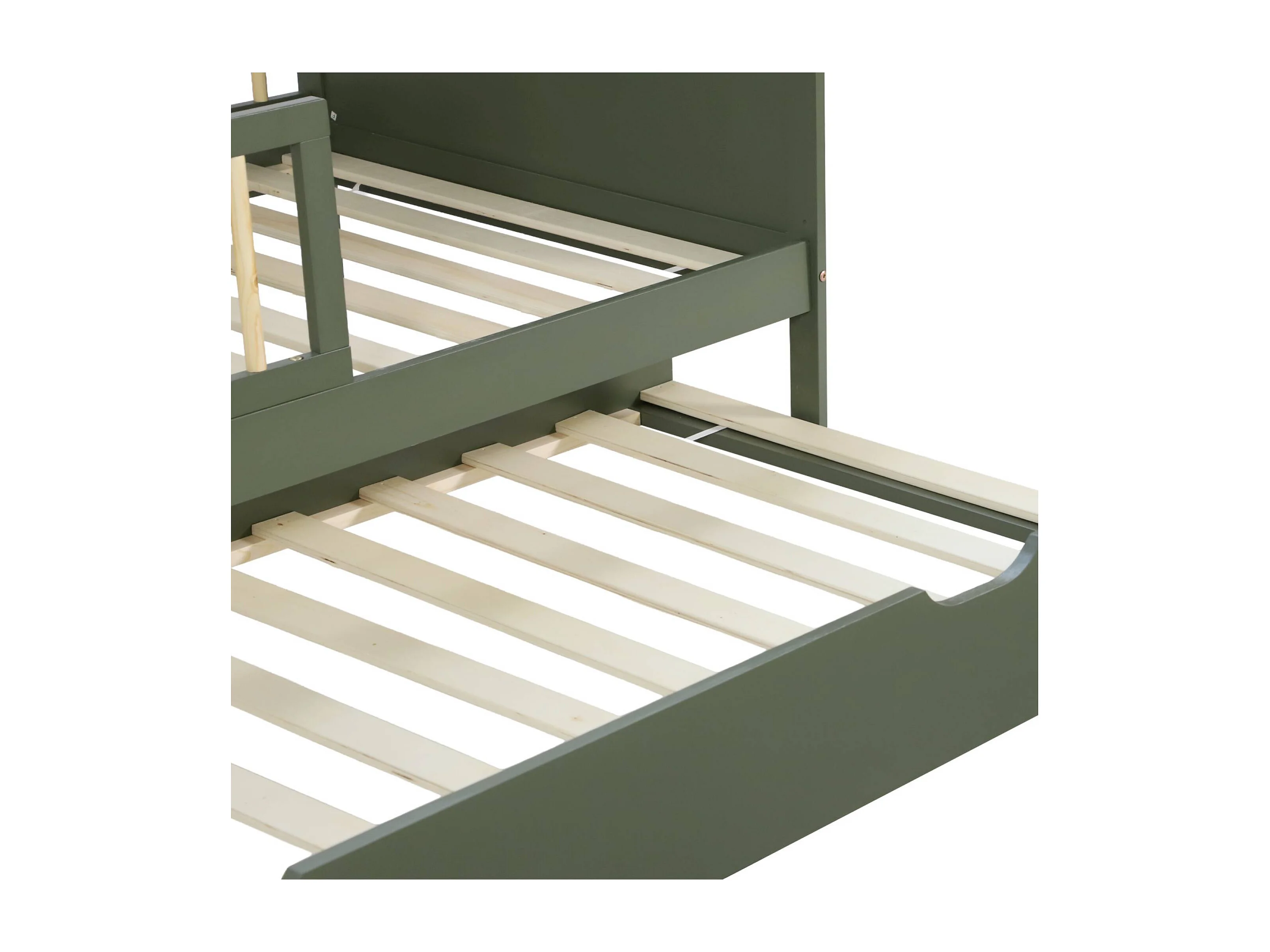 Lit gigogne enfant 90 x 190 cm pin naturel avec sommier à lattes et tiroir vert - Elio