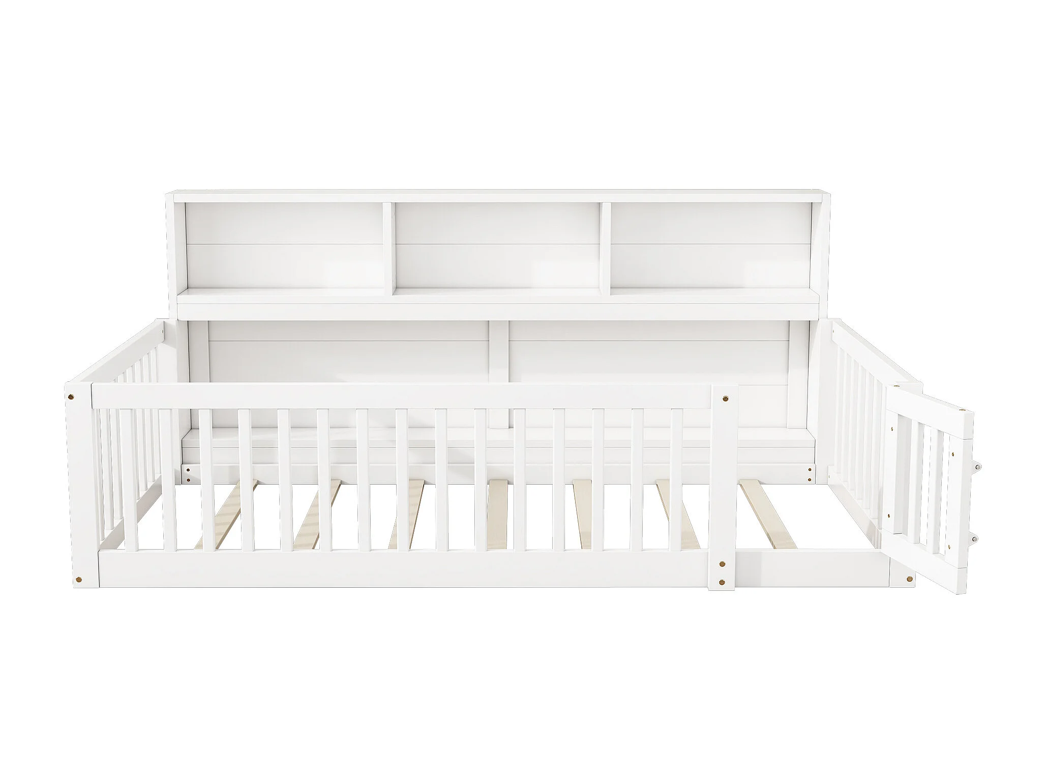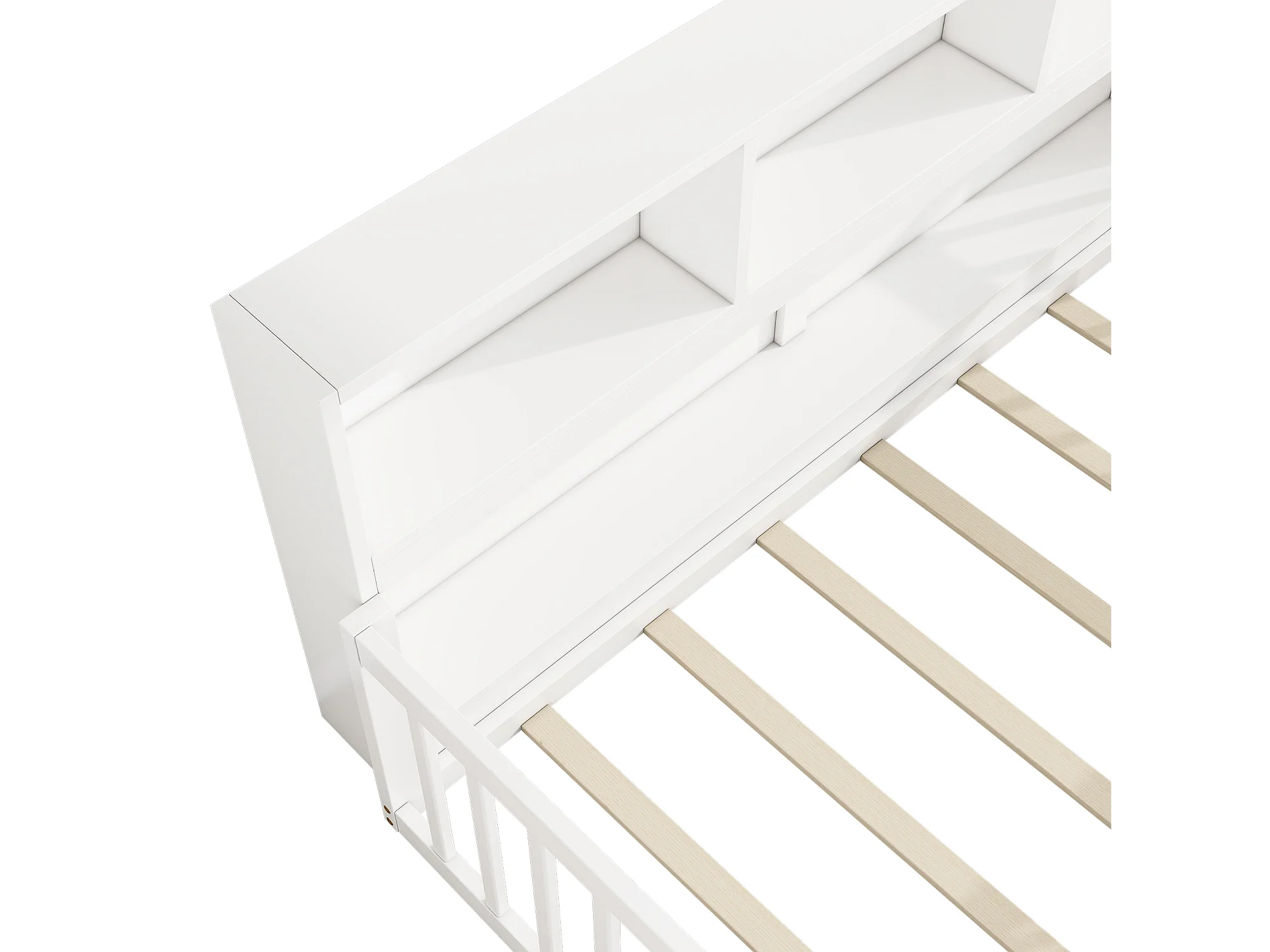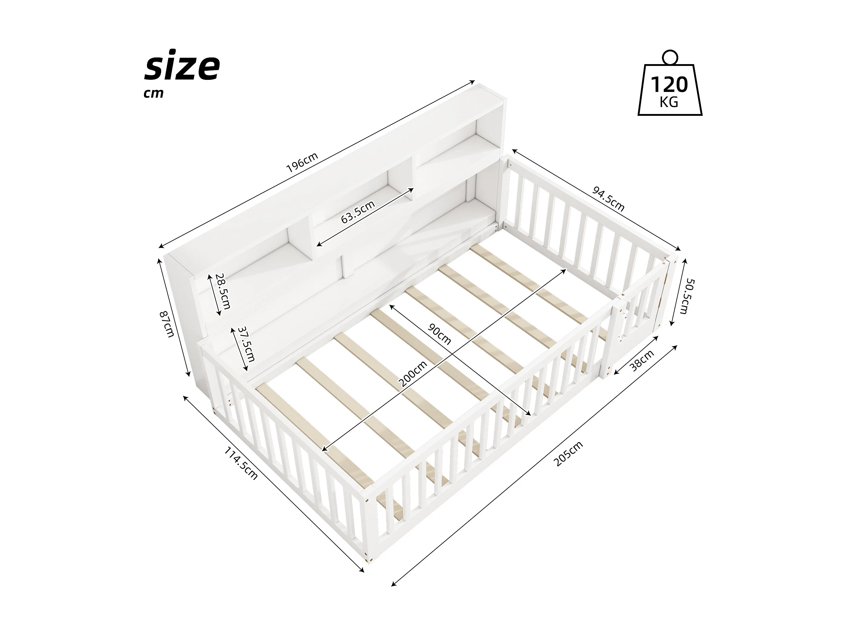 Lit enfant 90 x 200 cm - avec étagères et sommier à lattes - blanc - sans matelas