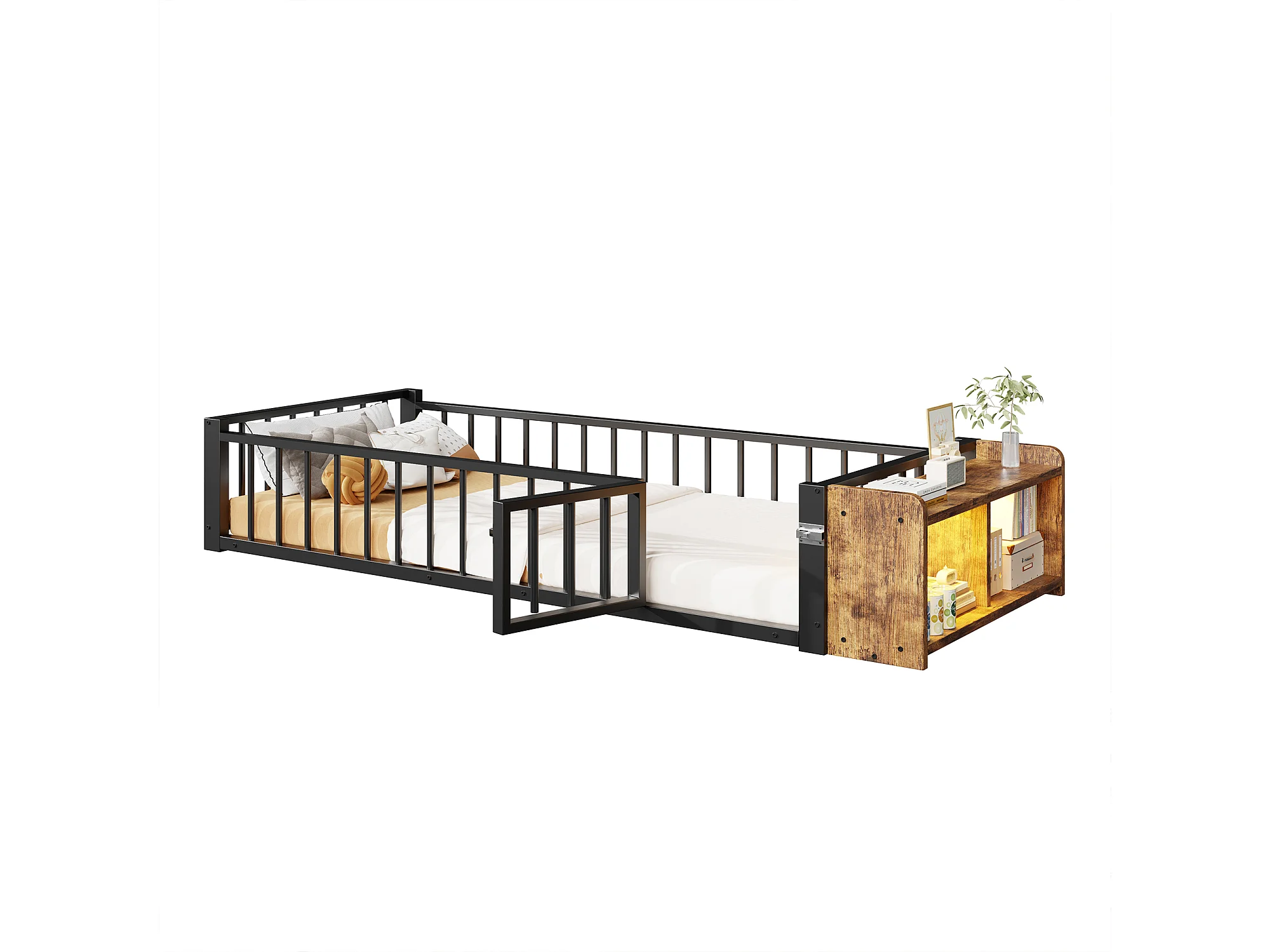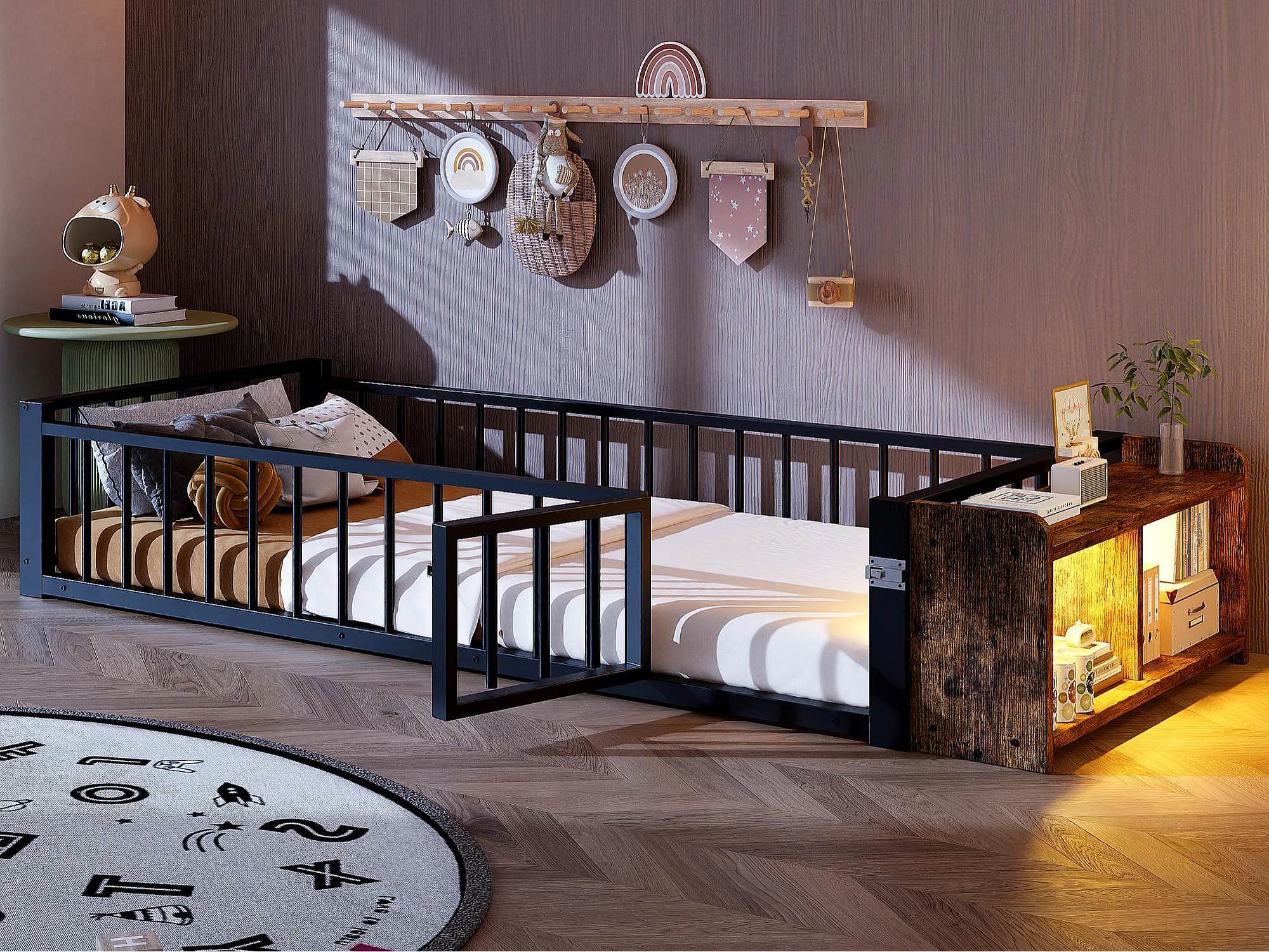 Lit enfant 90 x 200 cm - Cadre en métal - Avec barrières de sécurité - Noir (matelas non inclus)