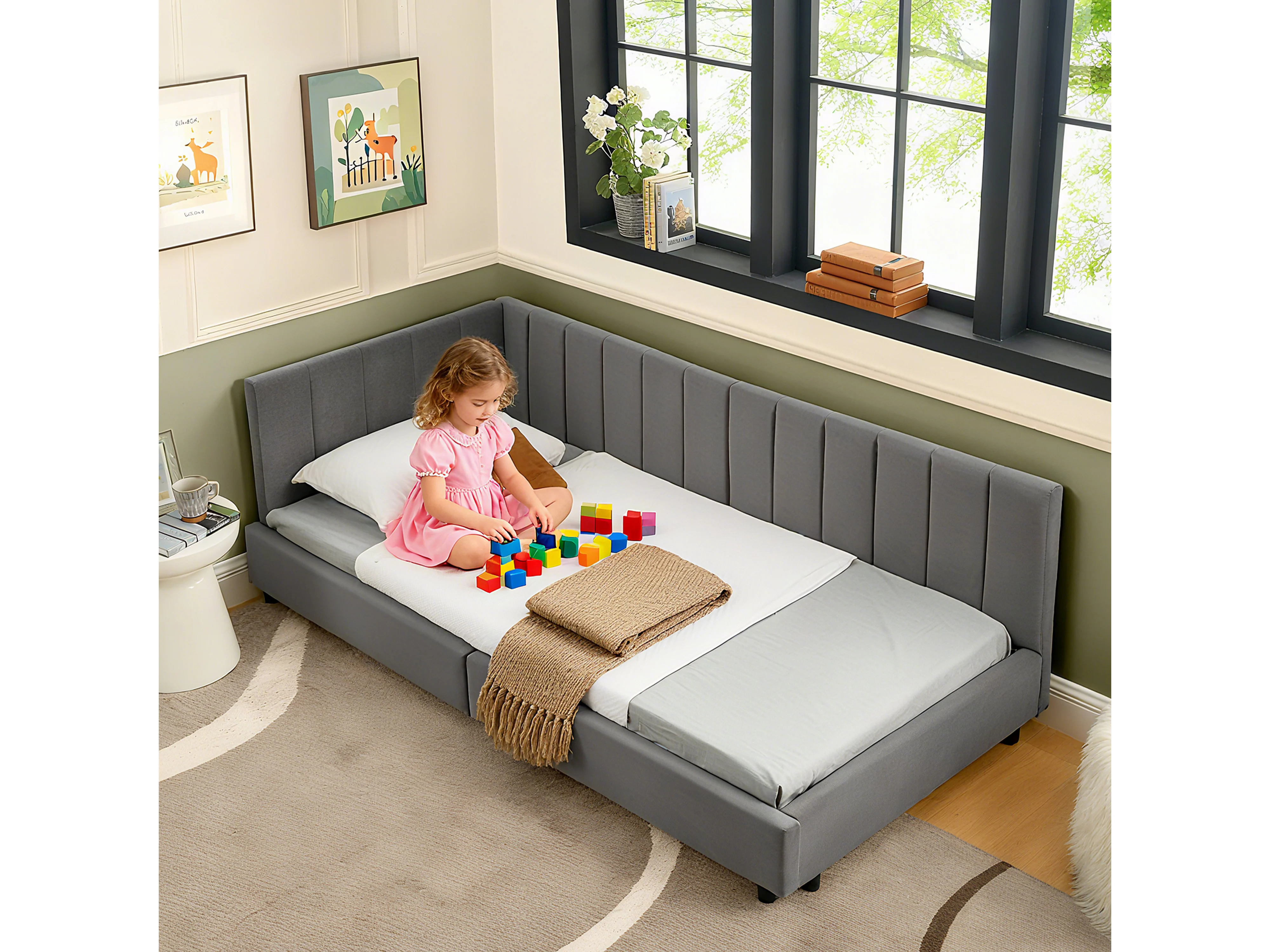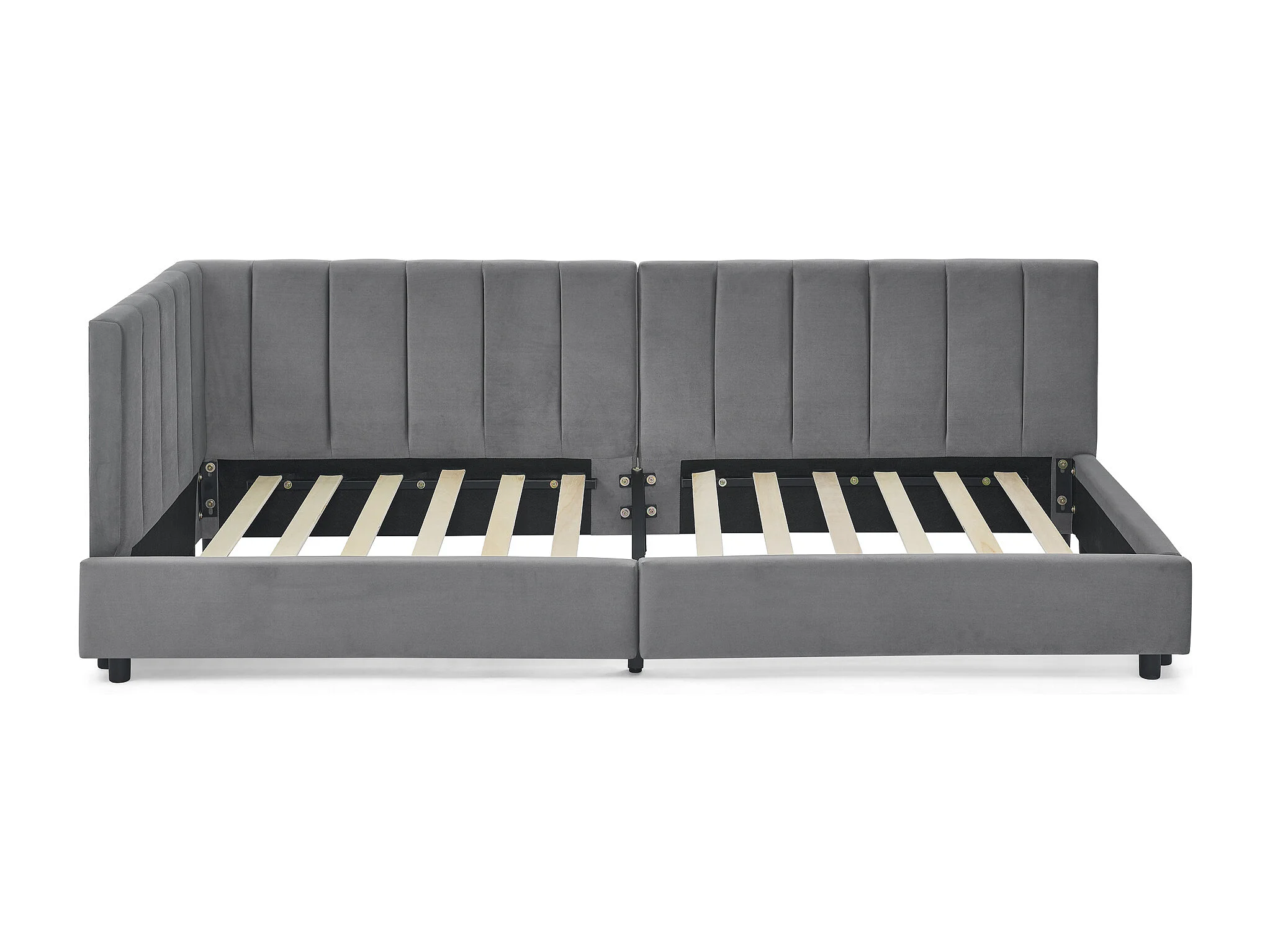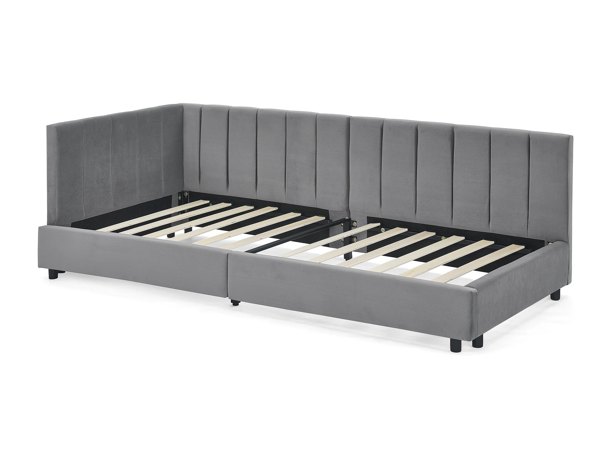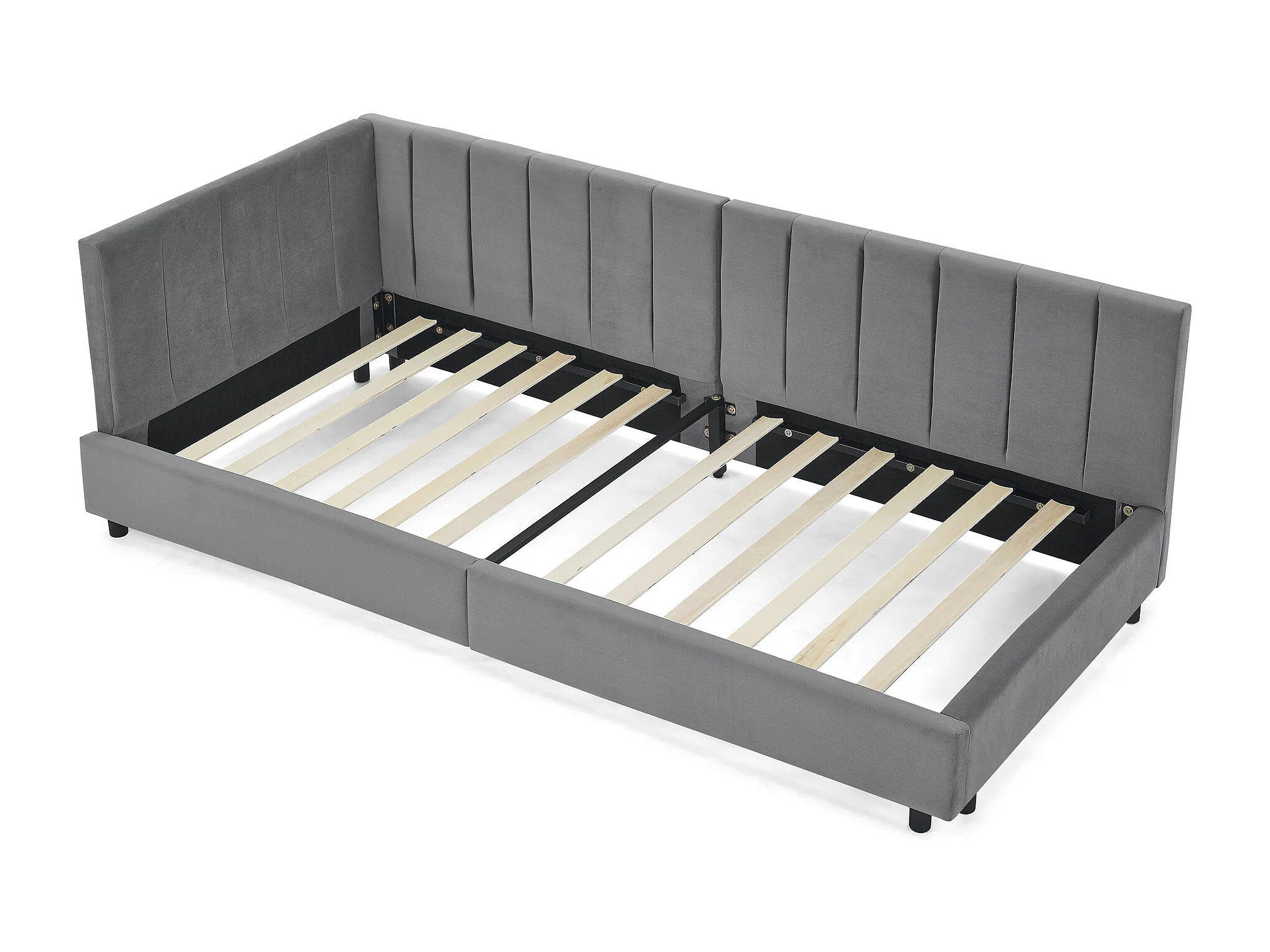 Lit enfant 90 x 200 cm - Lit simple à rayures verticales - velours gris - matelas non inclus