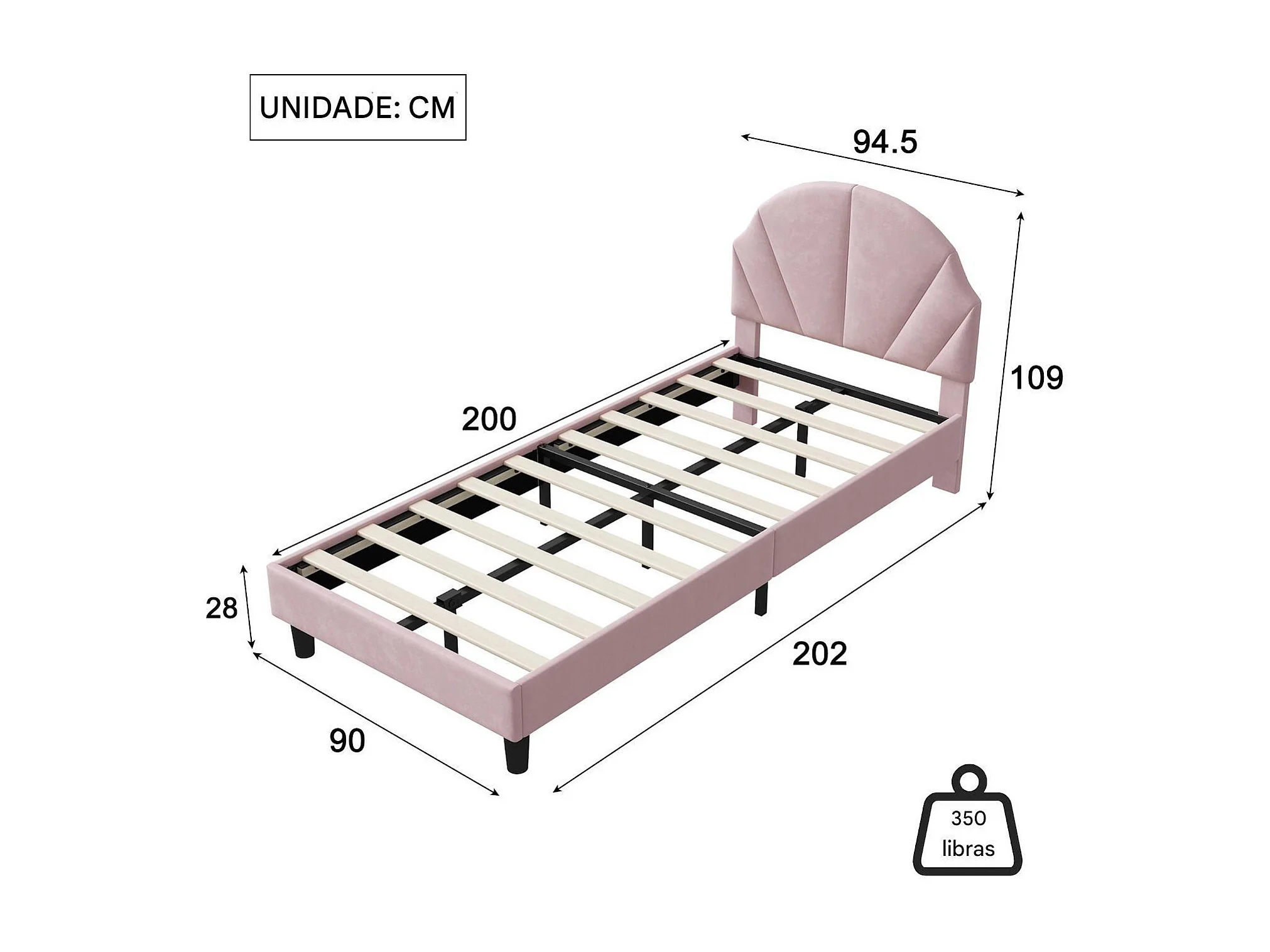Lit enfant 90x190cm, tête de lit réglable, en velours rose.