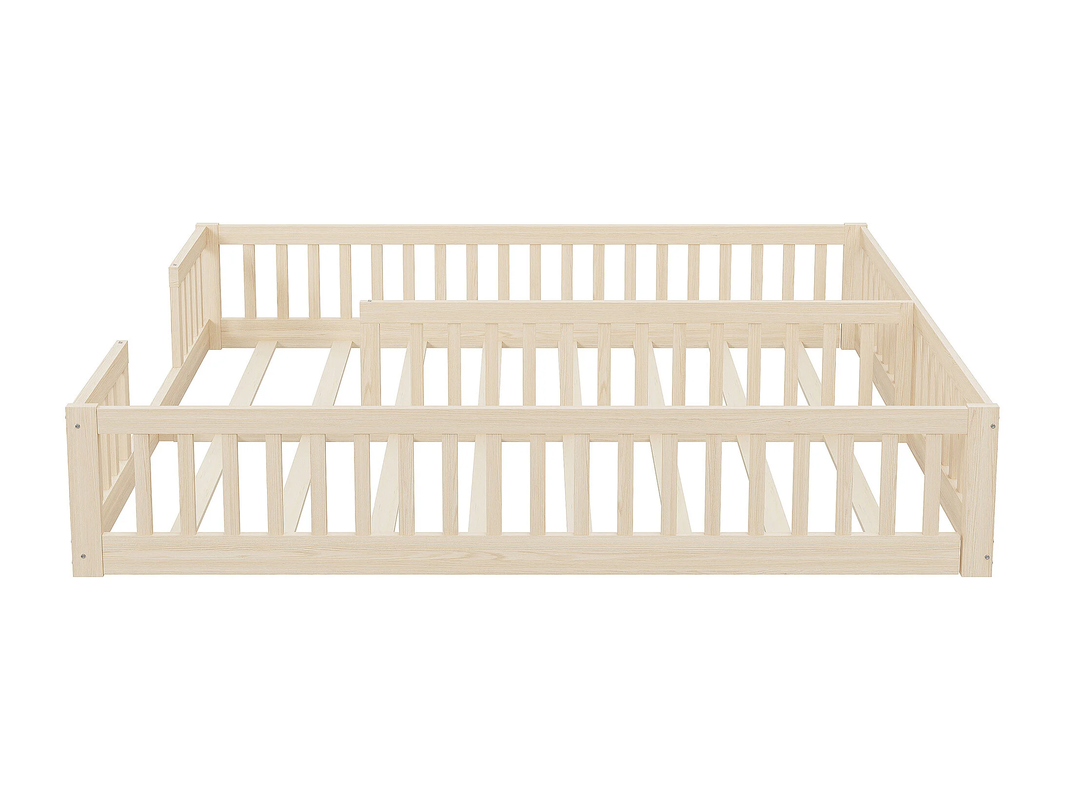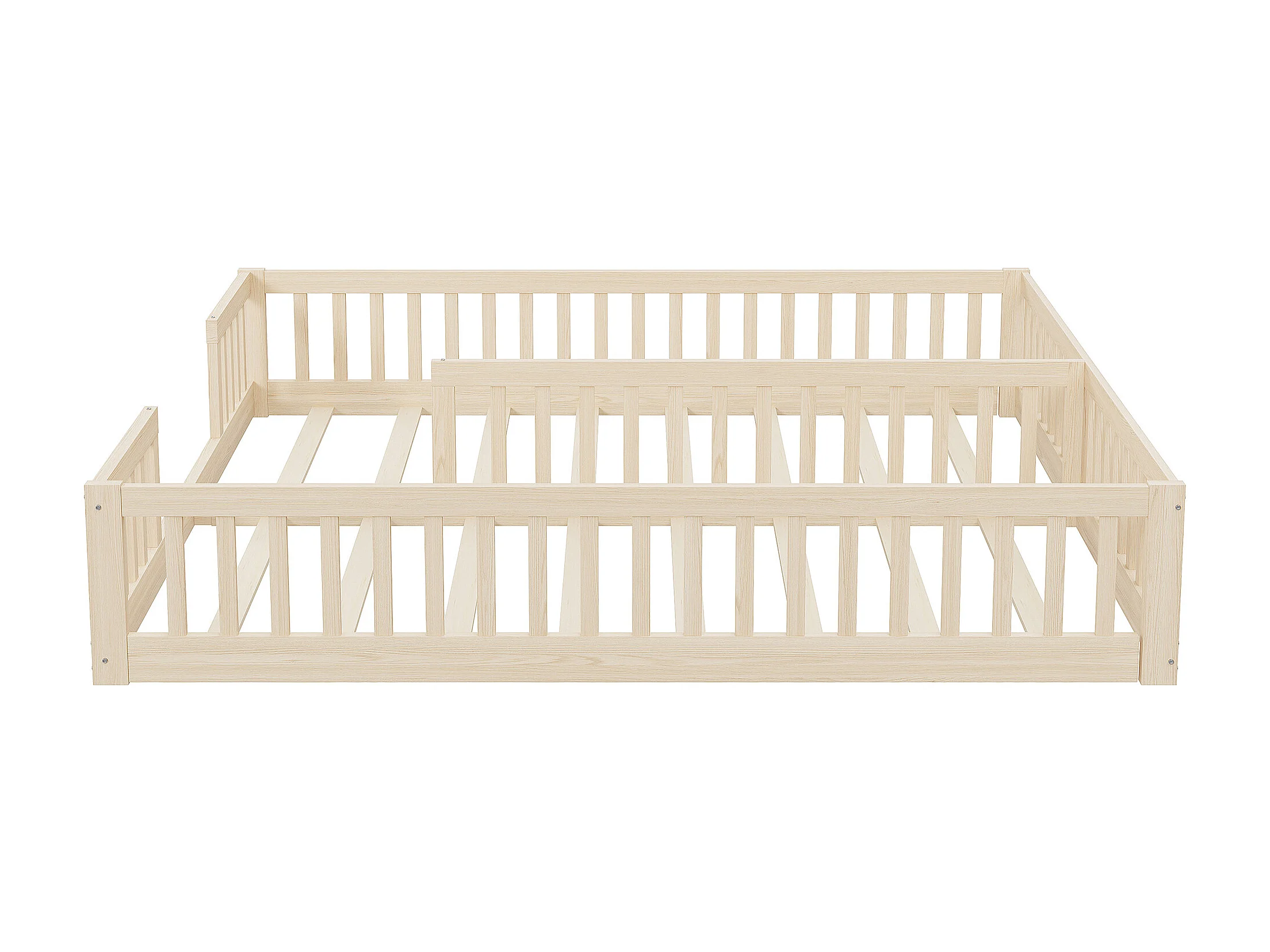 Lit enfant 90x200 cm 2 couchages avec sommier à lattes - Naturel clair