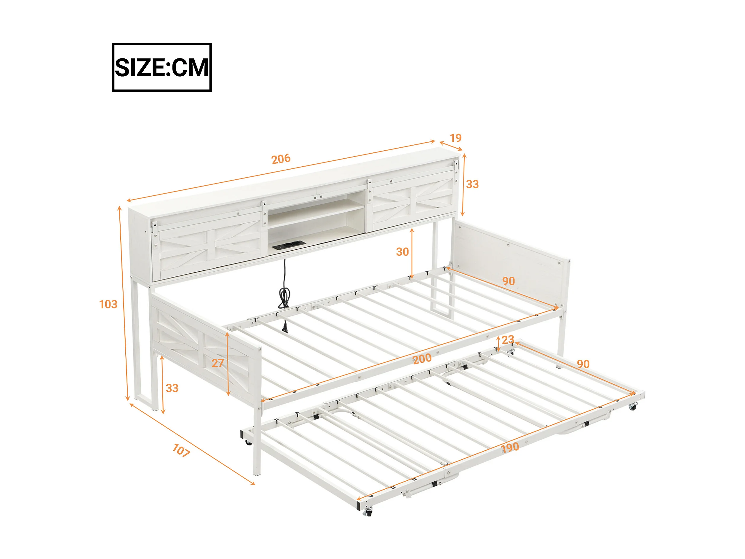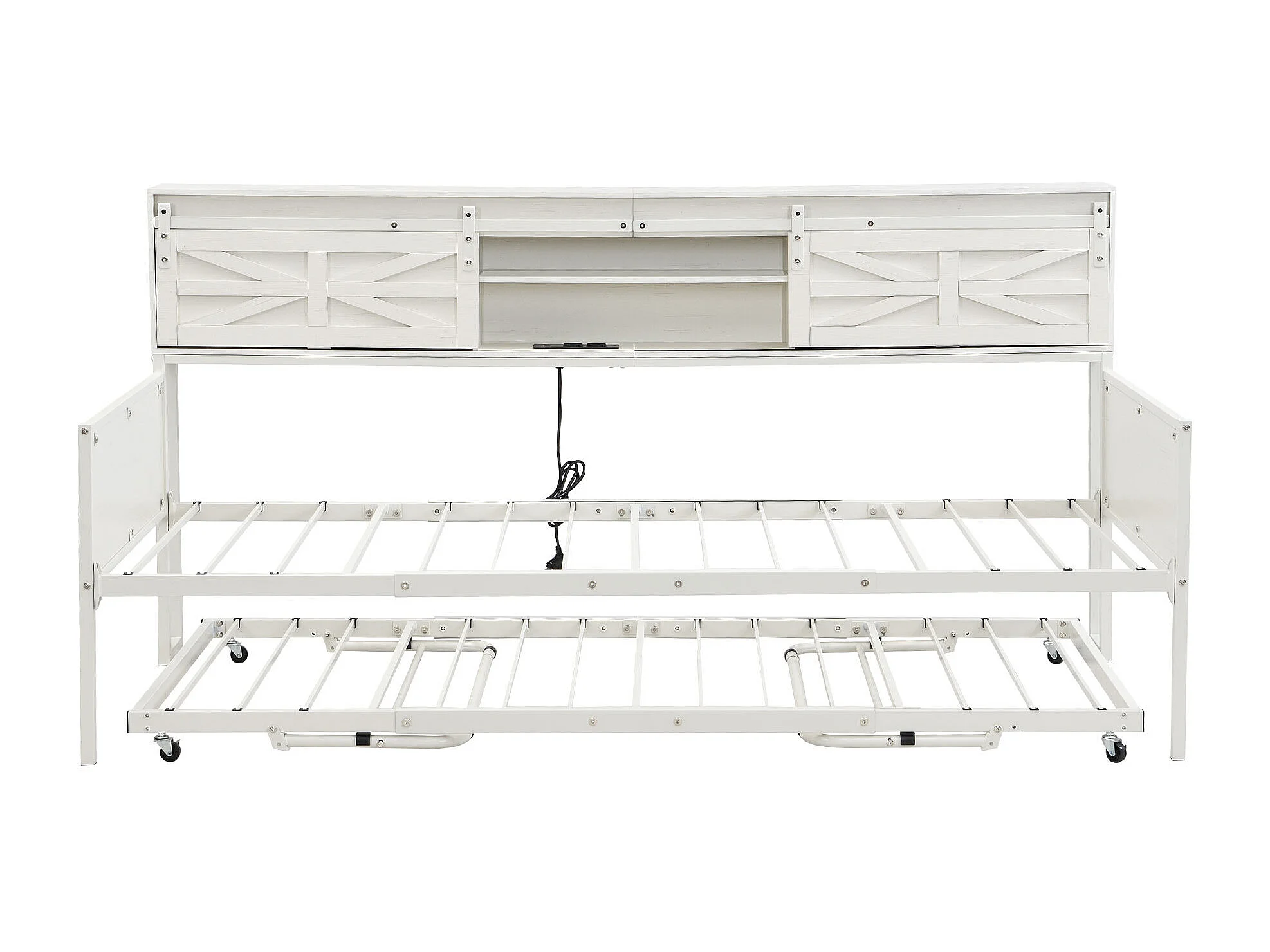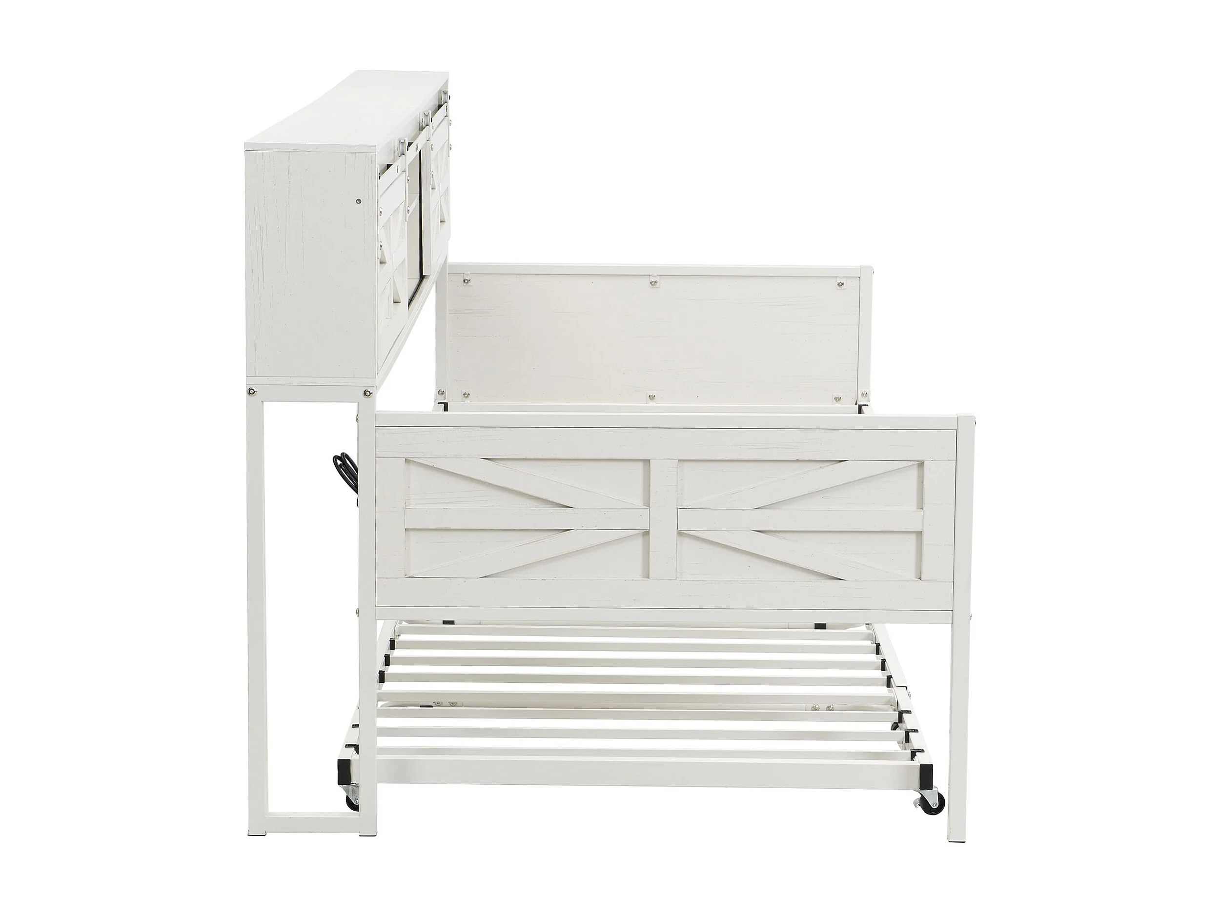 Lit enfant 90x200 cm / 90x190 cm - Lit gigogne avec prise multifonctionnelle et porte coulissante - blanc