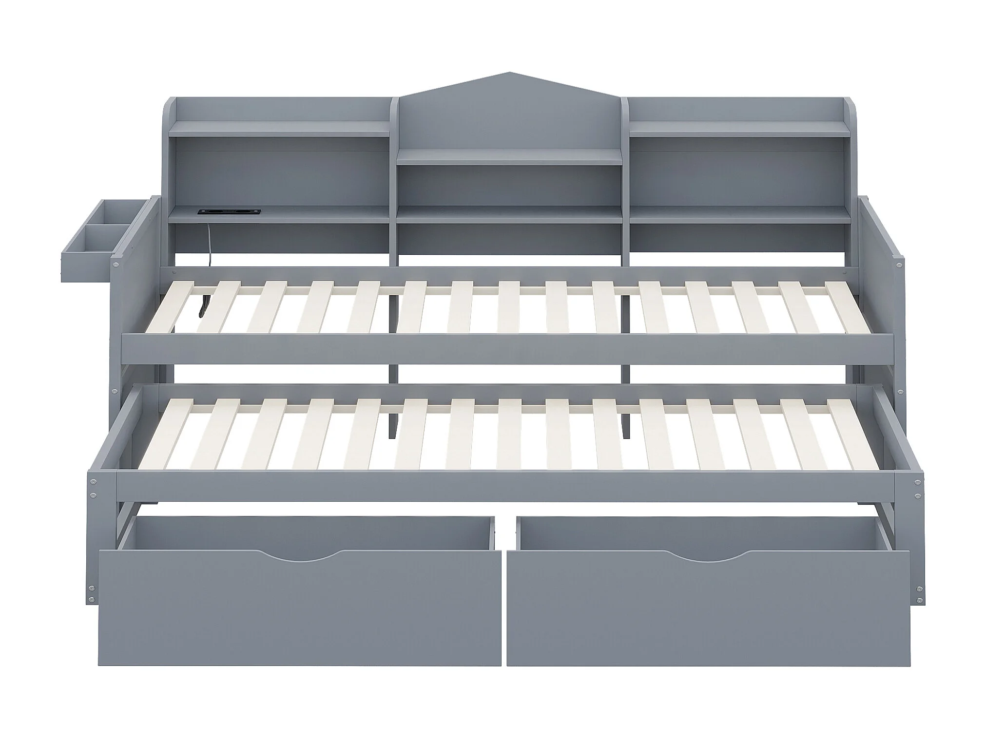 Lit enfant 90x200 cm - avec 2 tiroirs et un grand compartiment de rangement - gris