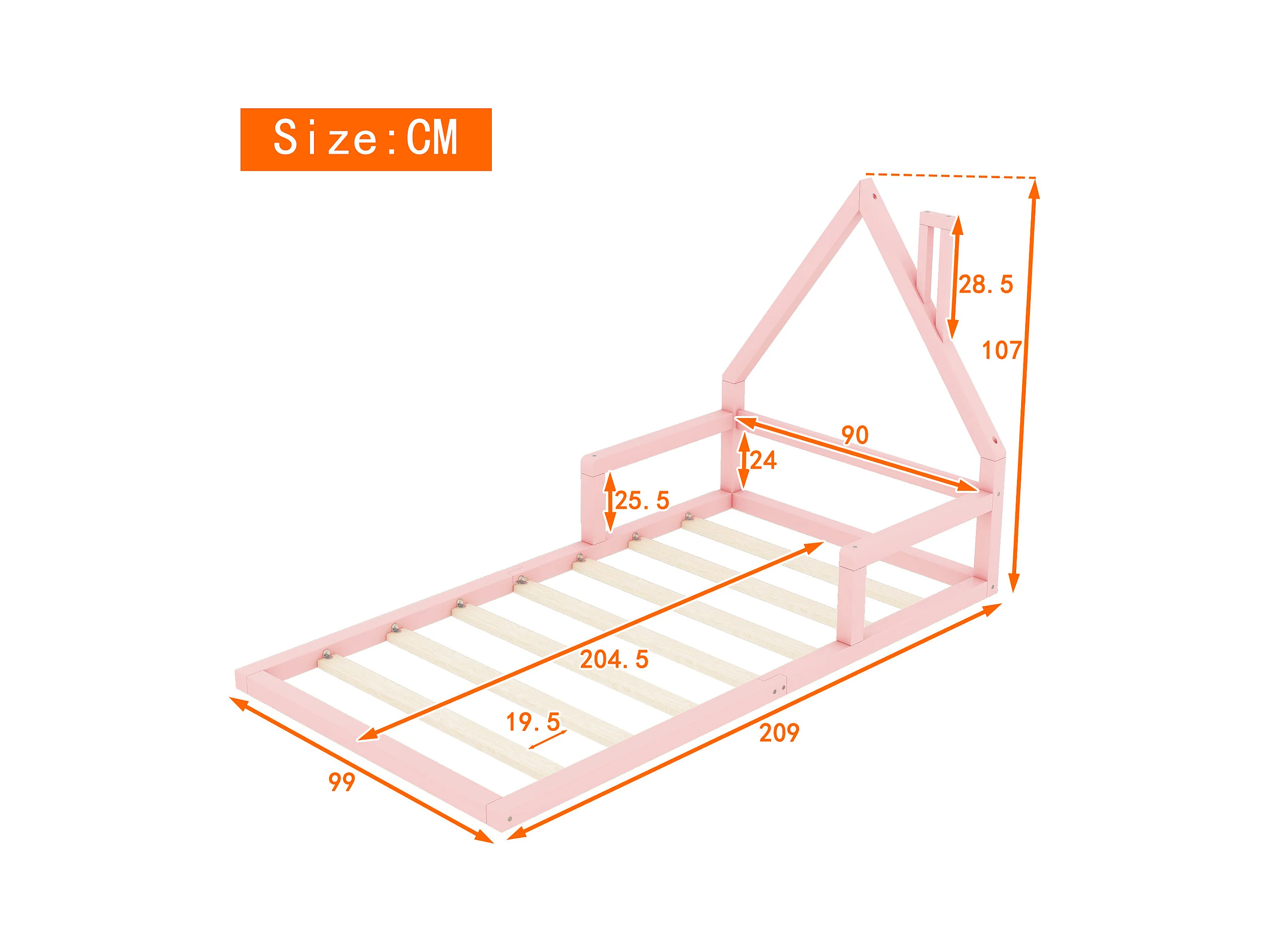 90*200cm Lit d'enfant, lit plat, forme maison, pin massif, forme simple,Rose