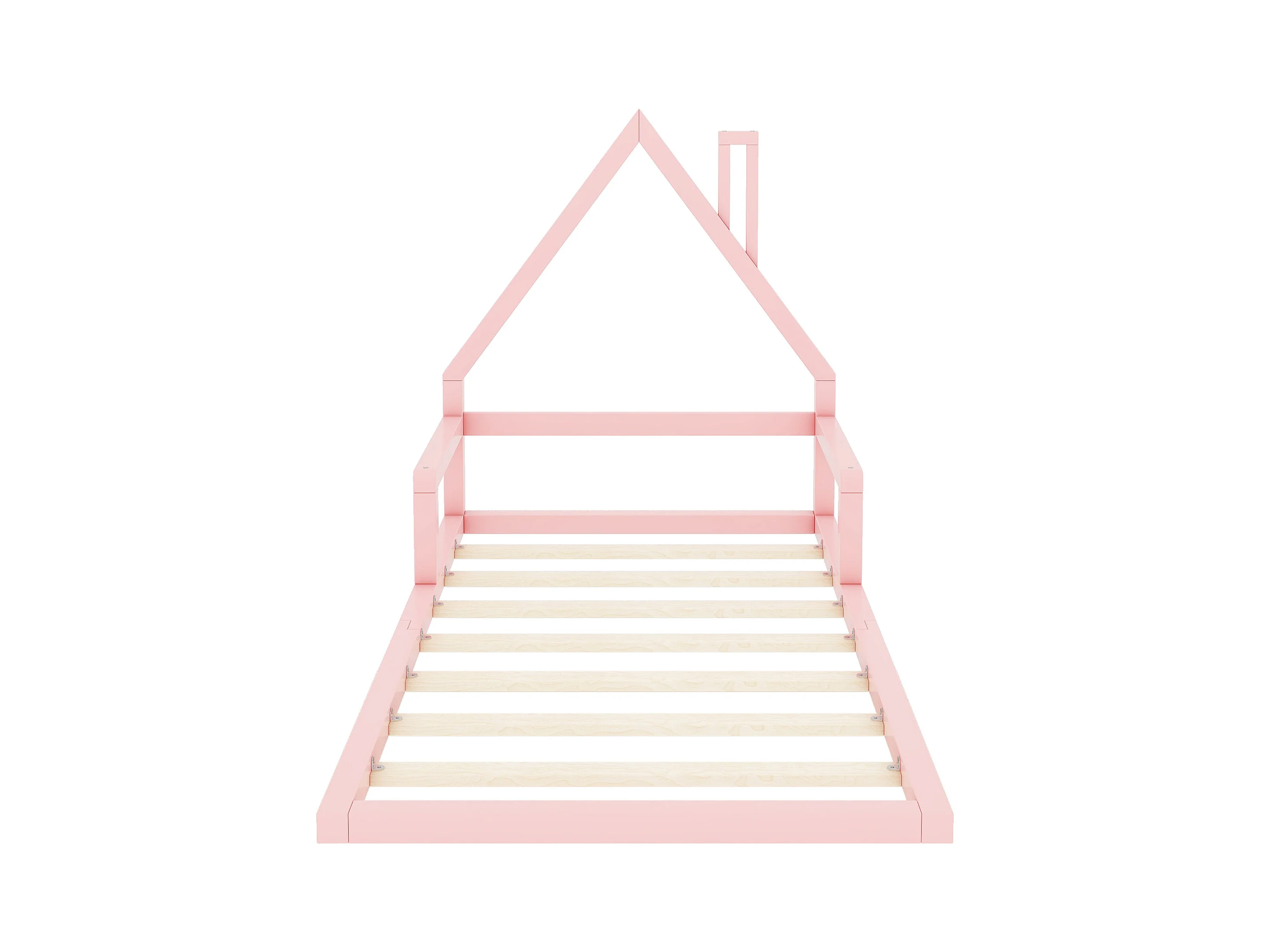 Lit enfant 90x200 cm avec sommier à lattes, forme maison, rose - sans matelas