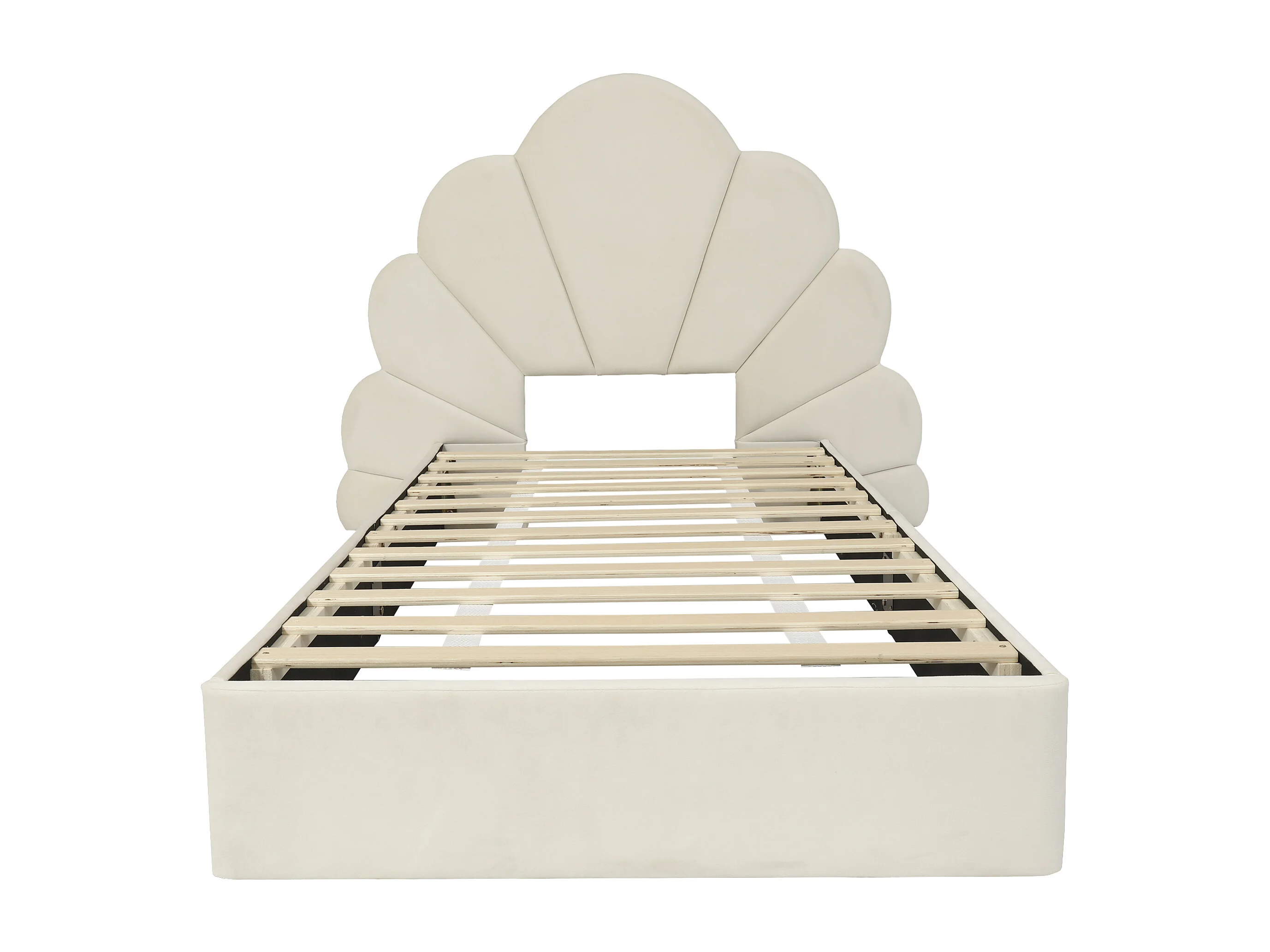 Lit enfant 90x200 cm - avec tête de lit et sommier à lattes - velours beige - sans matelas
