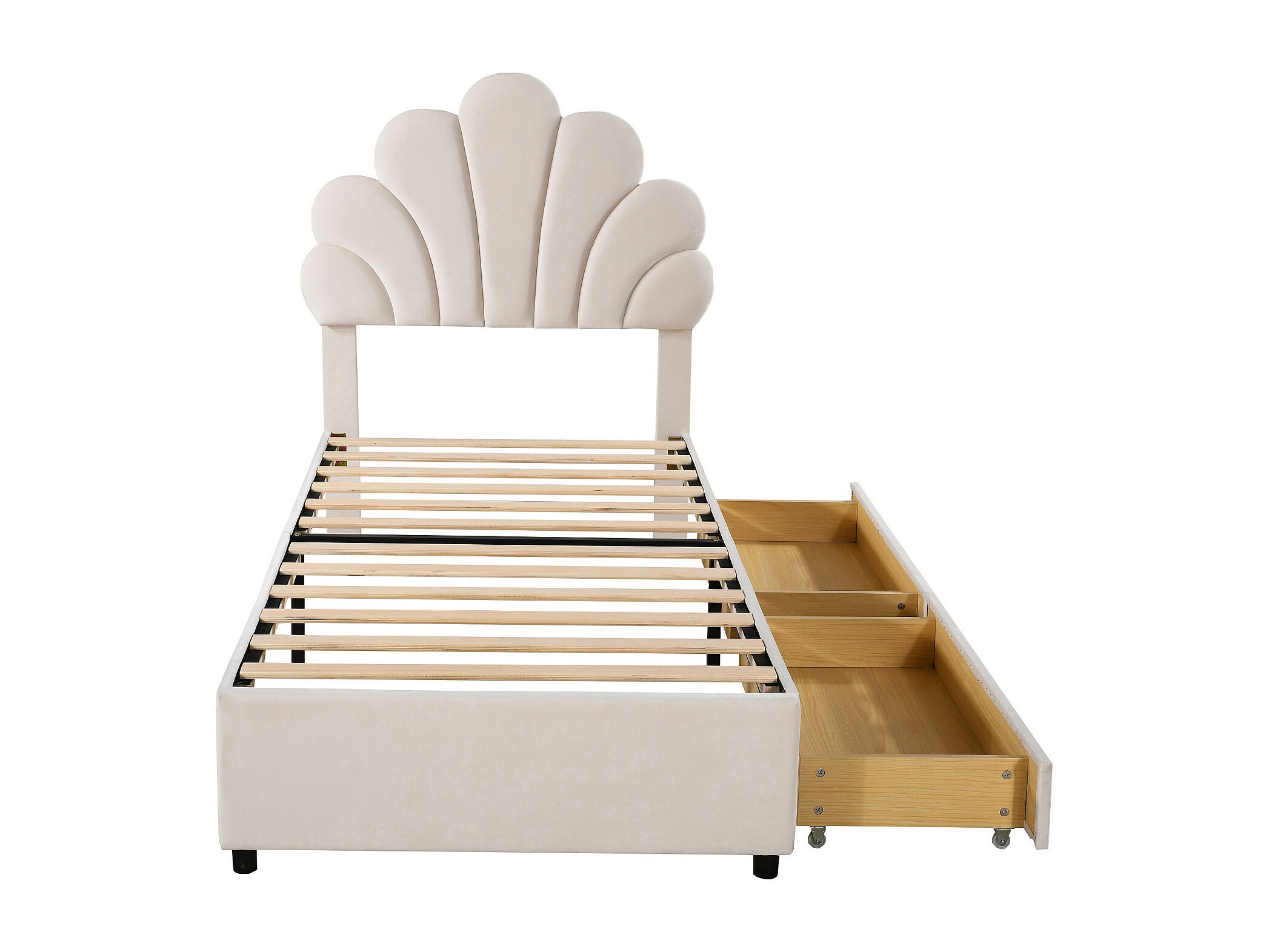 Lit enfant 90x200 cm avec tête de lit fleurie et sommier à lattes, 2 espaces de rangement, idéal pour chambres de filles ou invités