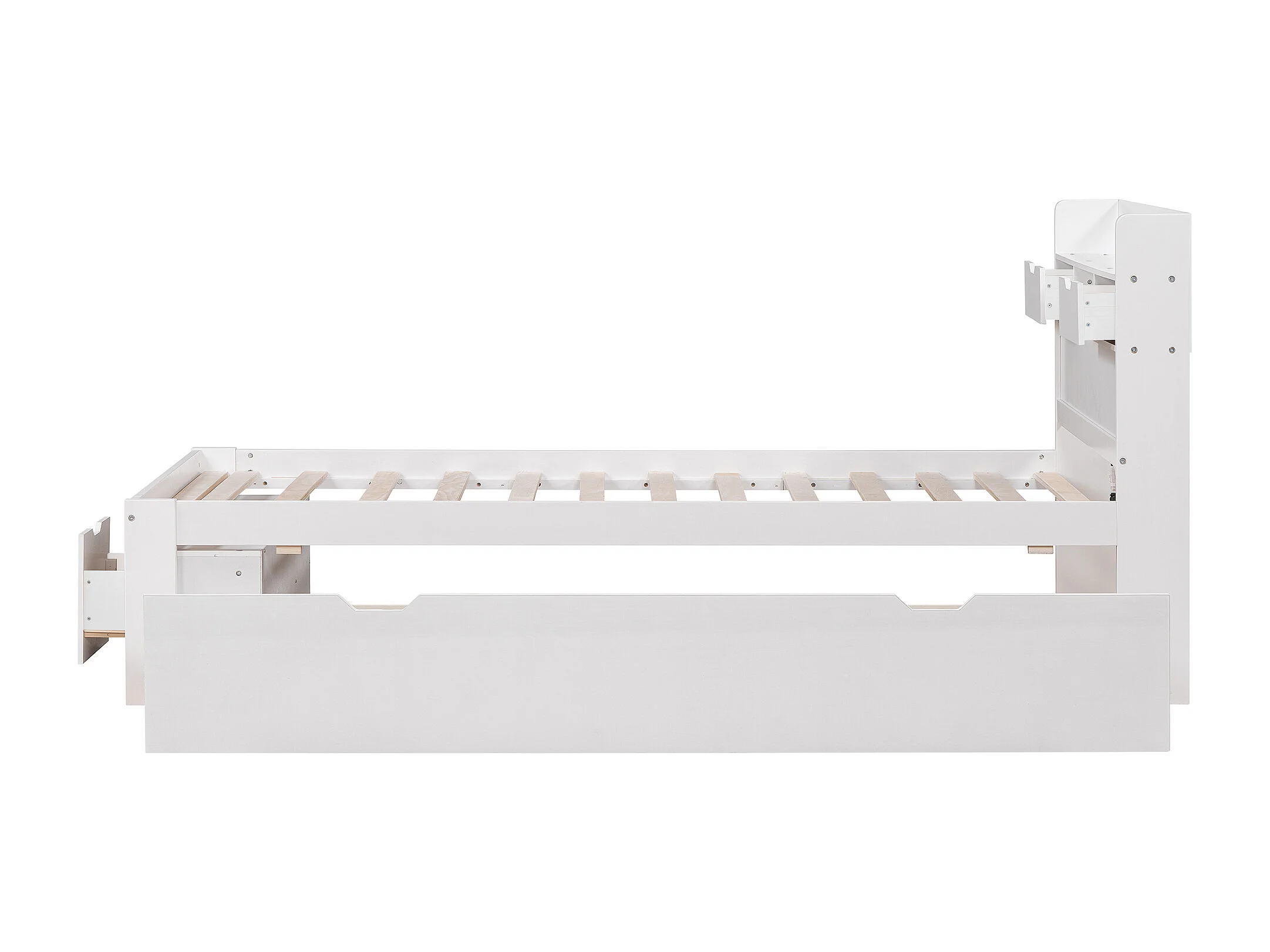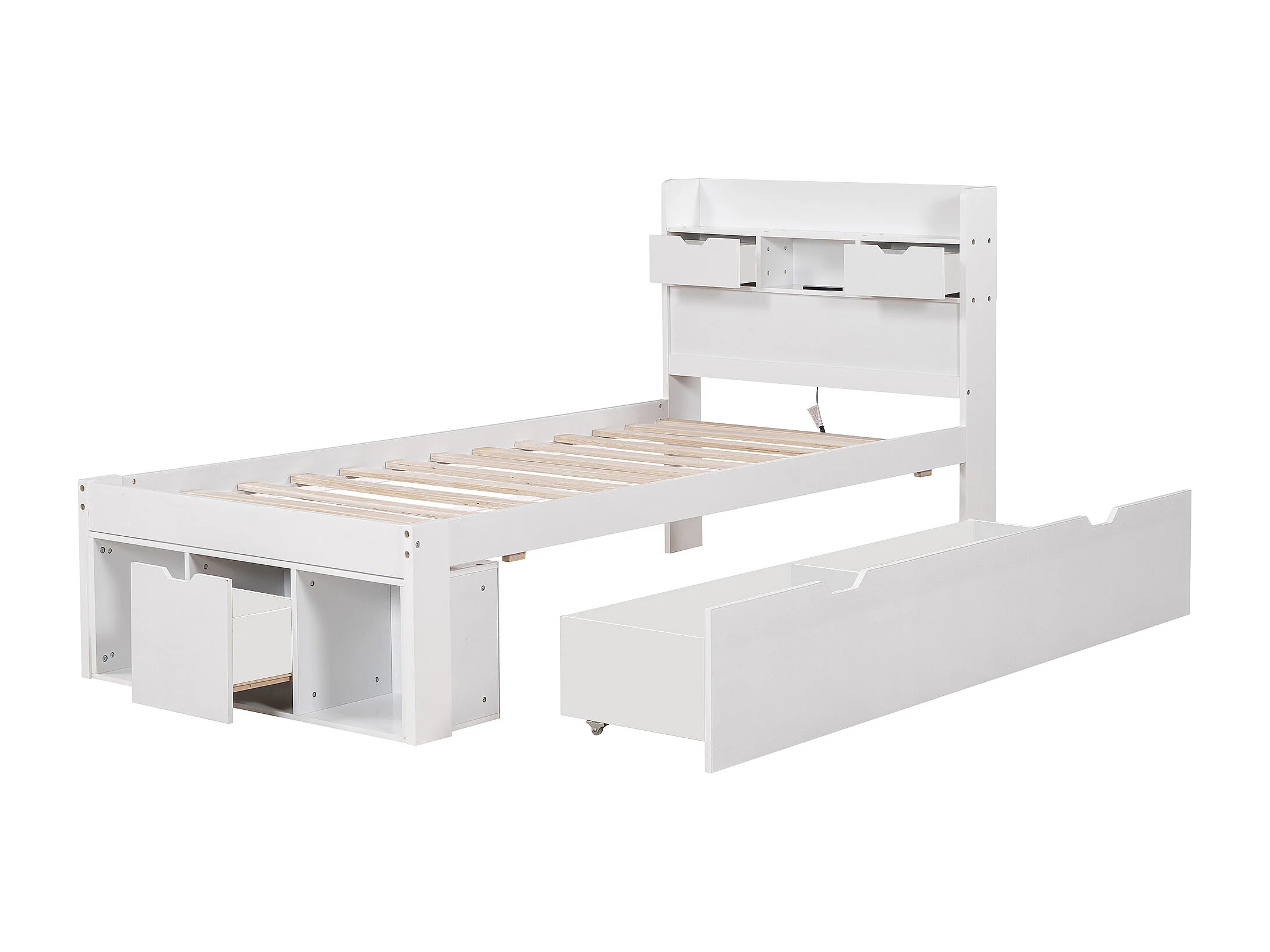 Lit enfant 90x200 cm - avec USB et Type-C, tiroirs, étagères - blanc - sans matelas
