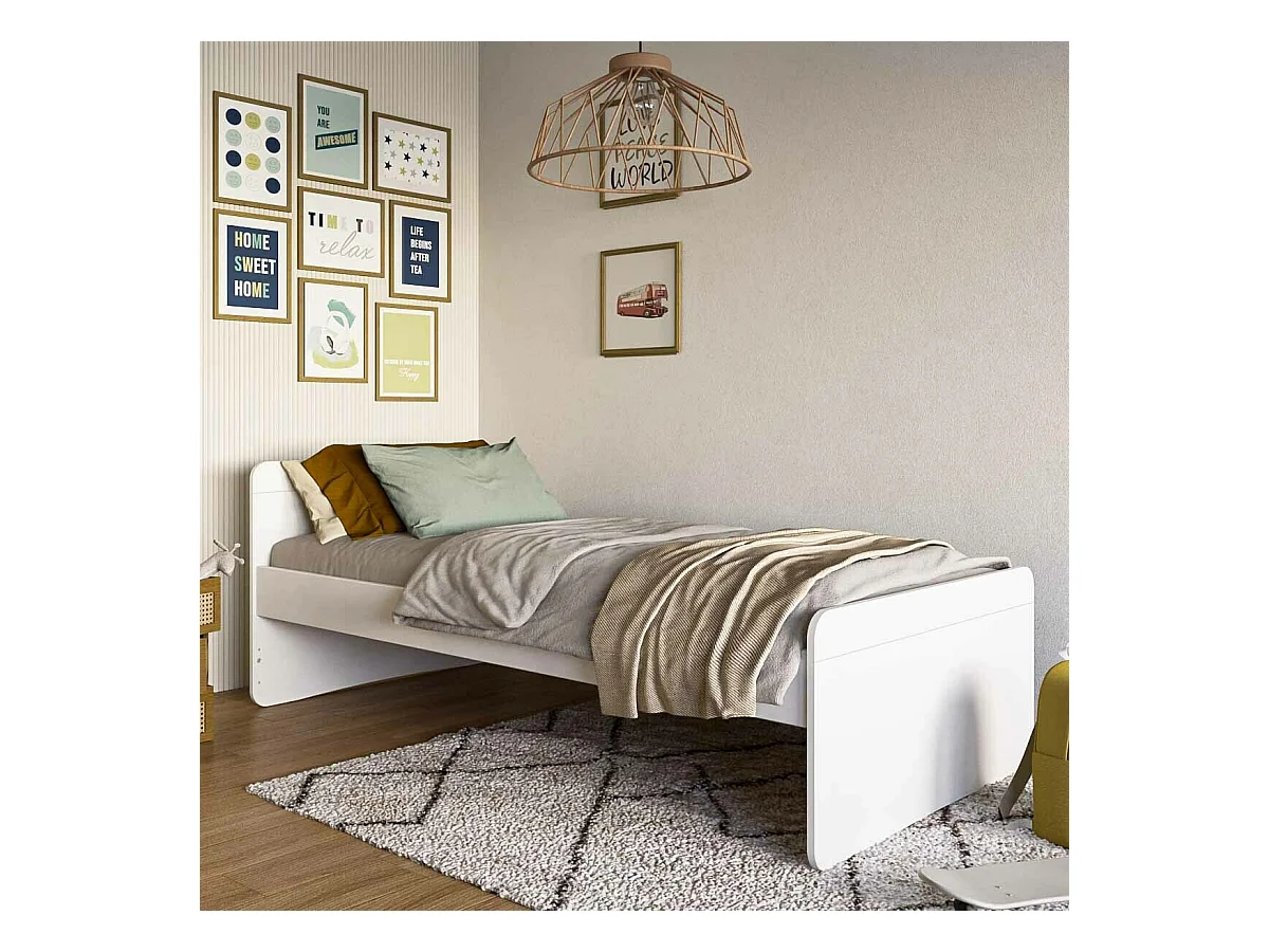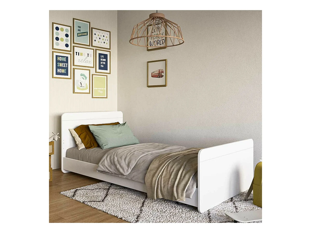 Lit enfant 90x200 cm bois massif blanc LILOW