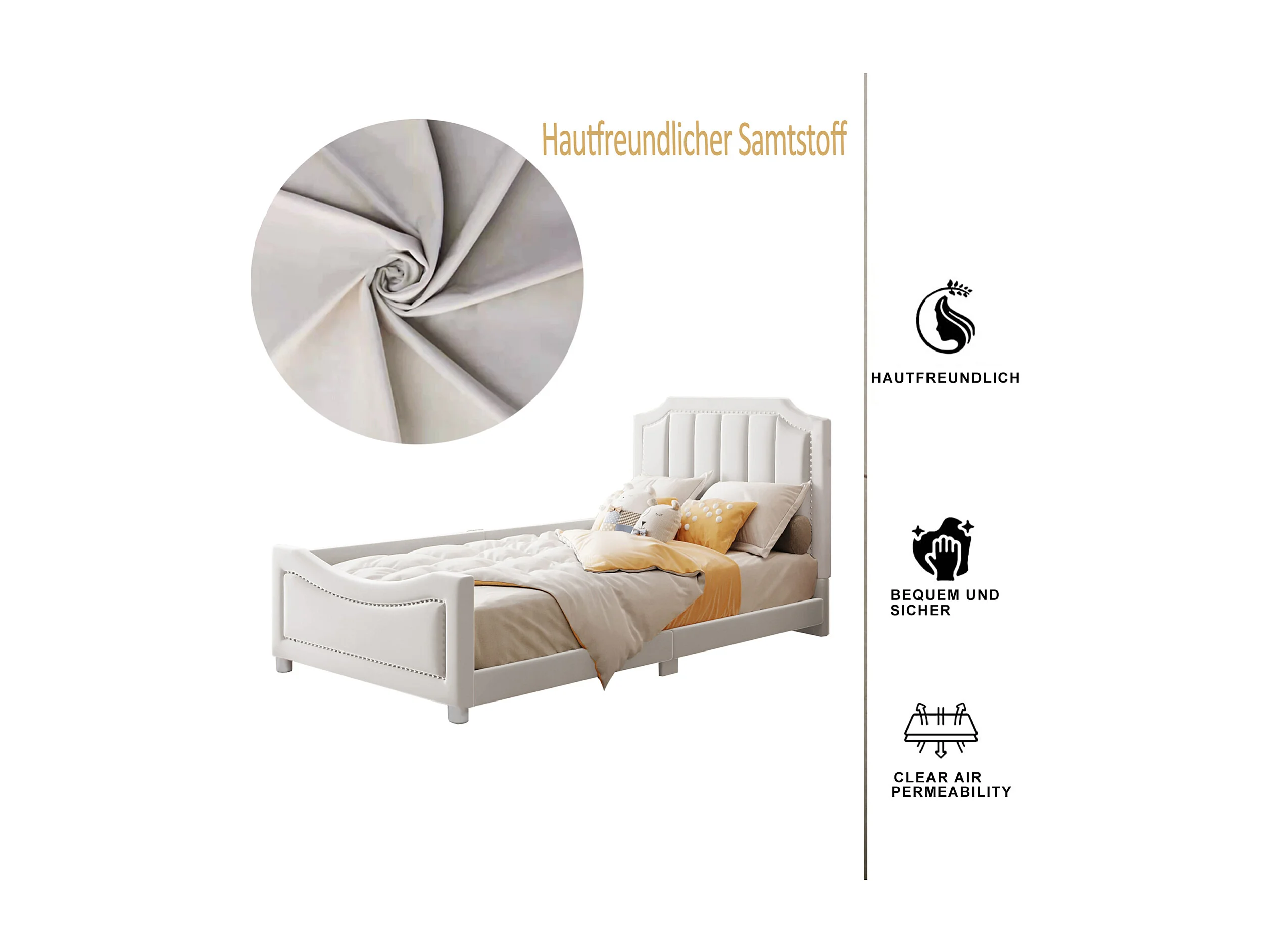Lit Enfant 90x200 cm, Canapé-Lit Multifonction en Flanelle avec Dossier et Accoudoirs, Beige