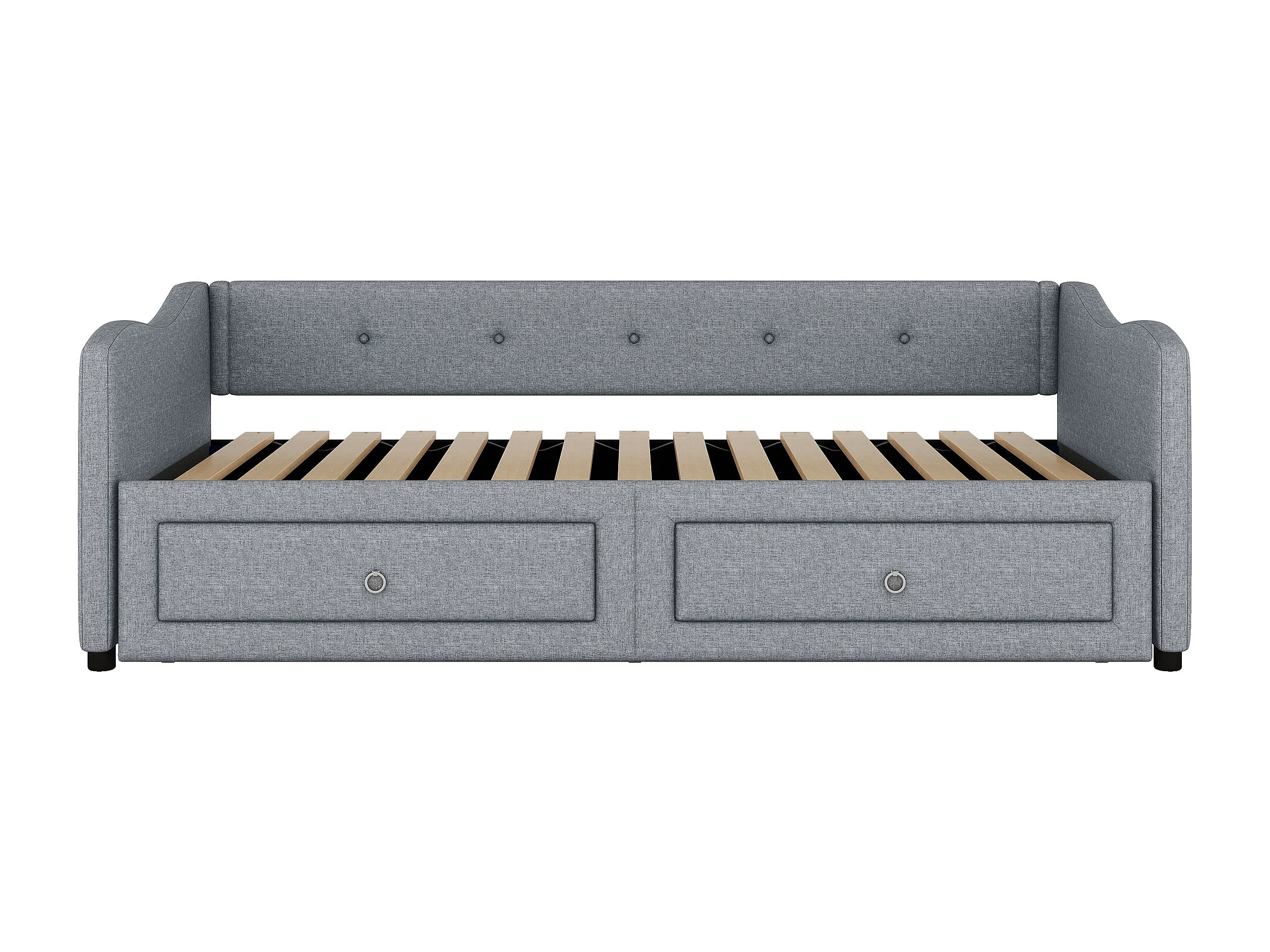 Lit enfant 90x200 cm convertible en lit adulte 180x200cm avec 2 tiroirs de rangement, lin, sans matelas, gris
