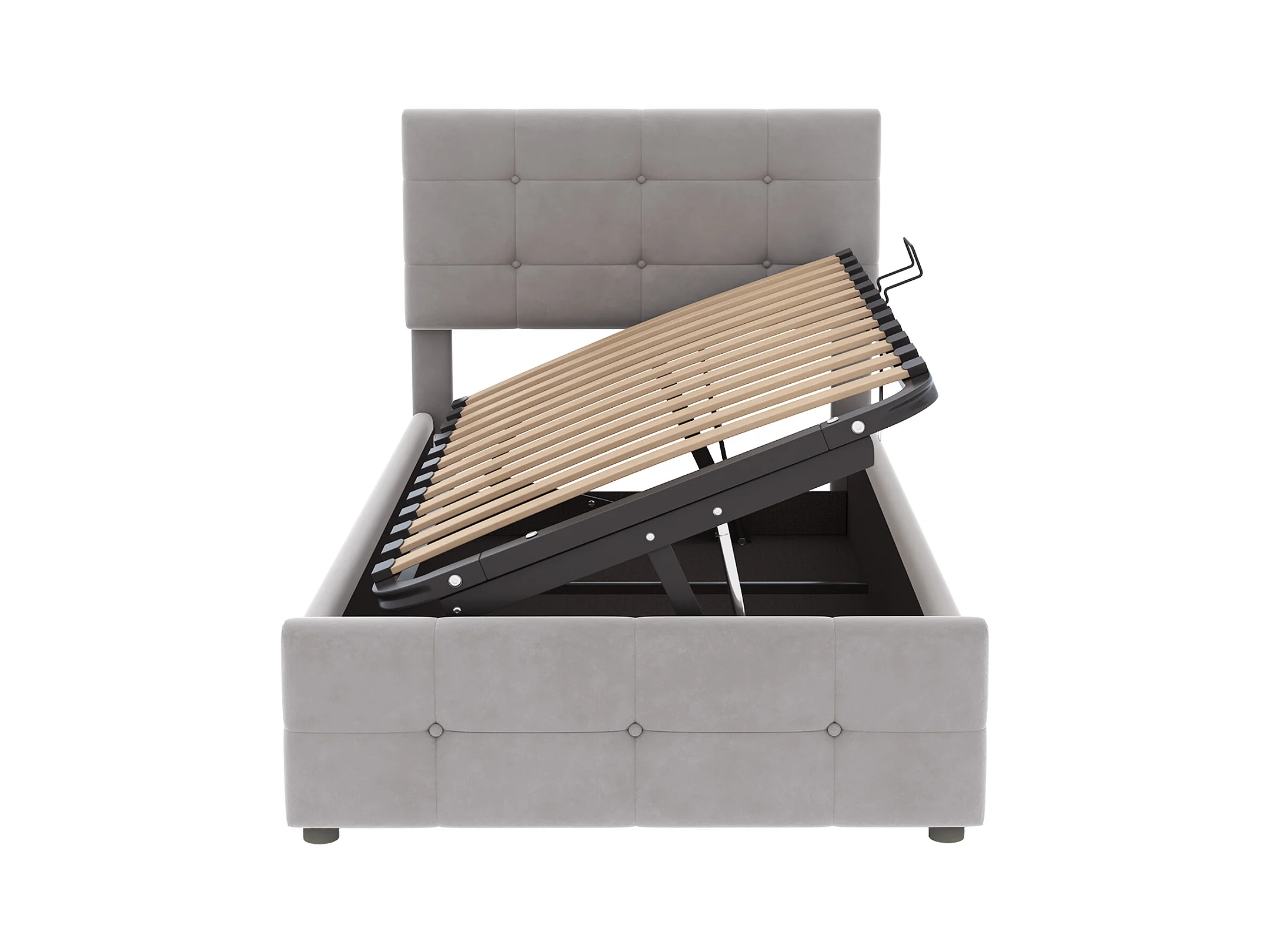 Lit enfant 90x200 cm, lit rembourré avec espace de rangement, tête de lit réglable, velours gris