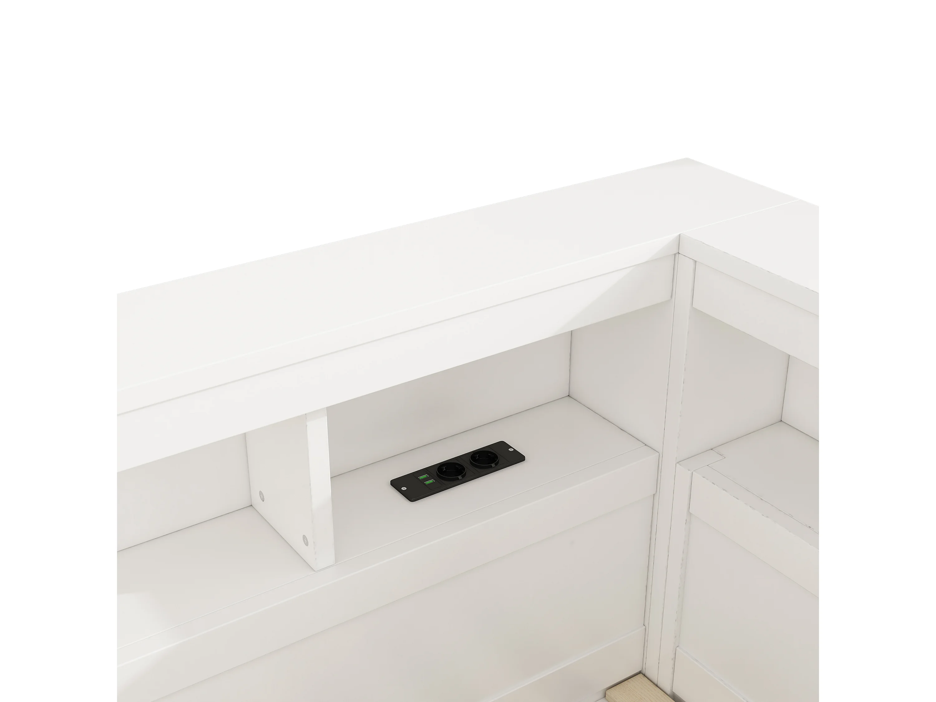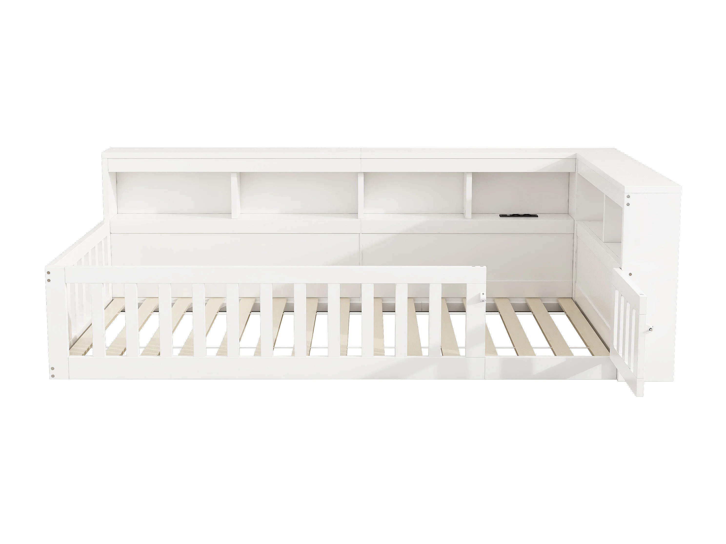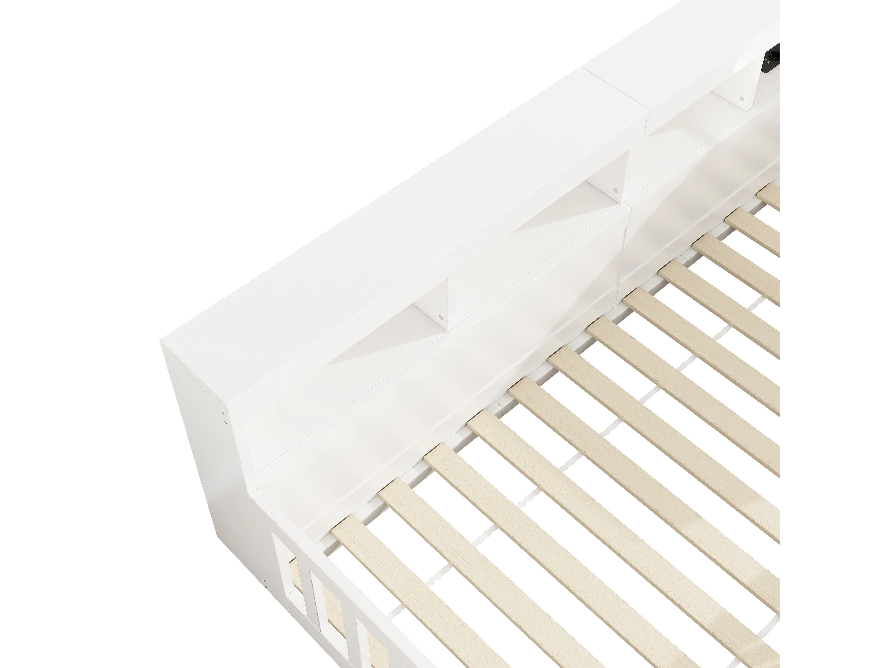 Lit enfant 90x200 cm - Lit simple avec prise USB et prises, étagère de rangement - blanc - sans matelas