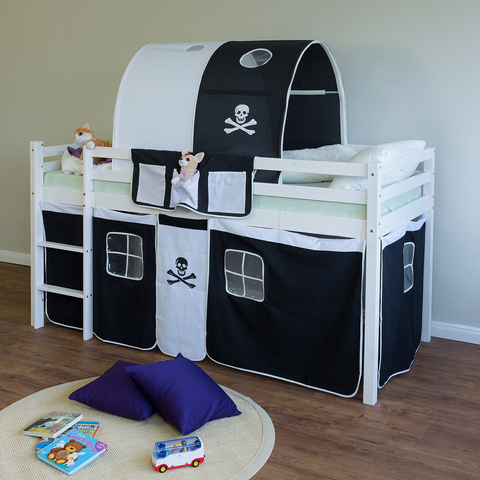 Lit enfant 90x200 cm noir lit mezzanine pirate