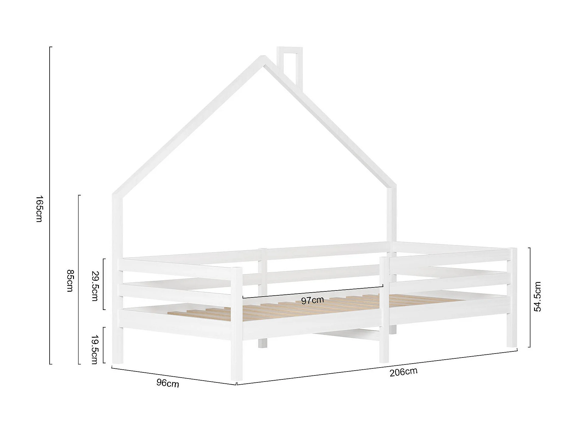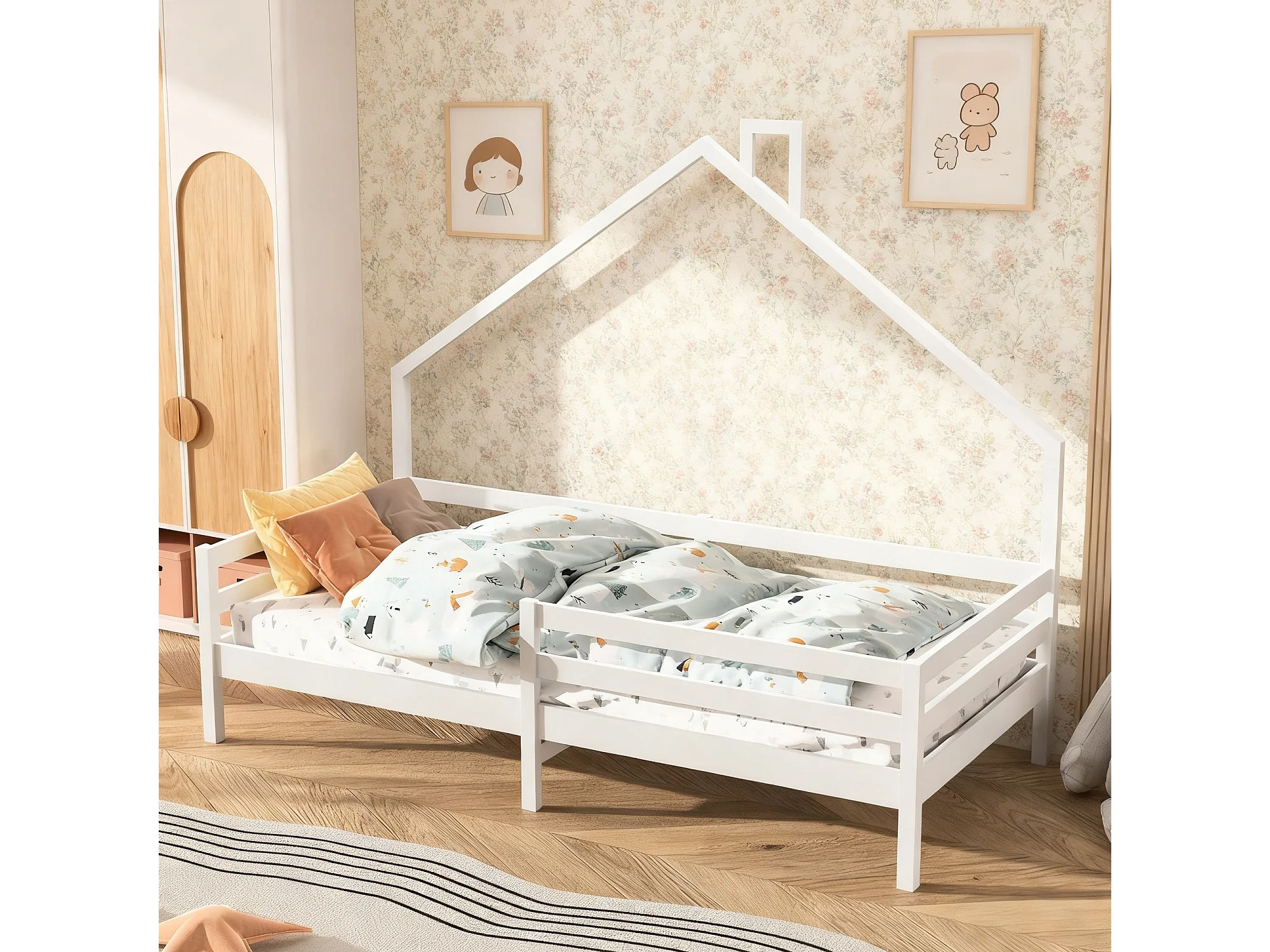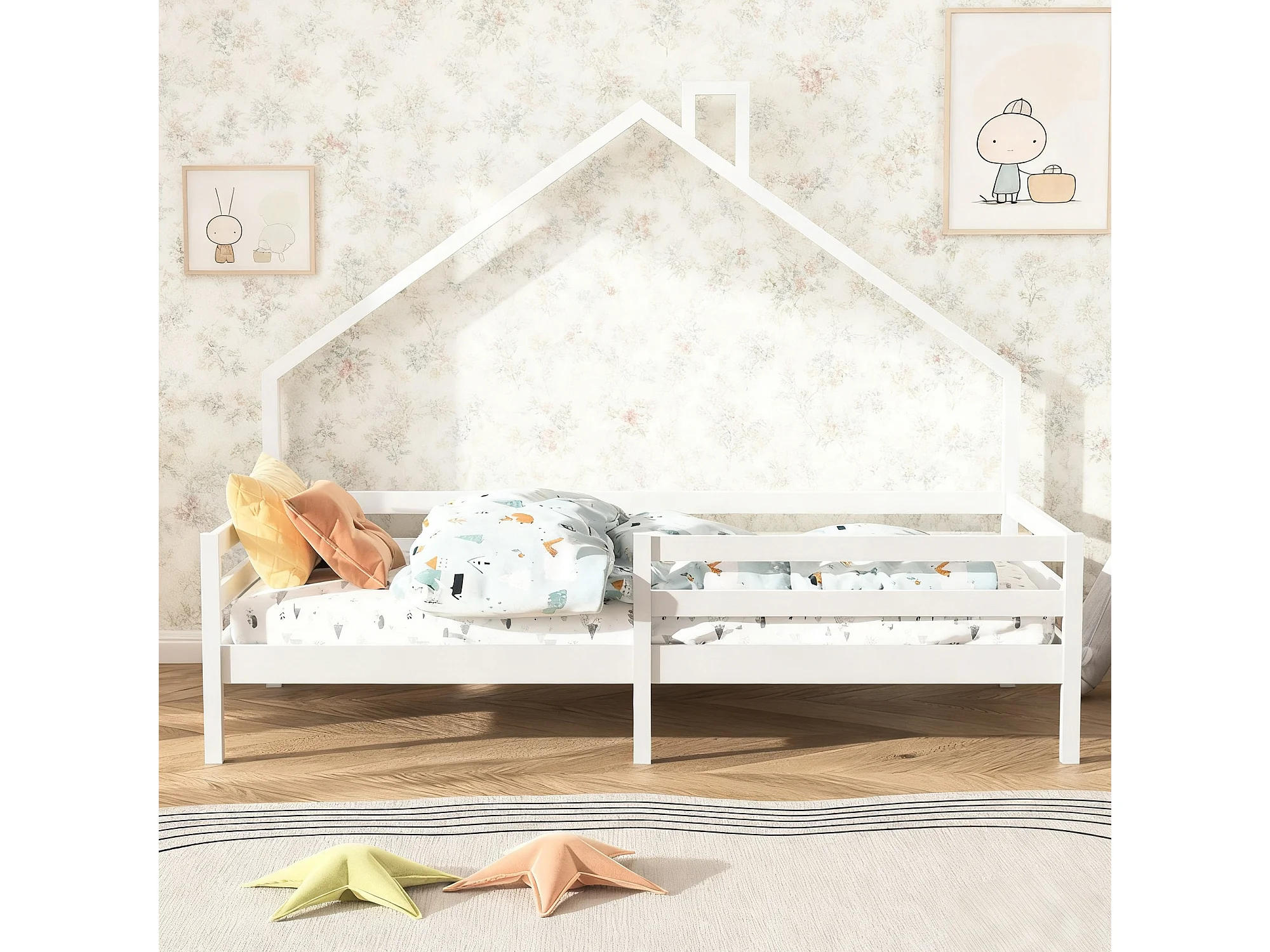 lit enfant 90x200 Conception Montessori, lit d'enfant 90x200 cm avec barrière et sommier à latte, lit simple 90x200 cm en bois - blanc