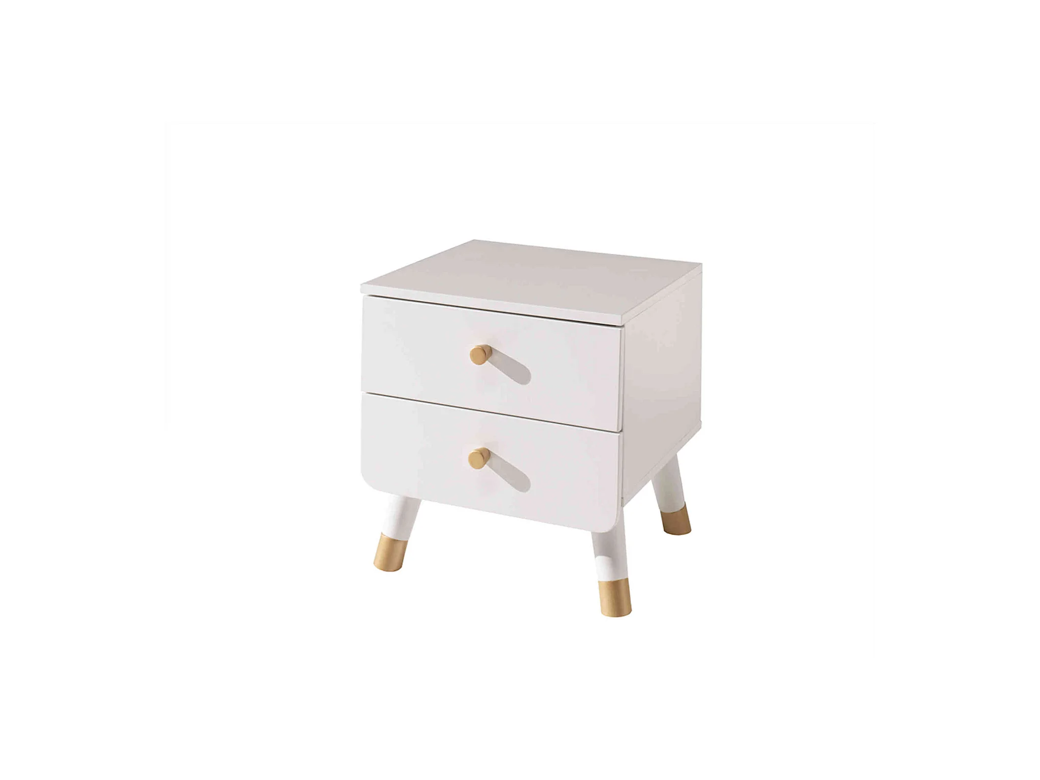 Lit enfant 90x200 en bois massif blanc + chevet enfant blanc 2 tiroirs - CB2031