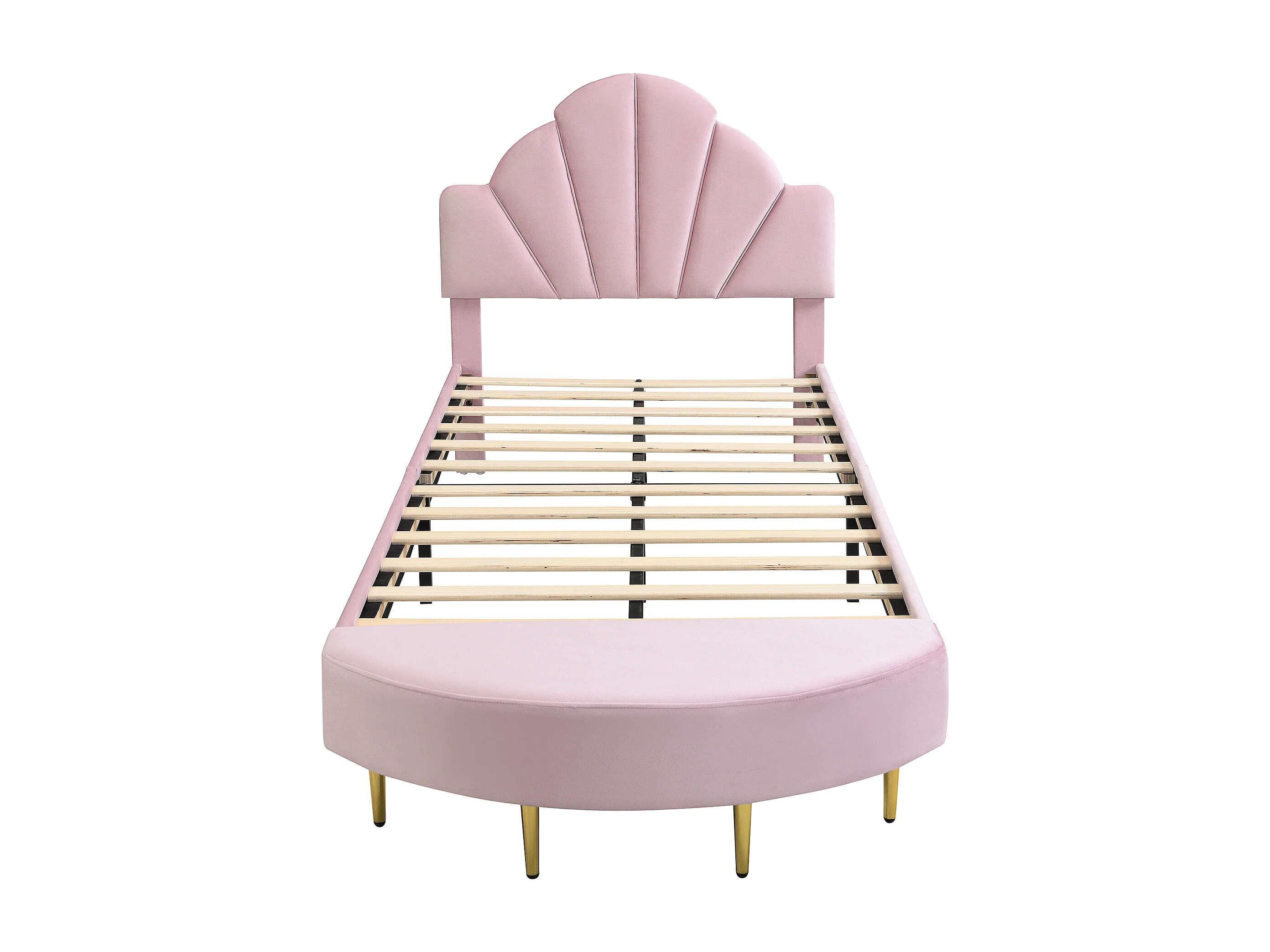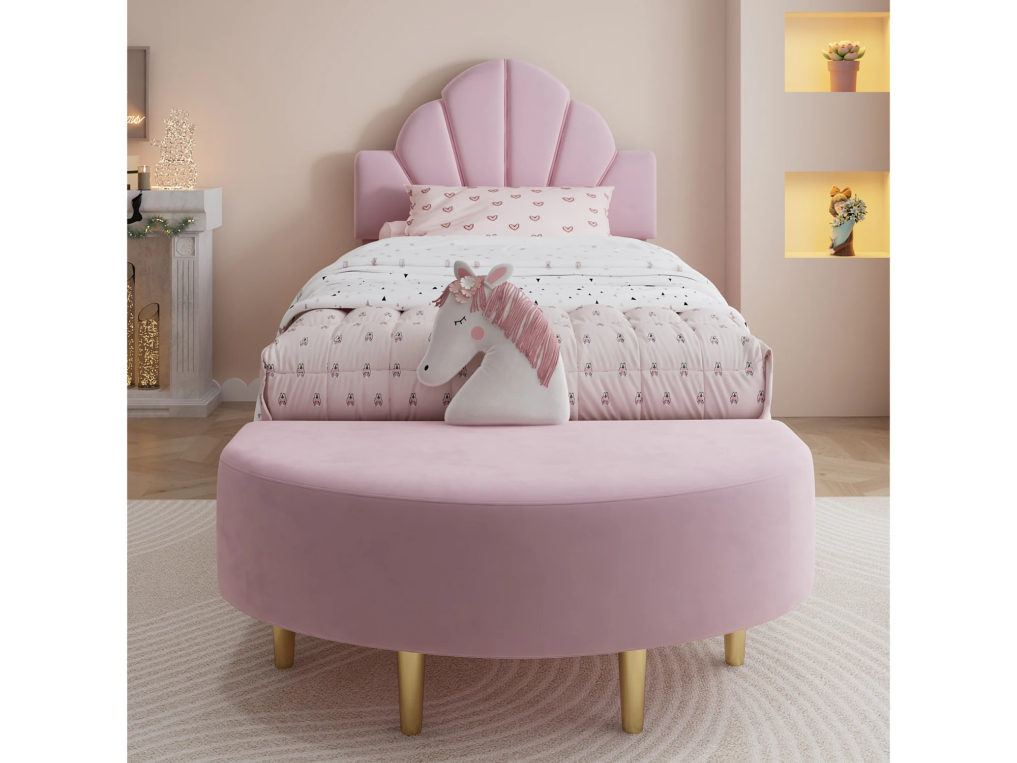 Lit enfant 90x200cm avec banc - Lit capitonné en velours - Rose