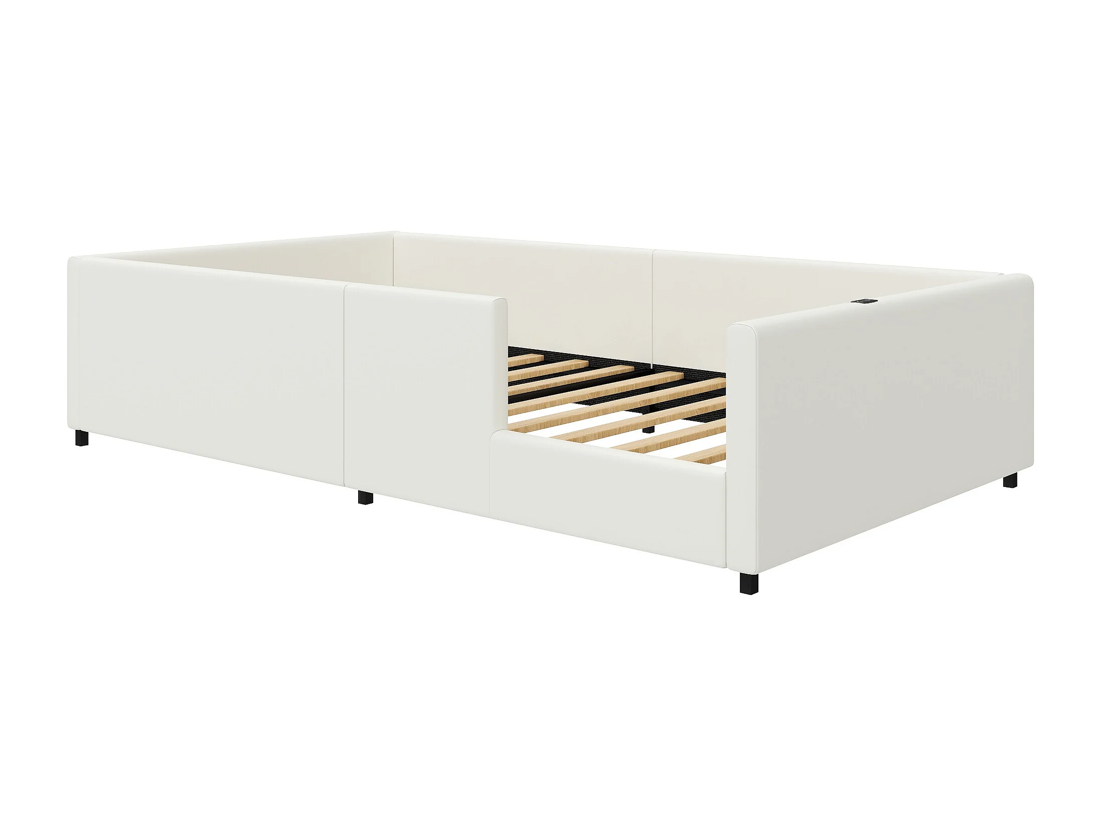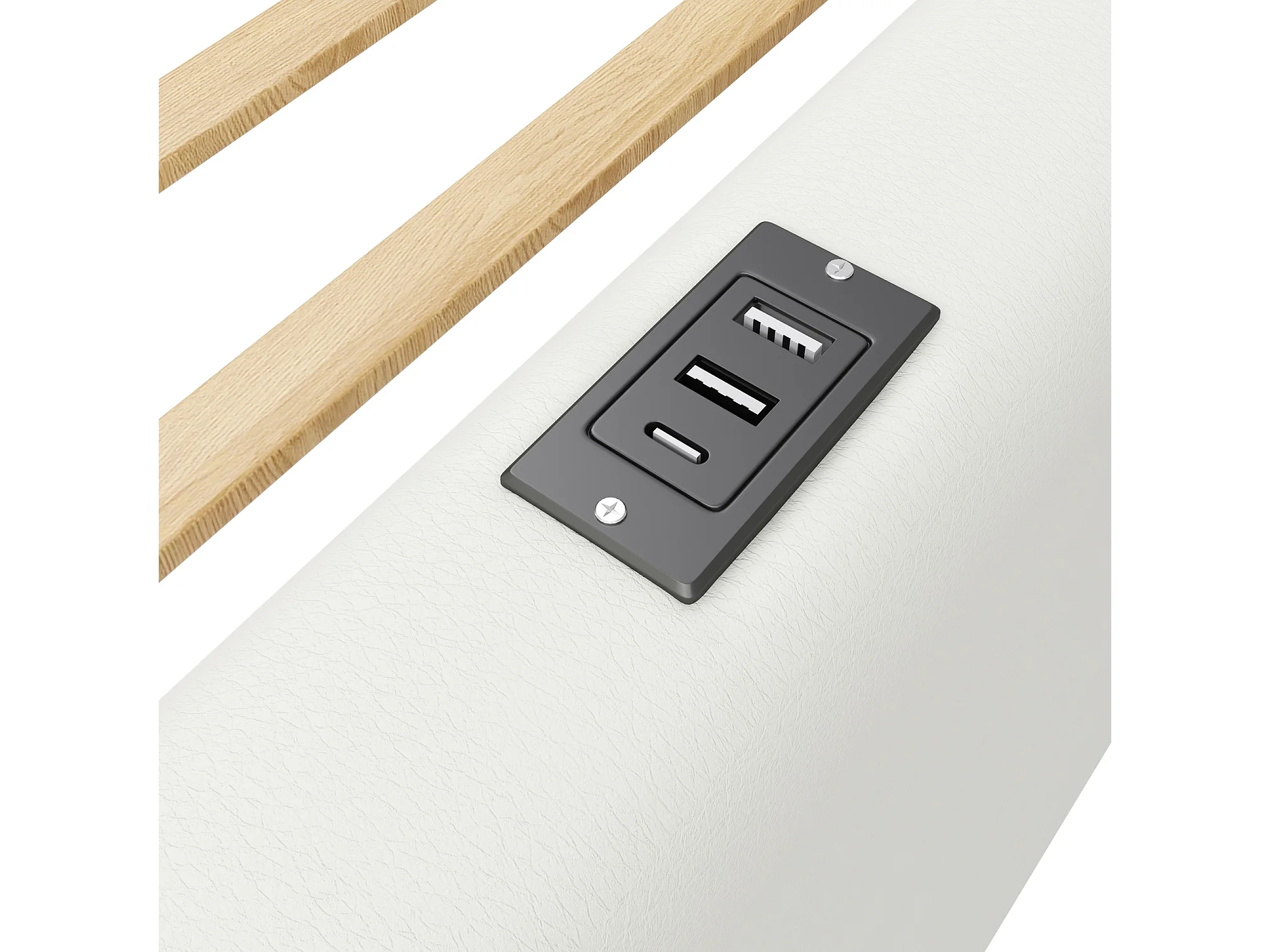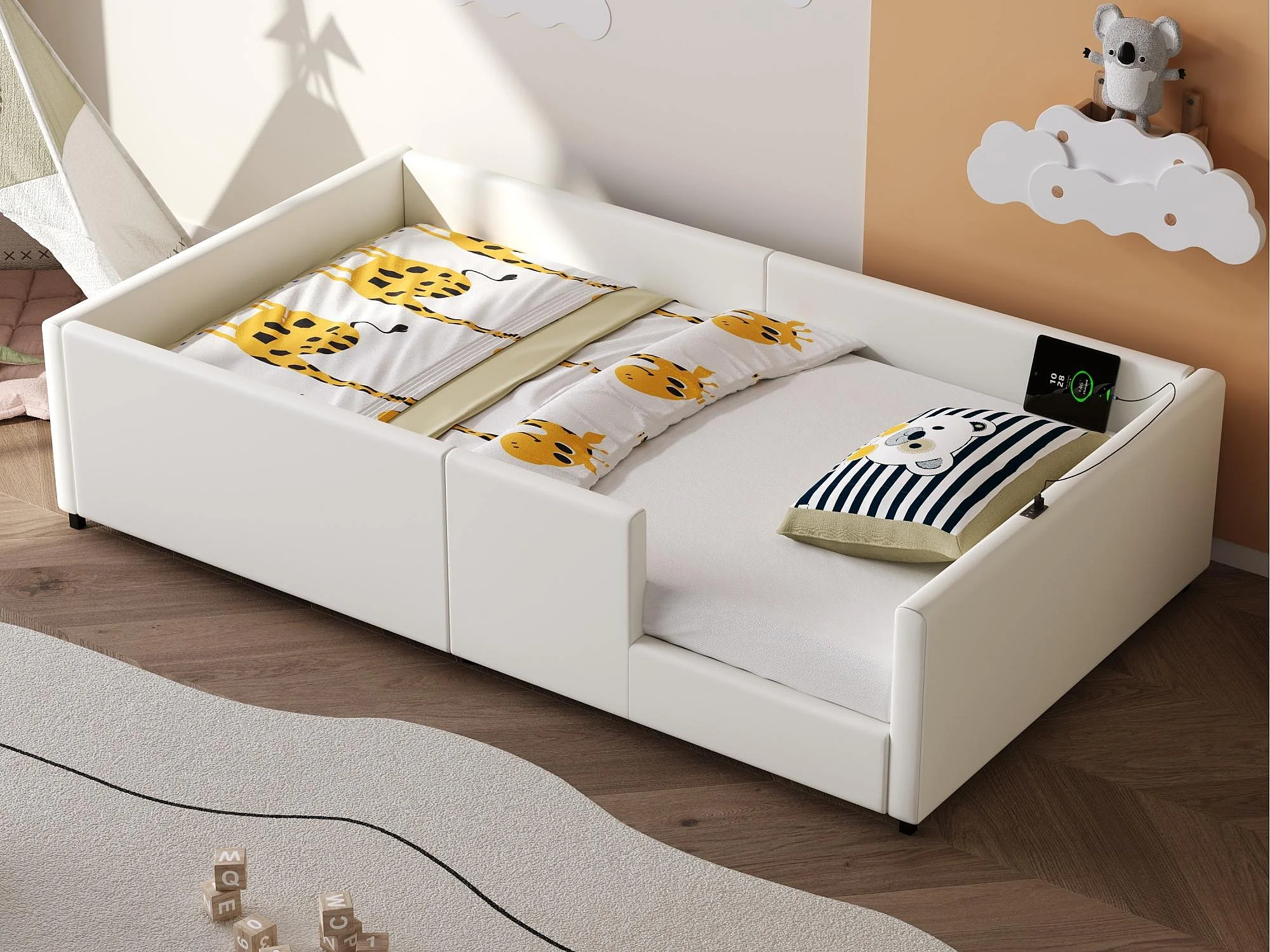 Lit enfant 90x200cm - avec barrières de sécurité - avec ports USB et Type-C - MDF + PU - Blanc (matelas non inclus)