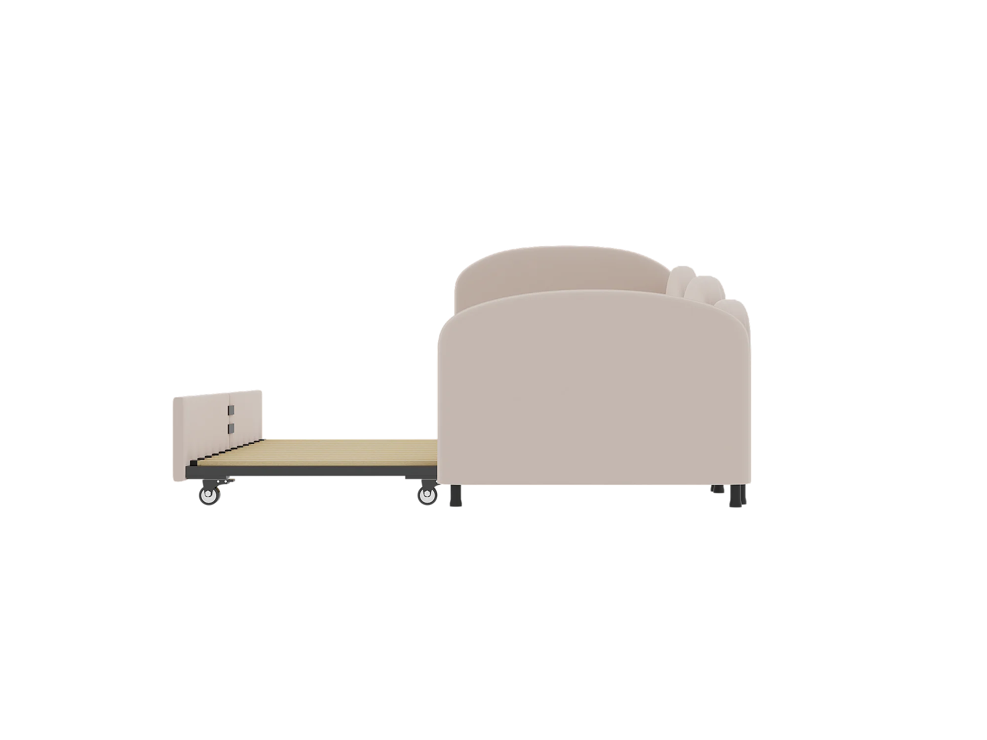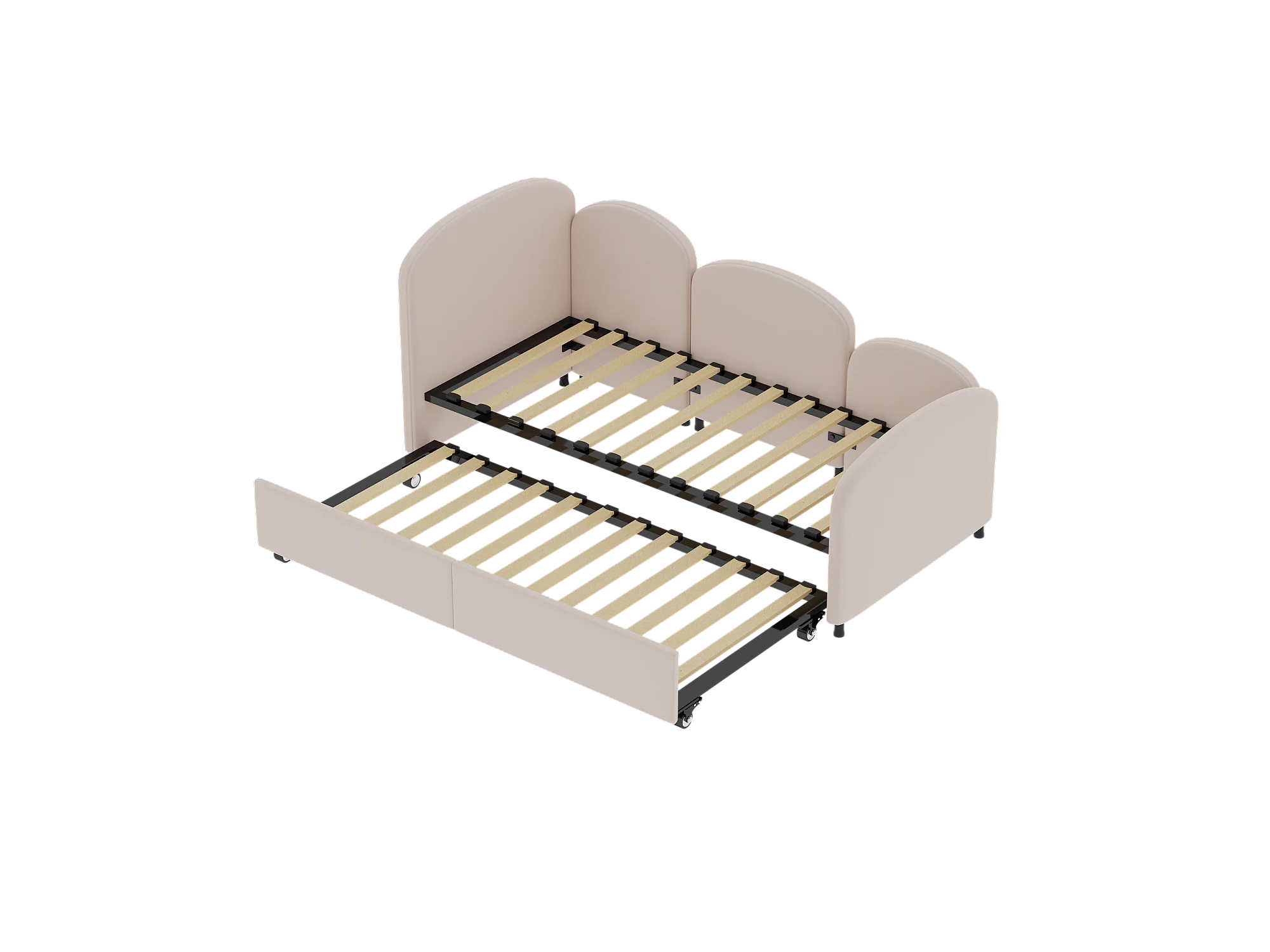 Lit enfant 90x200cm avec lit gigogne en velours, Sommier à lattes, sans matelas, rose clair