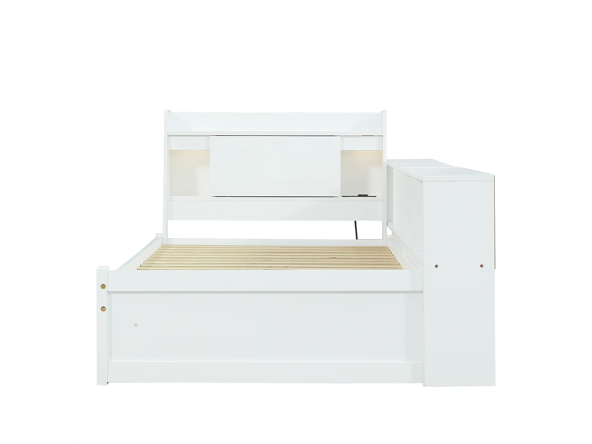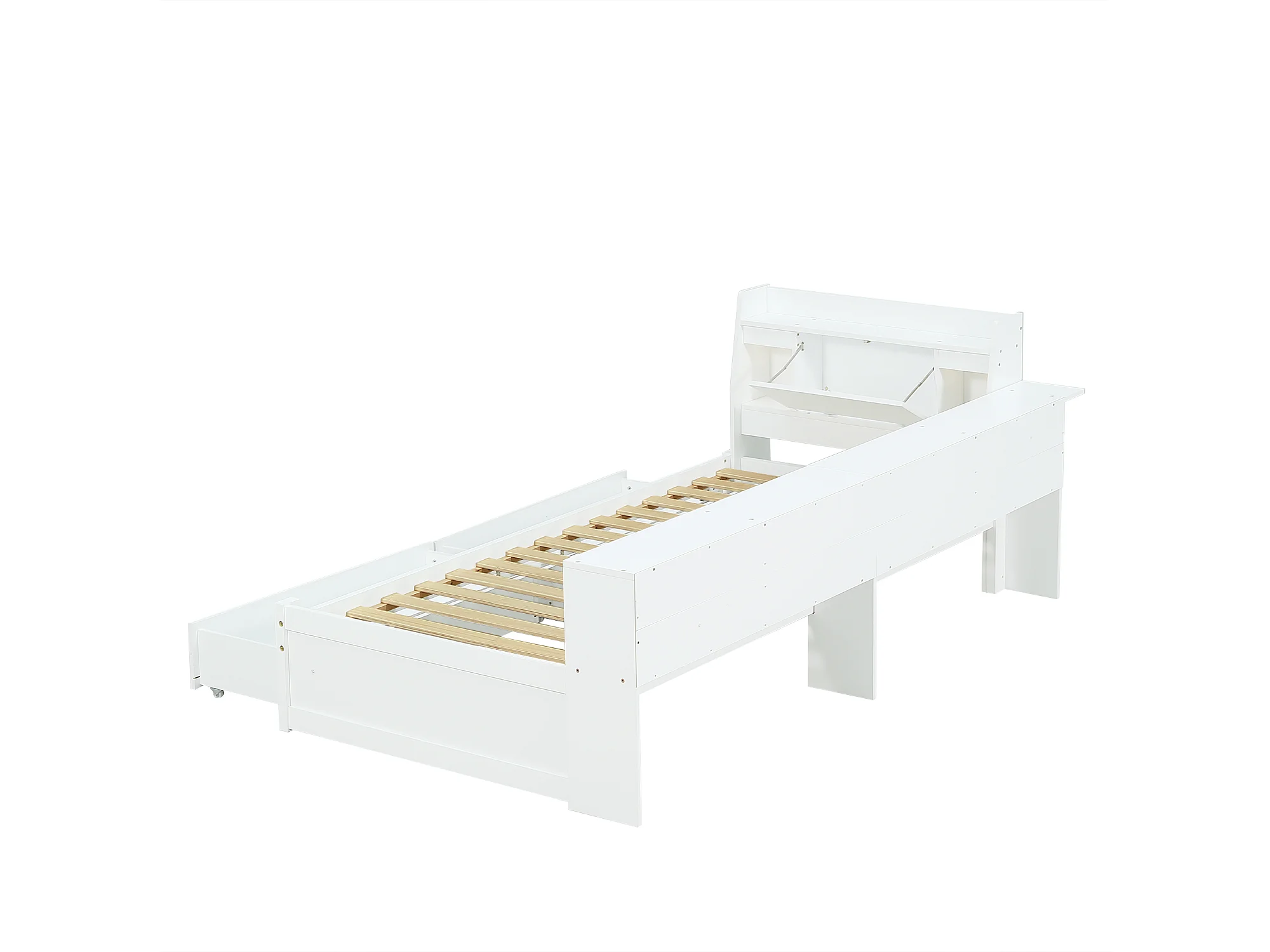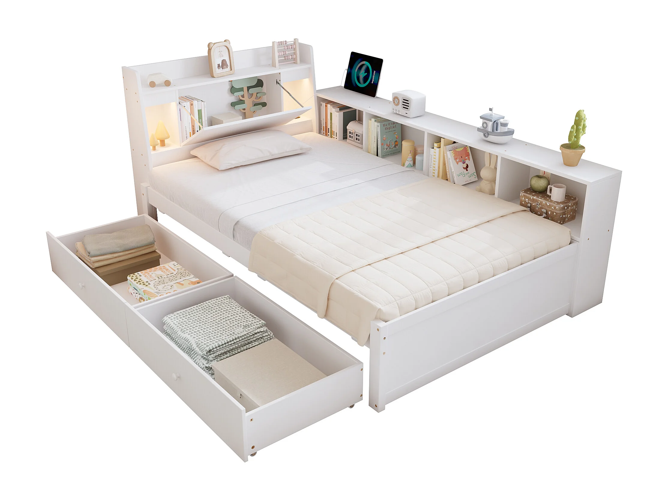 Lit enfant 90x200cm - avec tête de lit avec rangement, 2 tiroirs - blanc - sans matelas