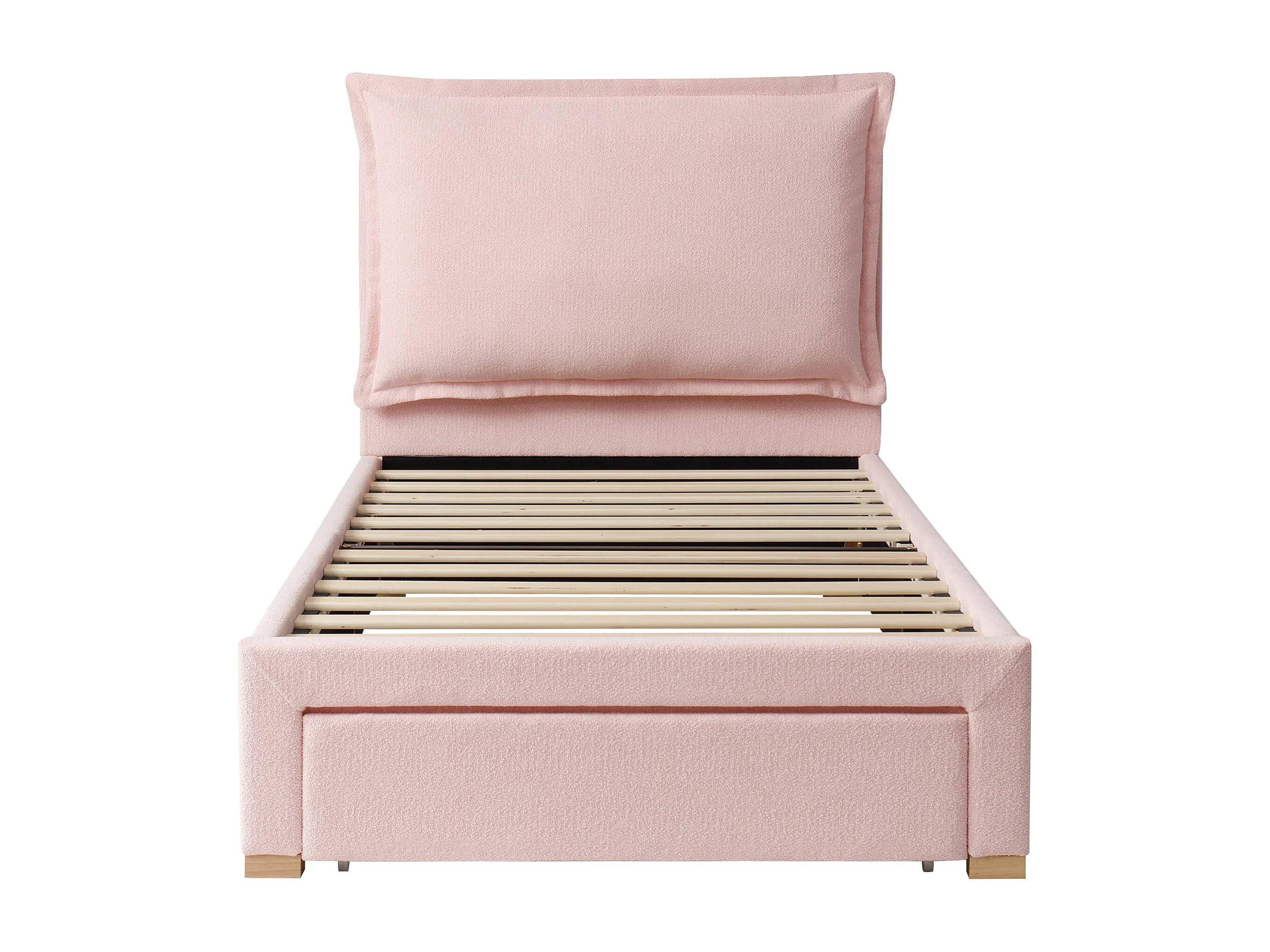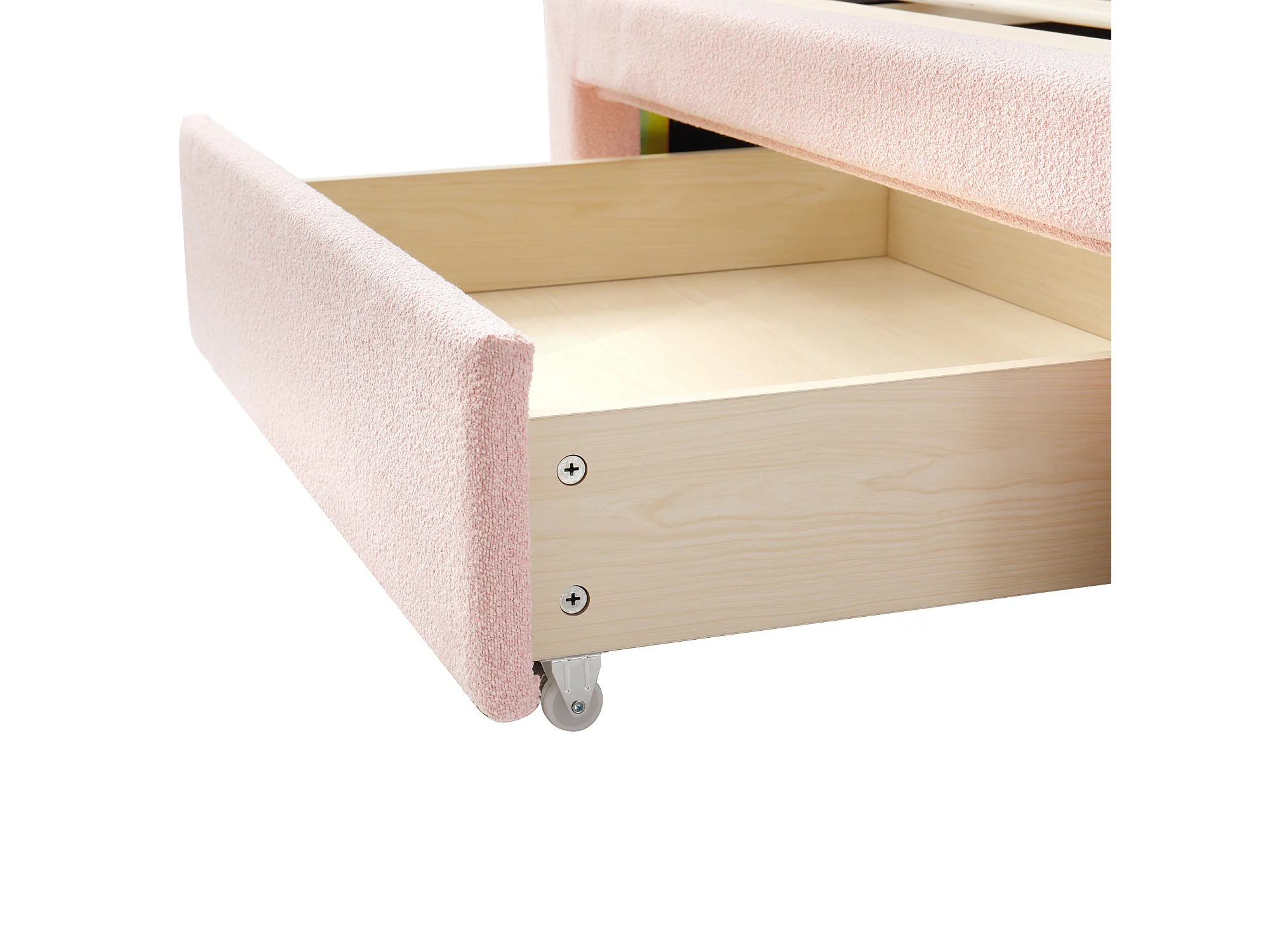Lit enfant 90x200cm - avec tête de lit rembourrée - avec 1 tiroir - Tissu chenille - Rose (matelas non inclus)